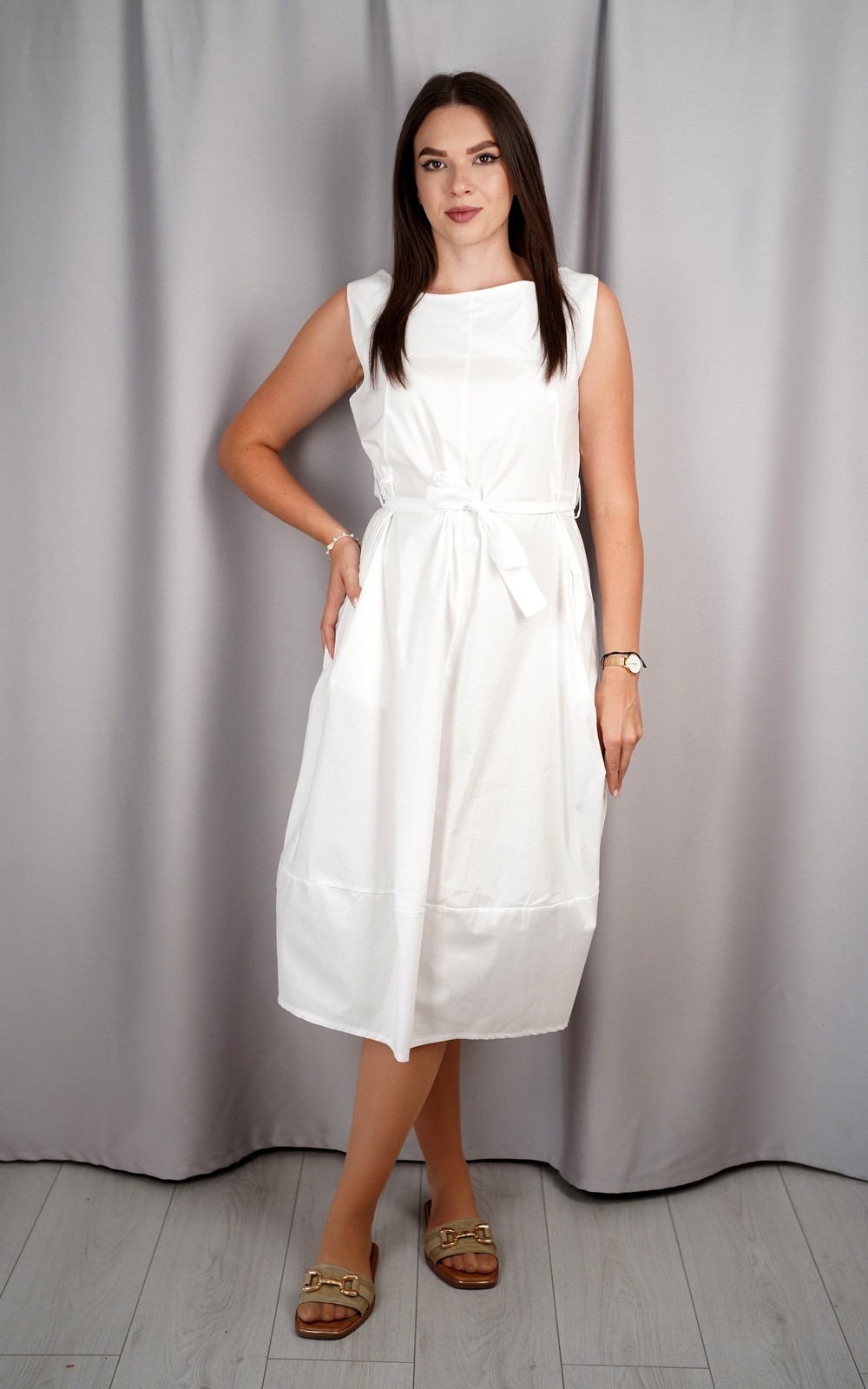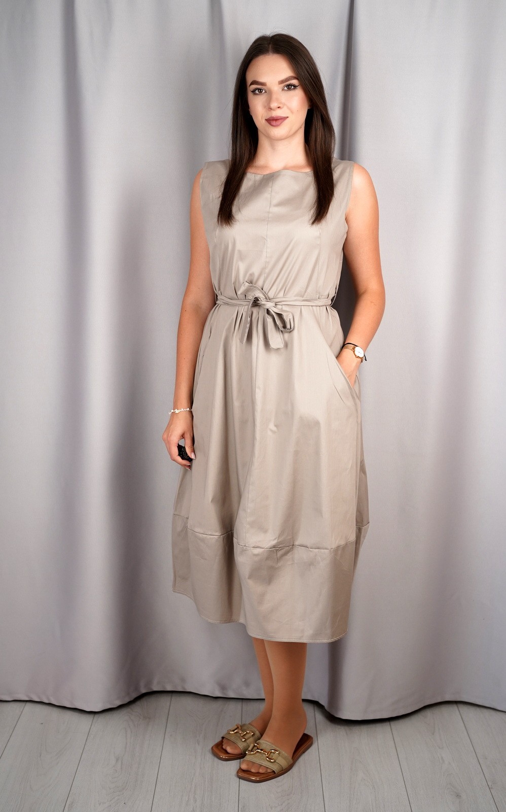 Ženska pamučna midi haljina bez rukava s vezanjem u struku – YE1429