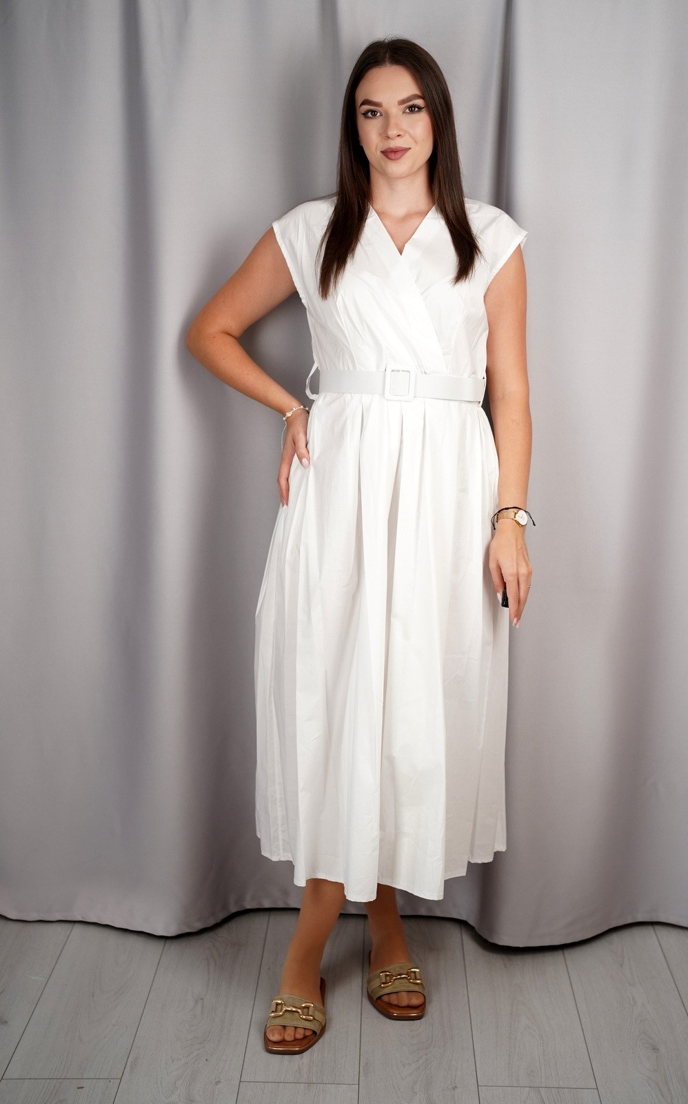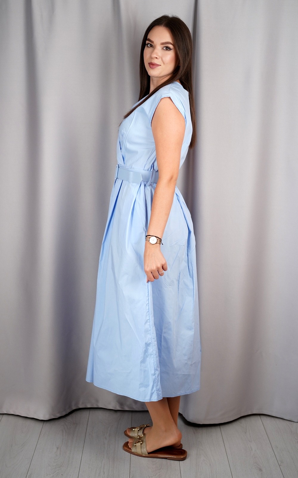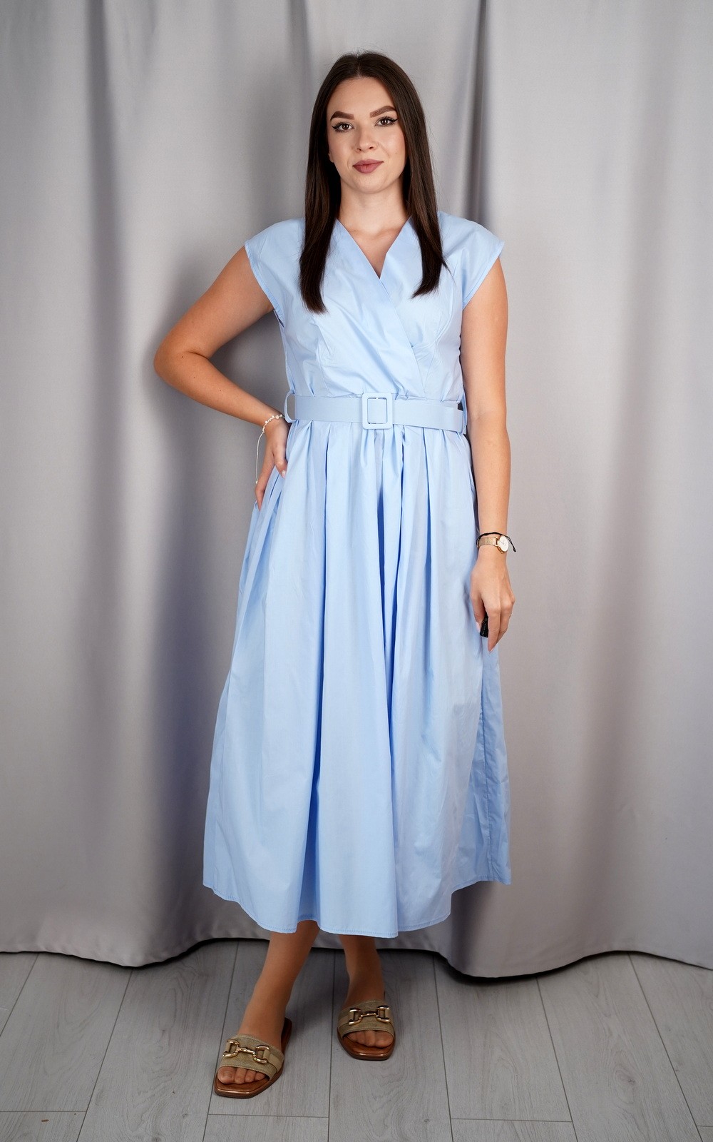 Ženska pamučna midi haljina s pojasom i V-izrezom – U12200