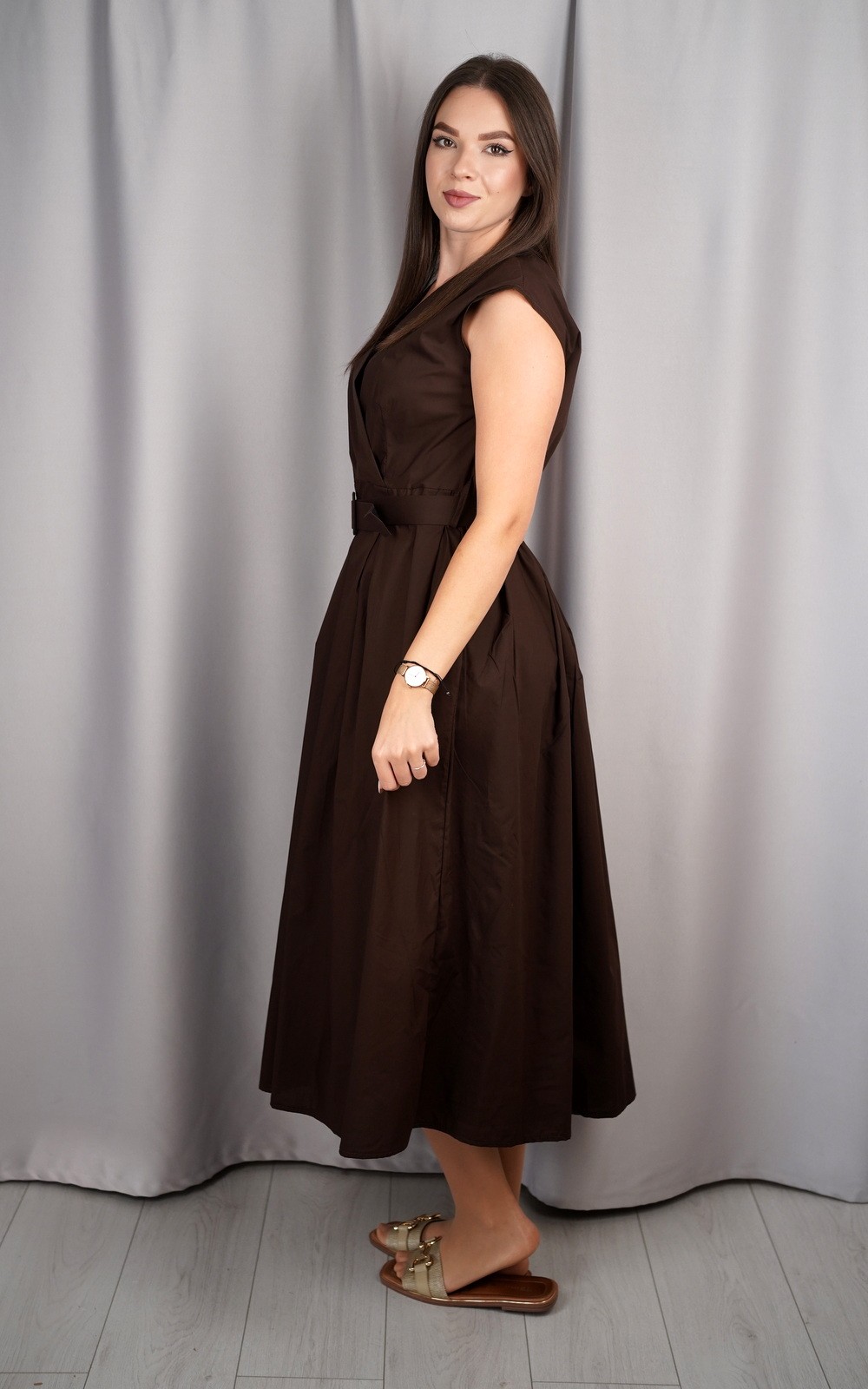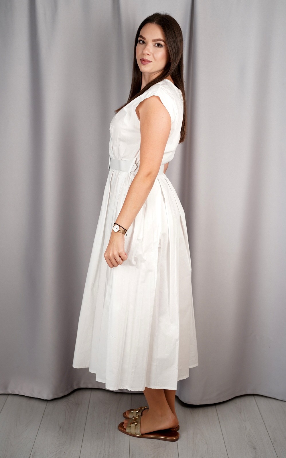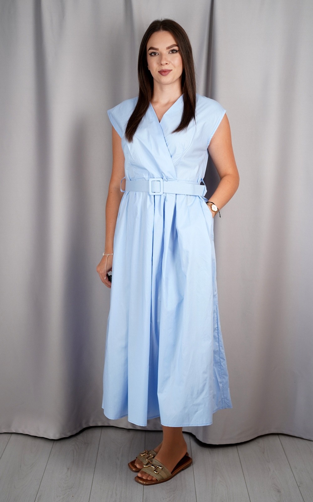 Ženska pamučna midi haljina s pojasom i V-izrezom – U12200