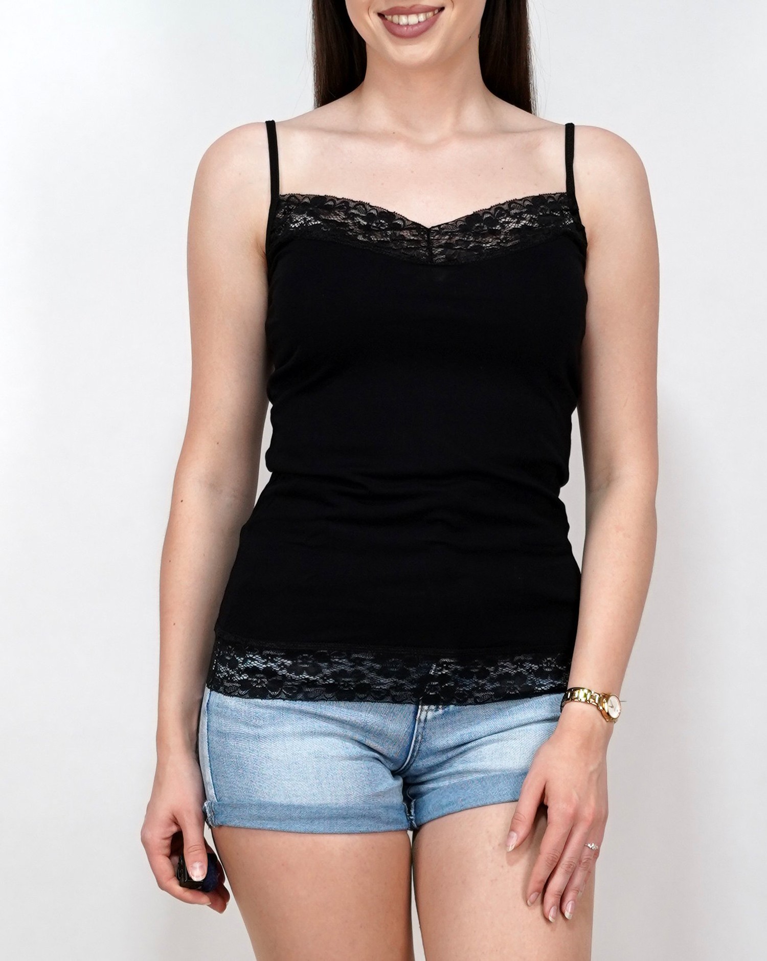 Ženska pamučna potkošulja s tankim naramenicama i čipkastim detaljima – 0012