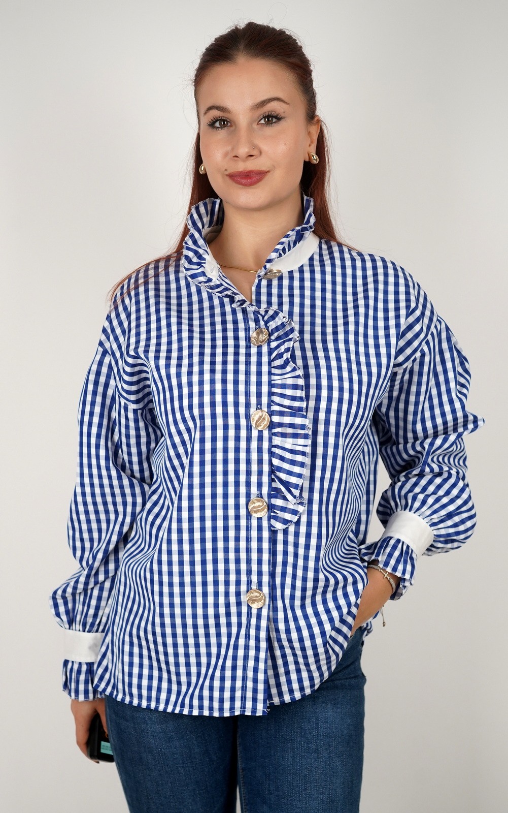 Ženska pamučna prugasta košulja s volanom i gumbićima – 16877