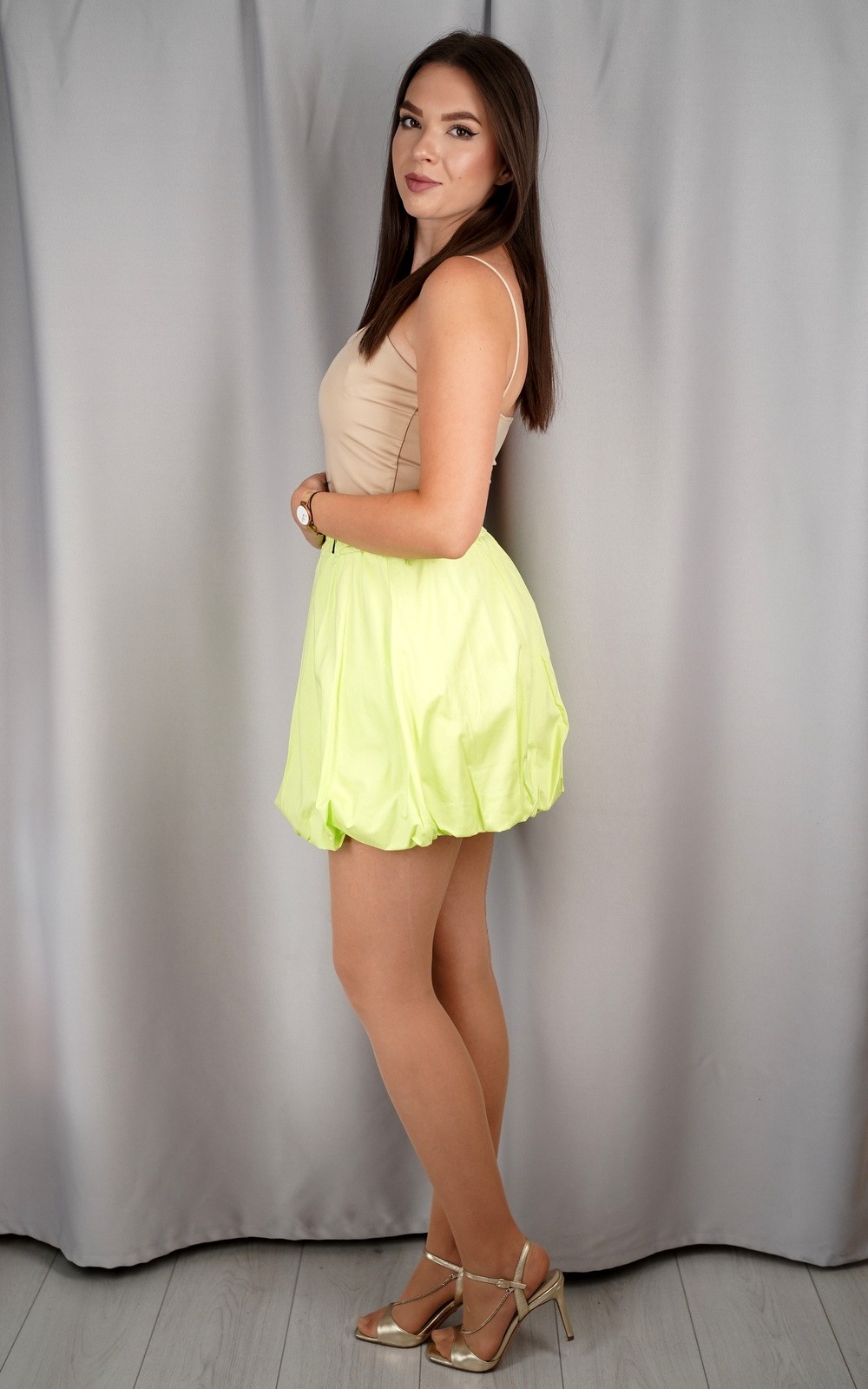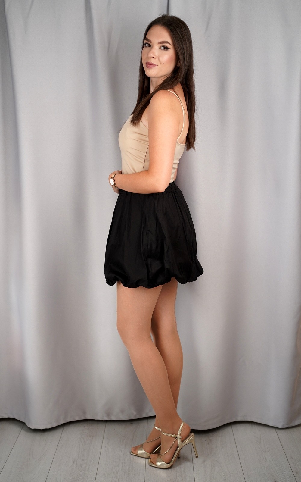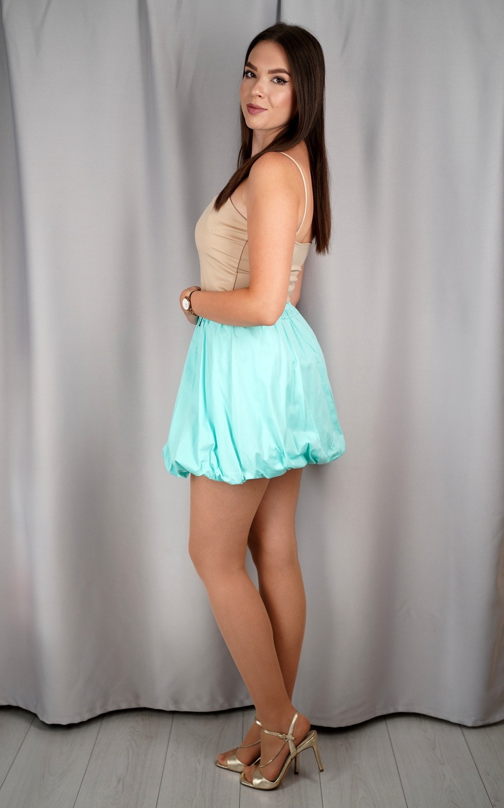 Puf mini suknja s elastičnim pojasom donosi razigran i moderan izgled koji privlači pažnju na prvi pogled. Zahvaljujući balon kroju, suknja pruža dodatni volumen i lepršavost, dok elastični pojas osigurava udobno pristajanje bez stezanja. Idealna je za tople dane, večernje izlaske ili modne kombinacije koje traže dašak originalnosti. Ovaj model kombinira udobnost i stil, čineći ga savršenim izborom za sve koji žele istaknuti svoju osobnost i ženstveni šarm.