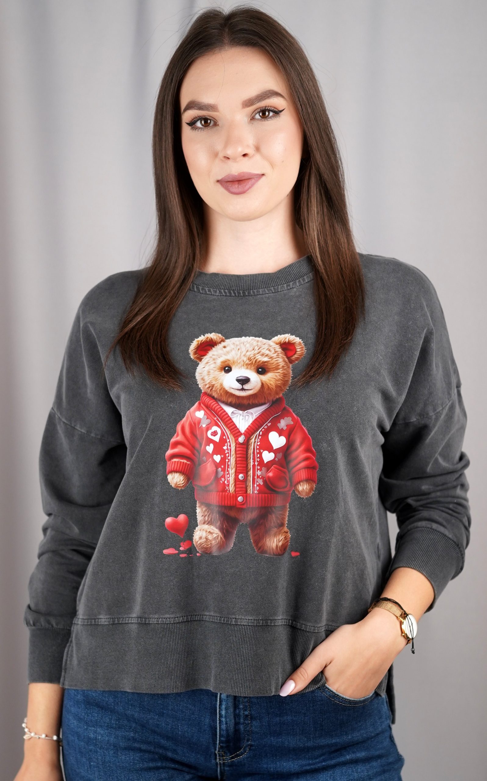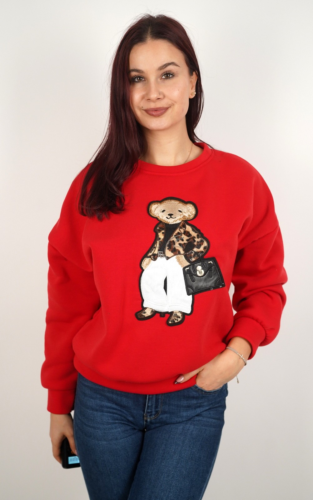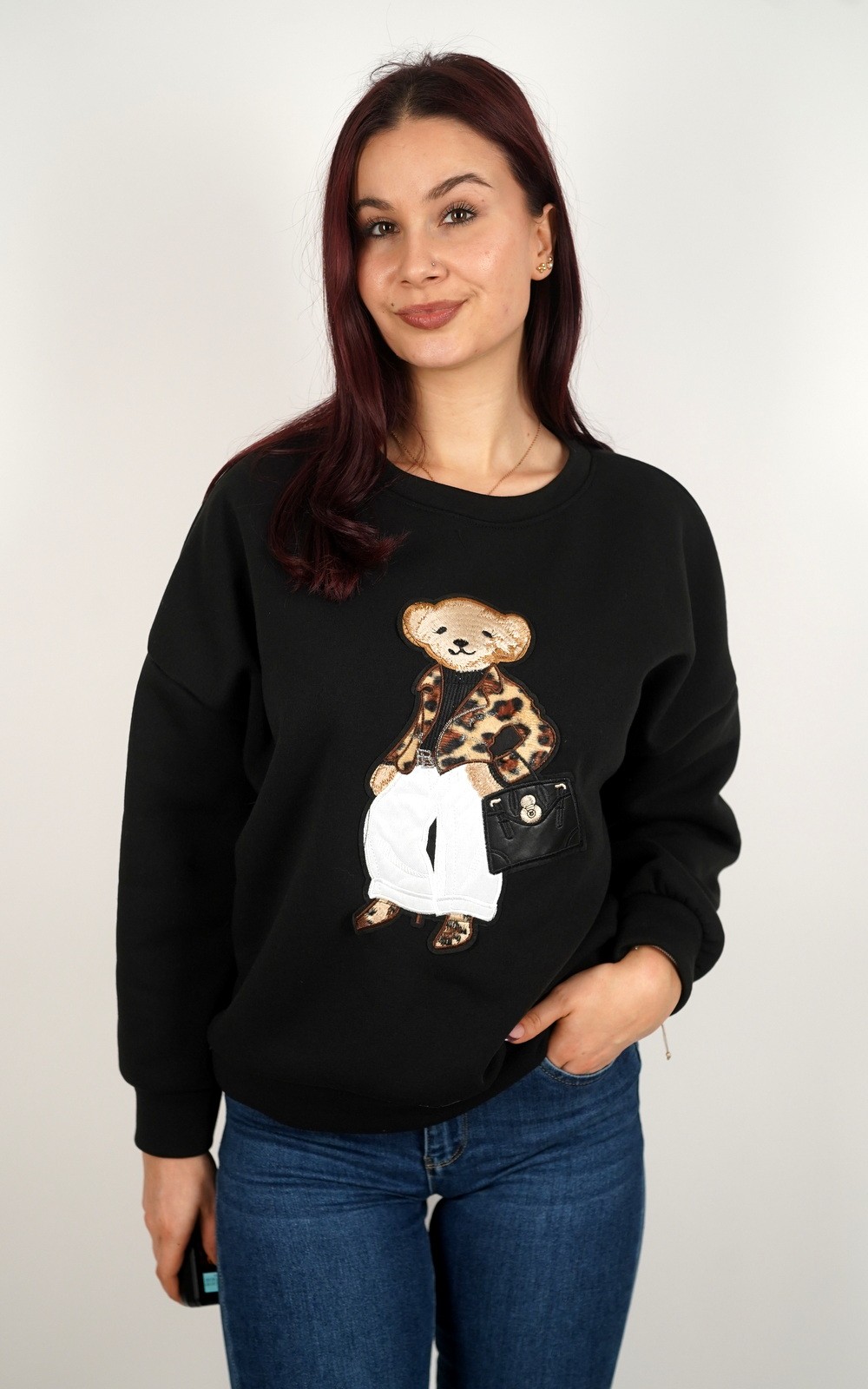 Ženska pamučna sweatshirt s 3D medvjedić aplikacijom – 10774