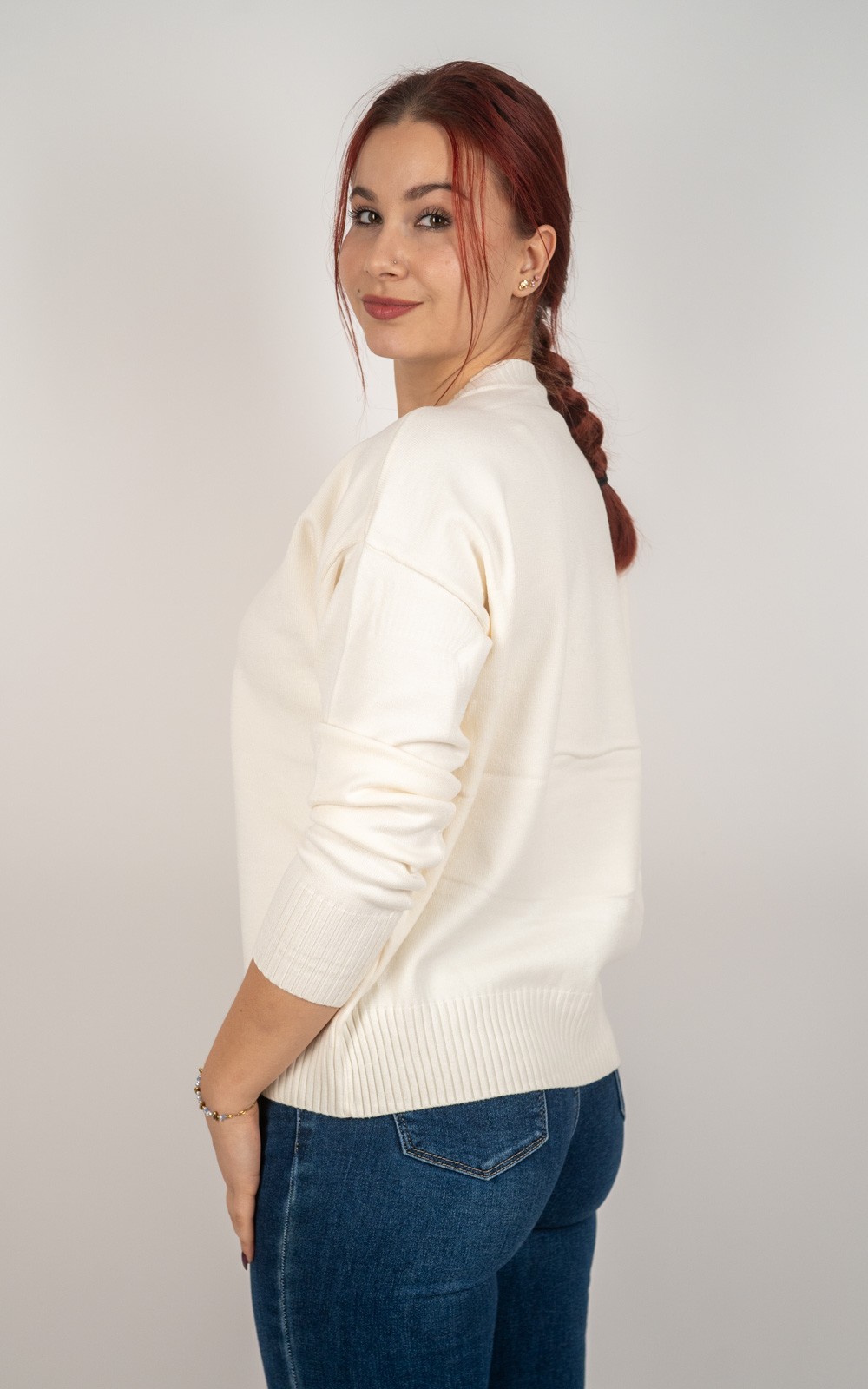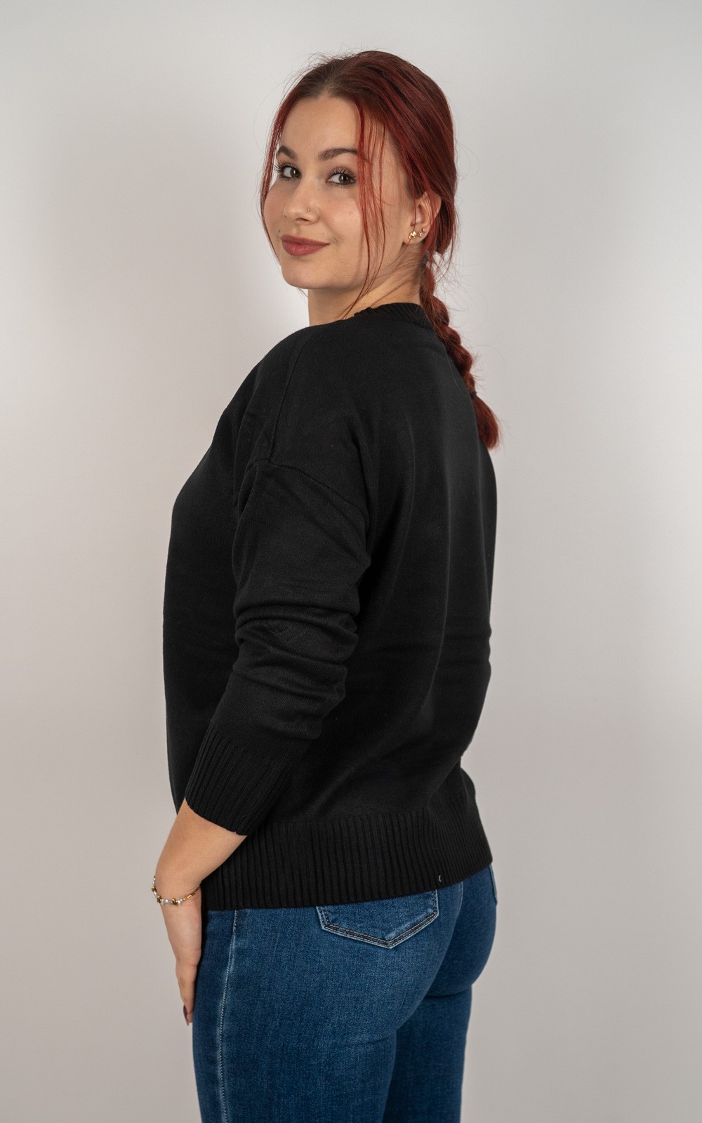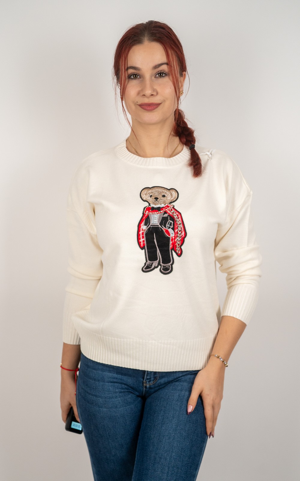 Ženska pletena majica s aplikacijom medvjedića i dekorativnim detaljima – u veličinama – 3122