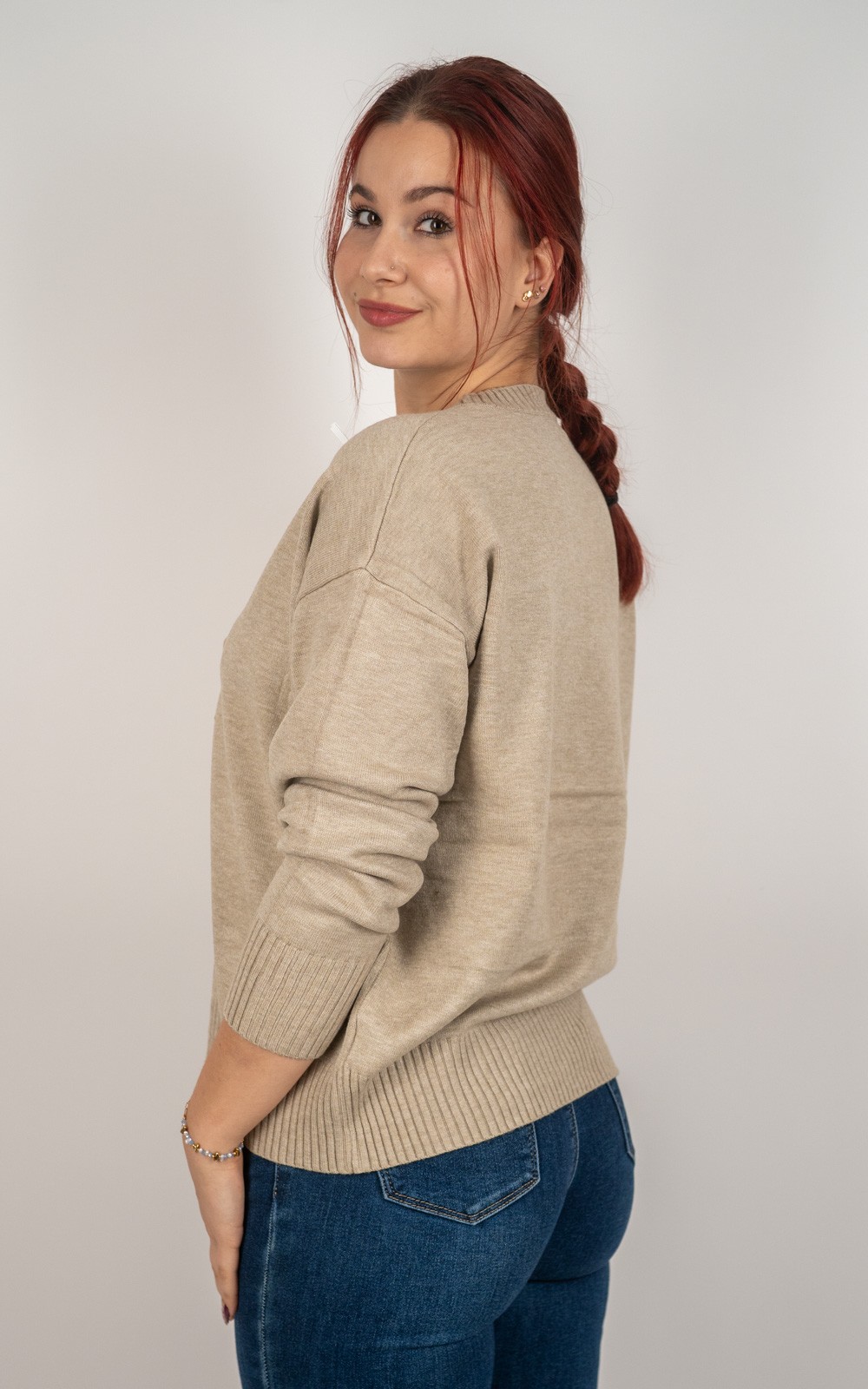 bozic10 očekuje te snižena cijena od 30.60 € za ovaj artikl u košarici.Ova ženska pletena majica s efektnom aplikacijom medvjedića kombinira udobnost i trendi izgled u jednom komadu. Izrađena od mekanog i ugodnog pletiva, pruža idealnu toplinu i savršena je za svakodnevno nošenje tijekom hladnijih dana. Dekorativni detalji na ramenu i pažljivo izrađena aplikacija daju majici poseban, razigran i moderan karakter. Rukavi su fini i elasticirani na završetku kako bi se dodatno naglasila udobnost i lijepo oblikovao kroj. Savršena je uz traperice, suknje ili casual kombinacije za opušten, ali chic stil.