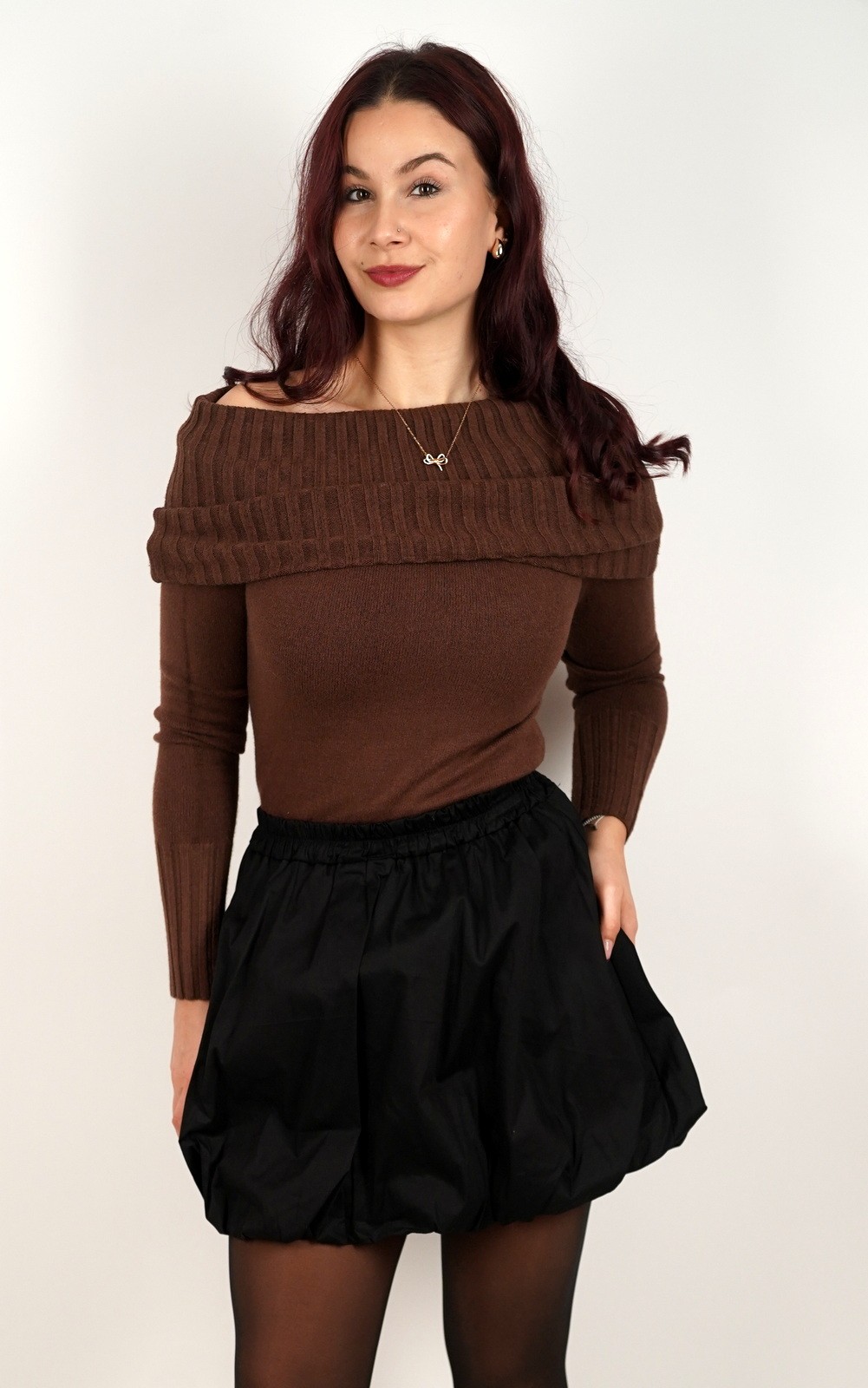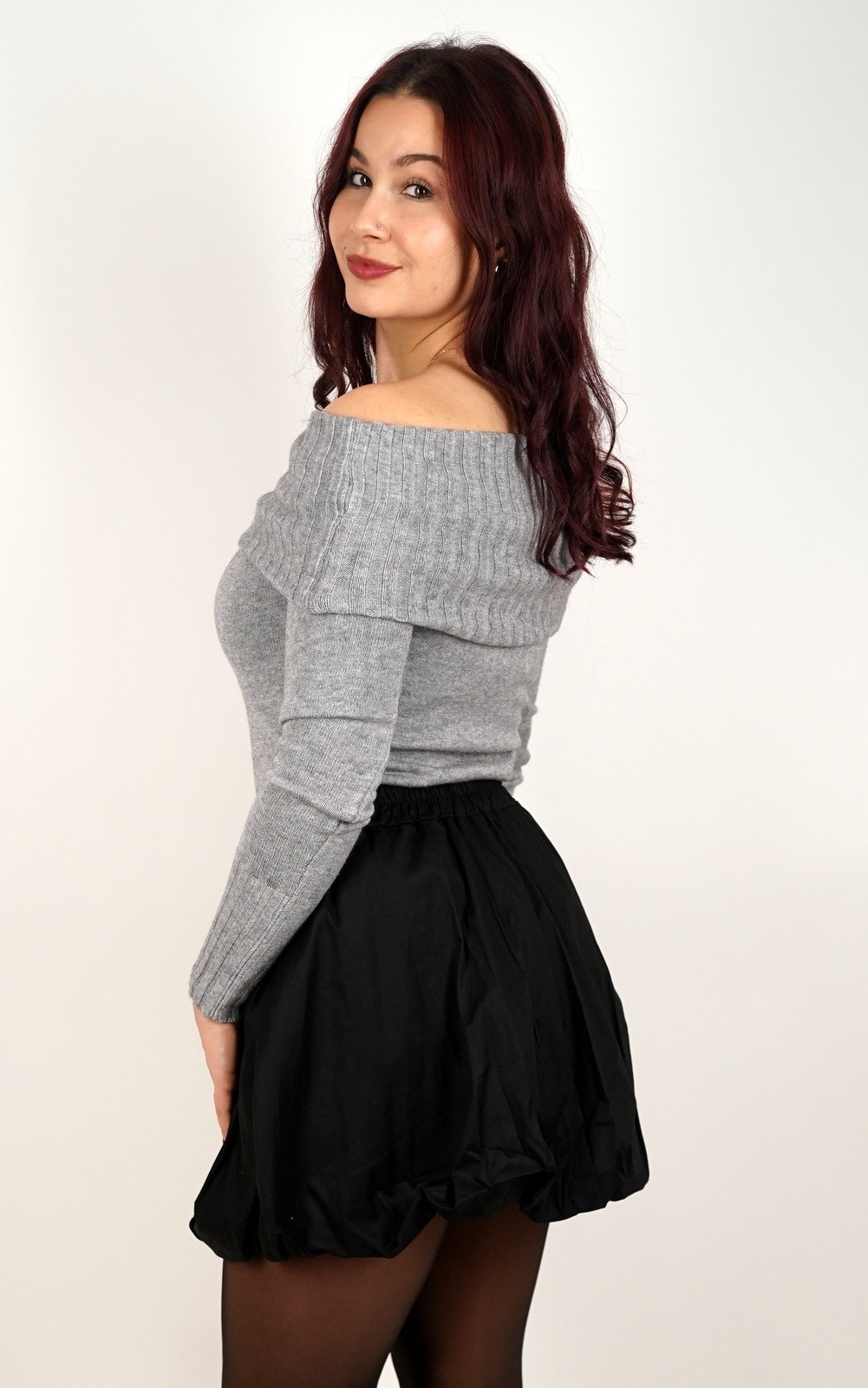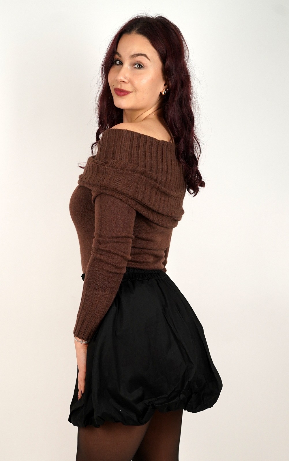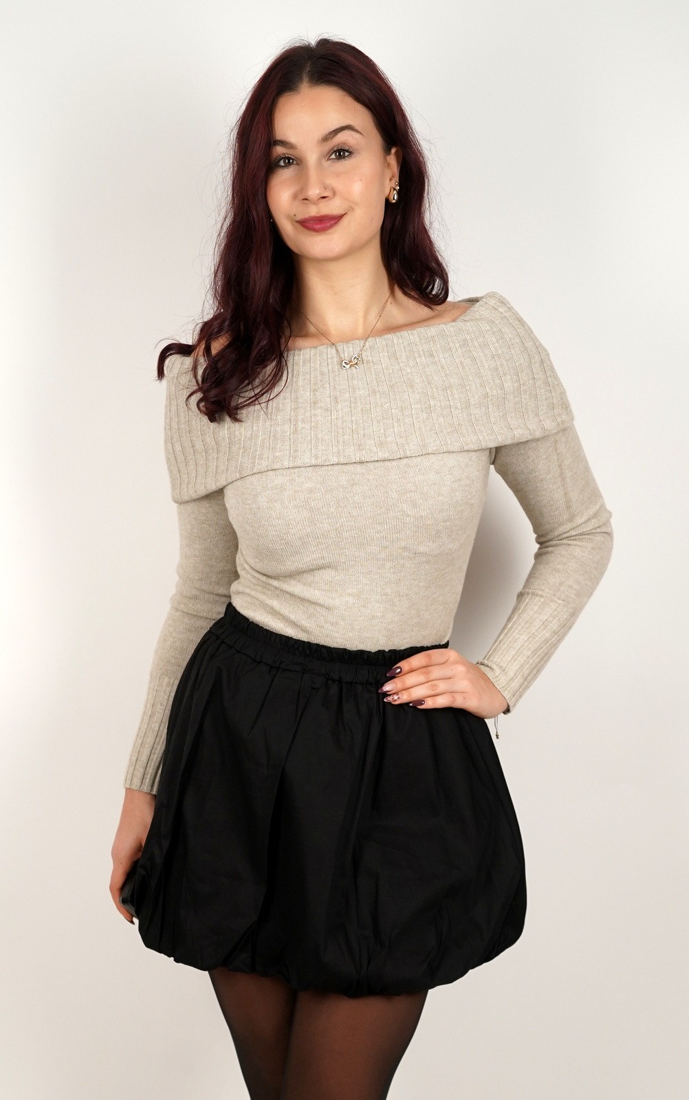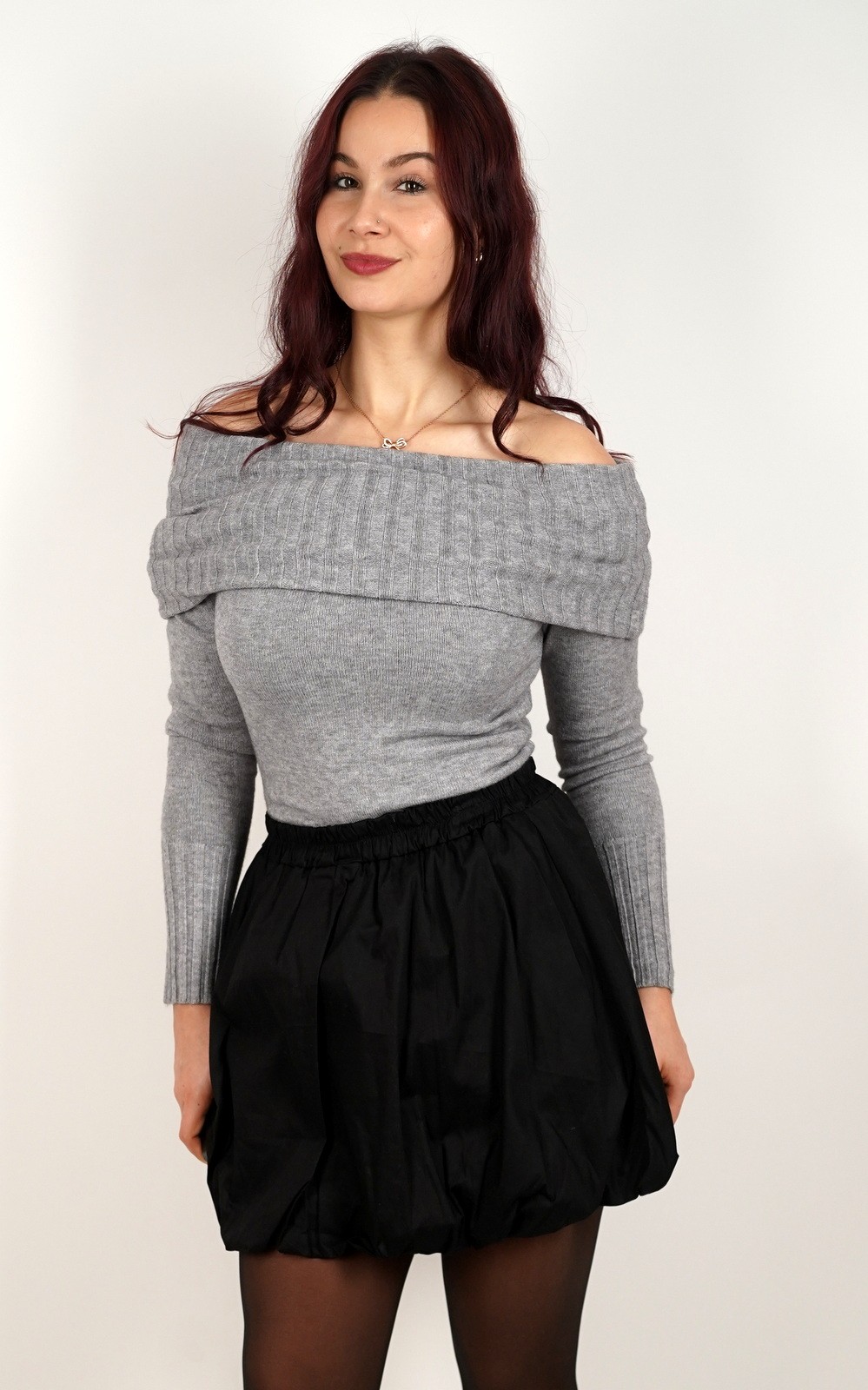 Ženska pletena majica s otvorenim ramenima i širokim rebrastim ovratnikom – 1198