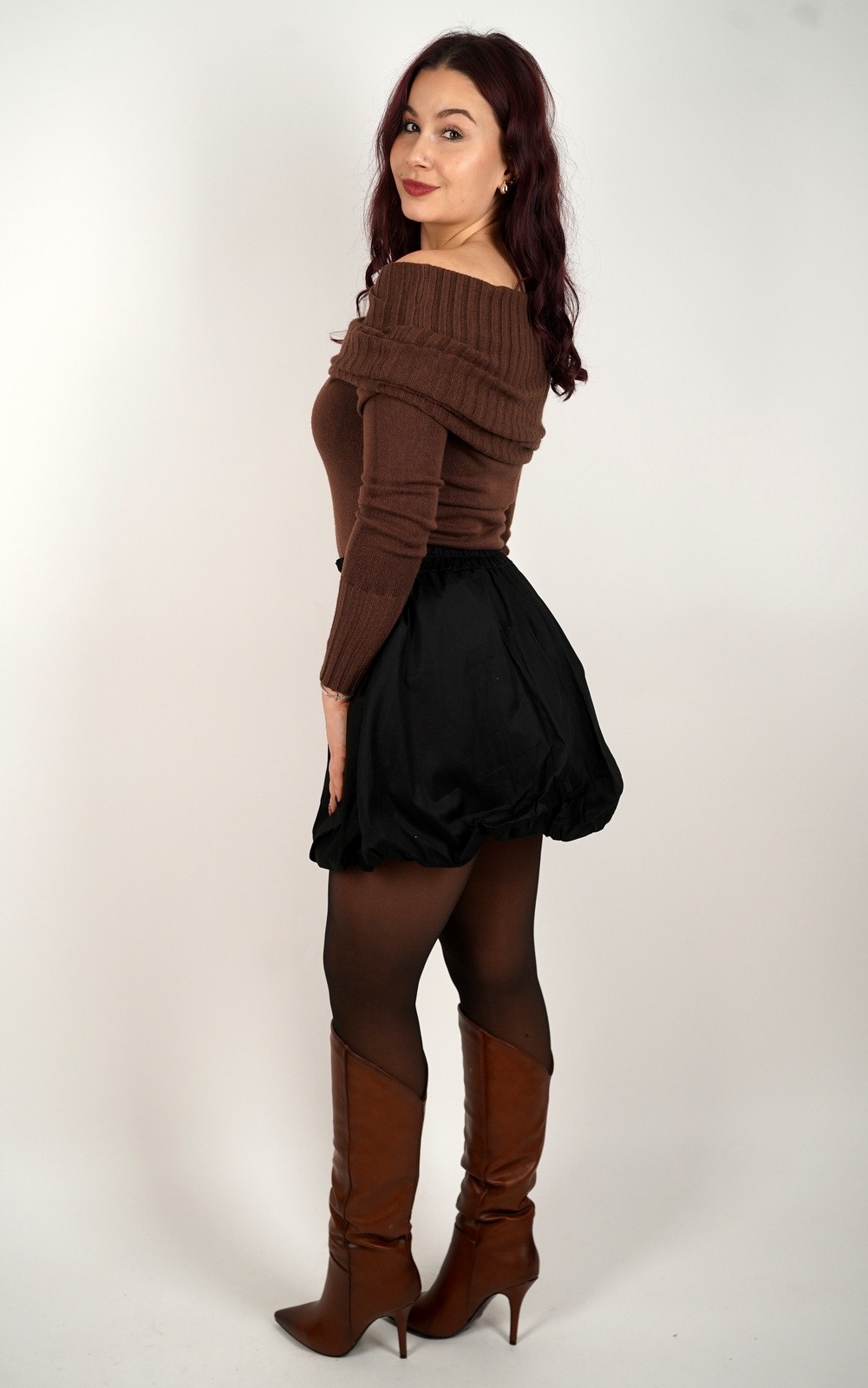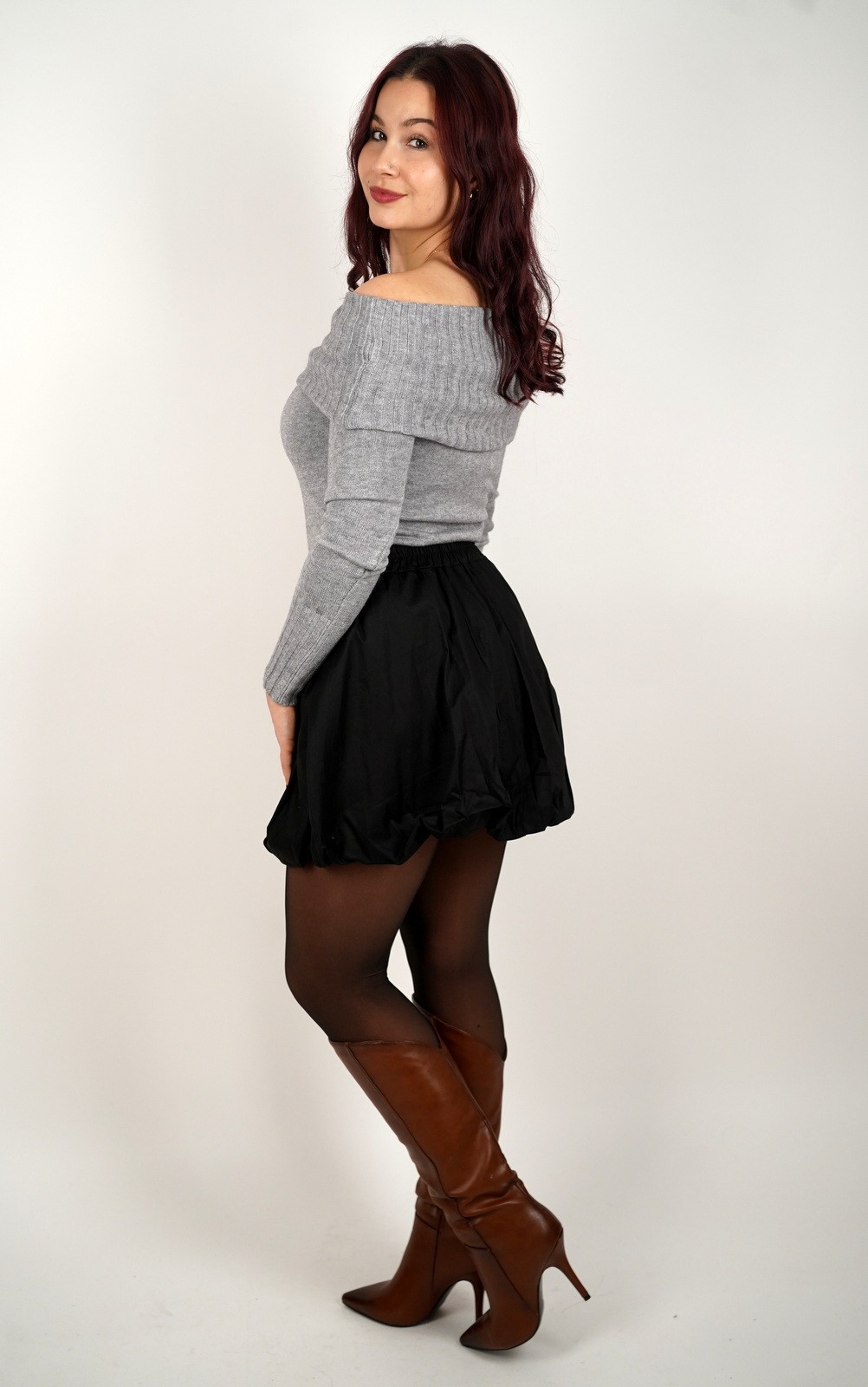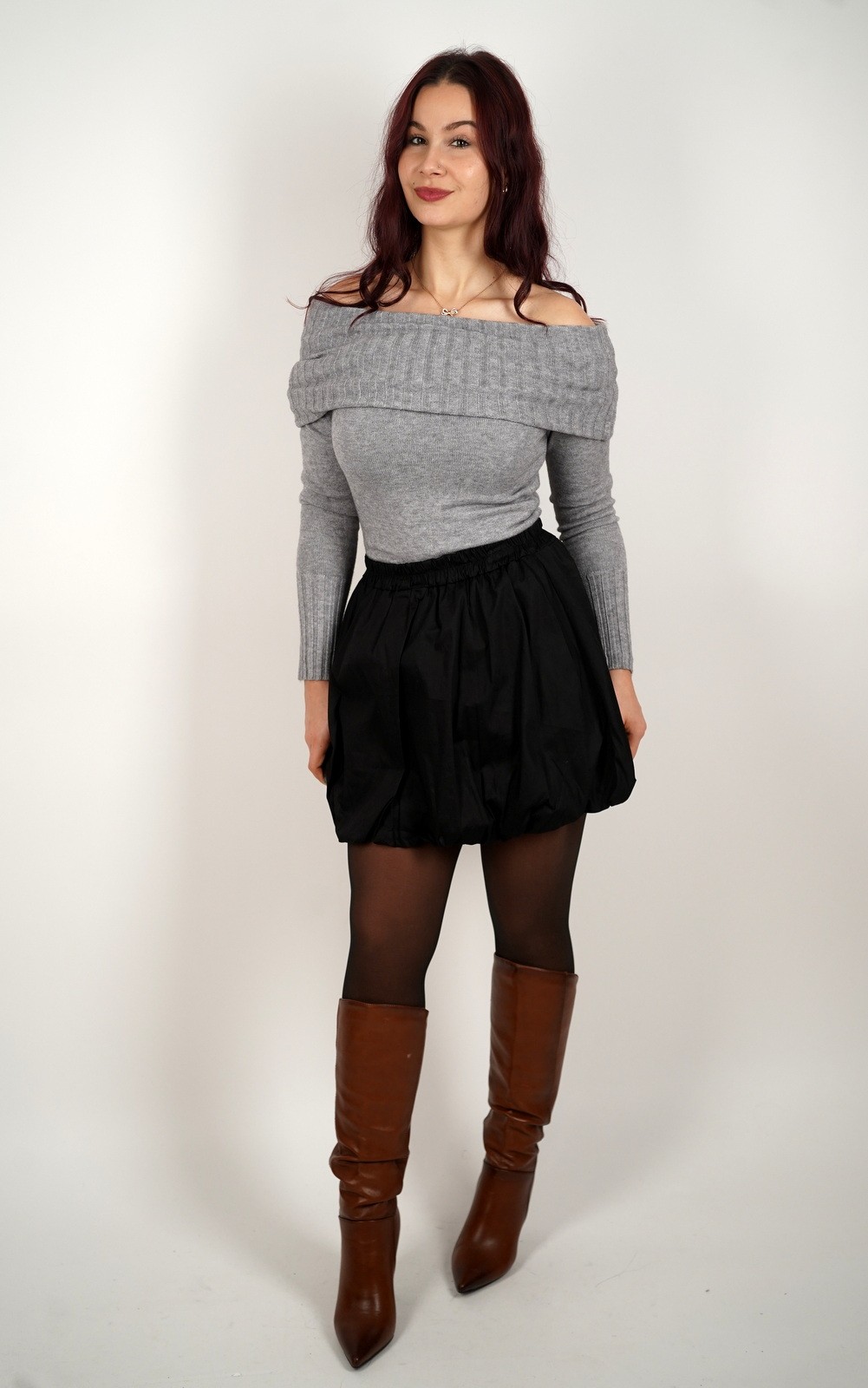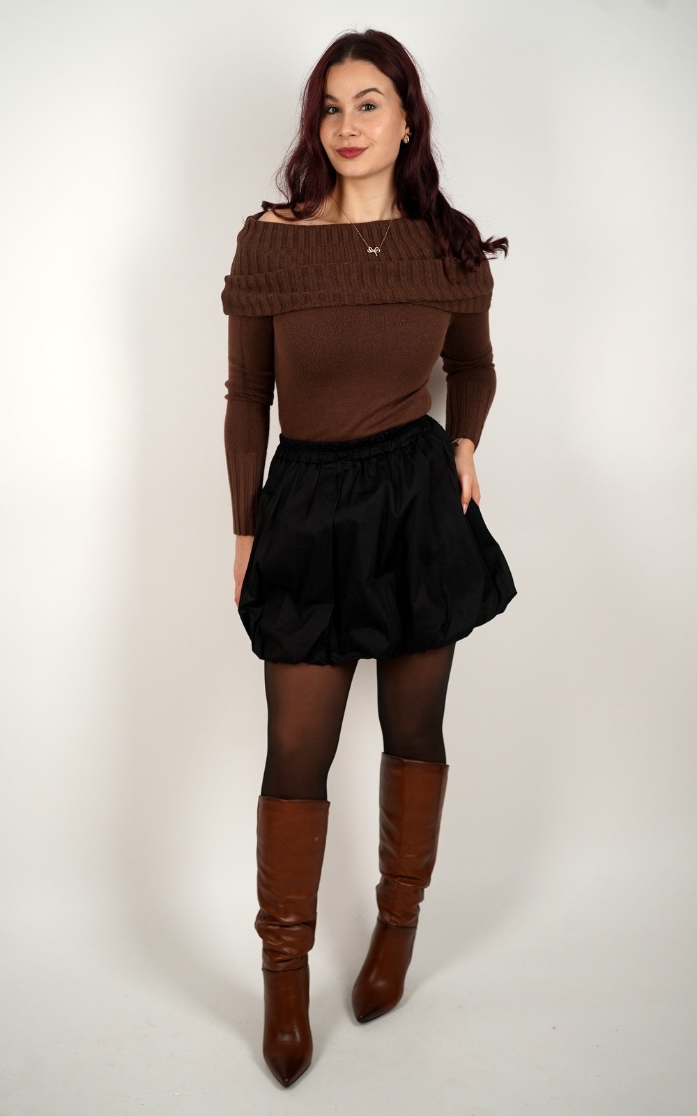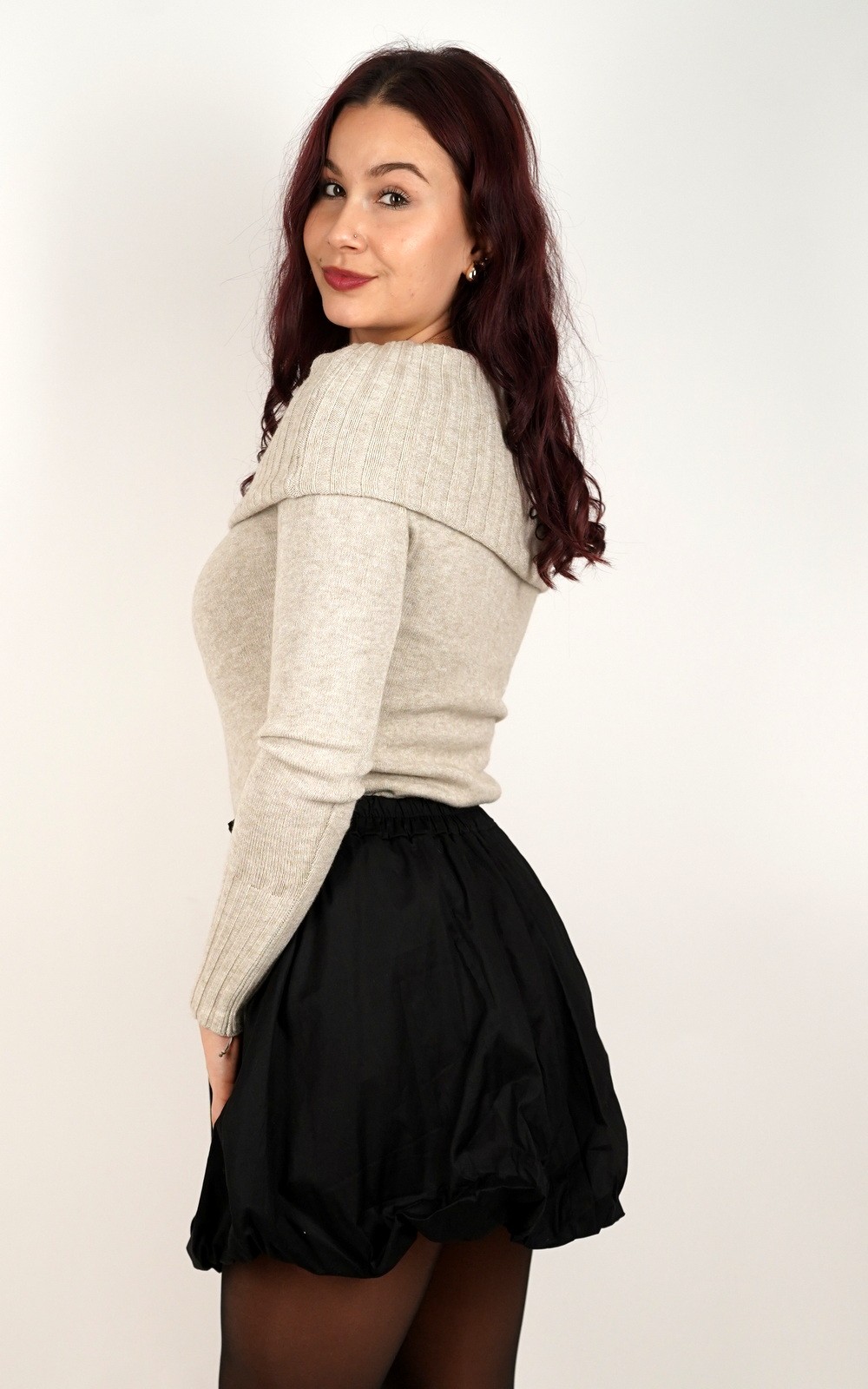 Ženska pletena majica s otvorenim ramenima i širokim rebrastim ovratnikom – 1198