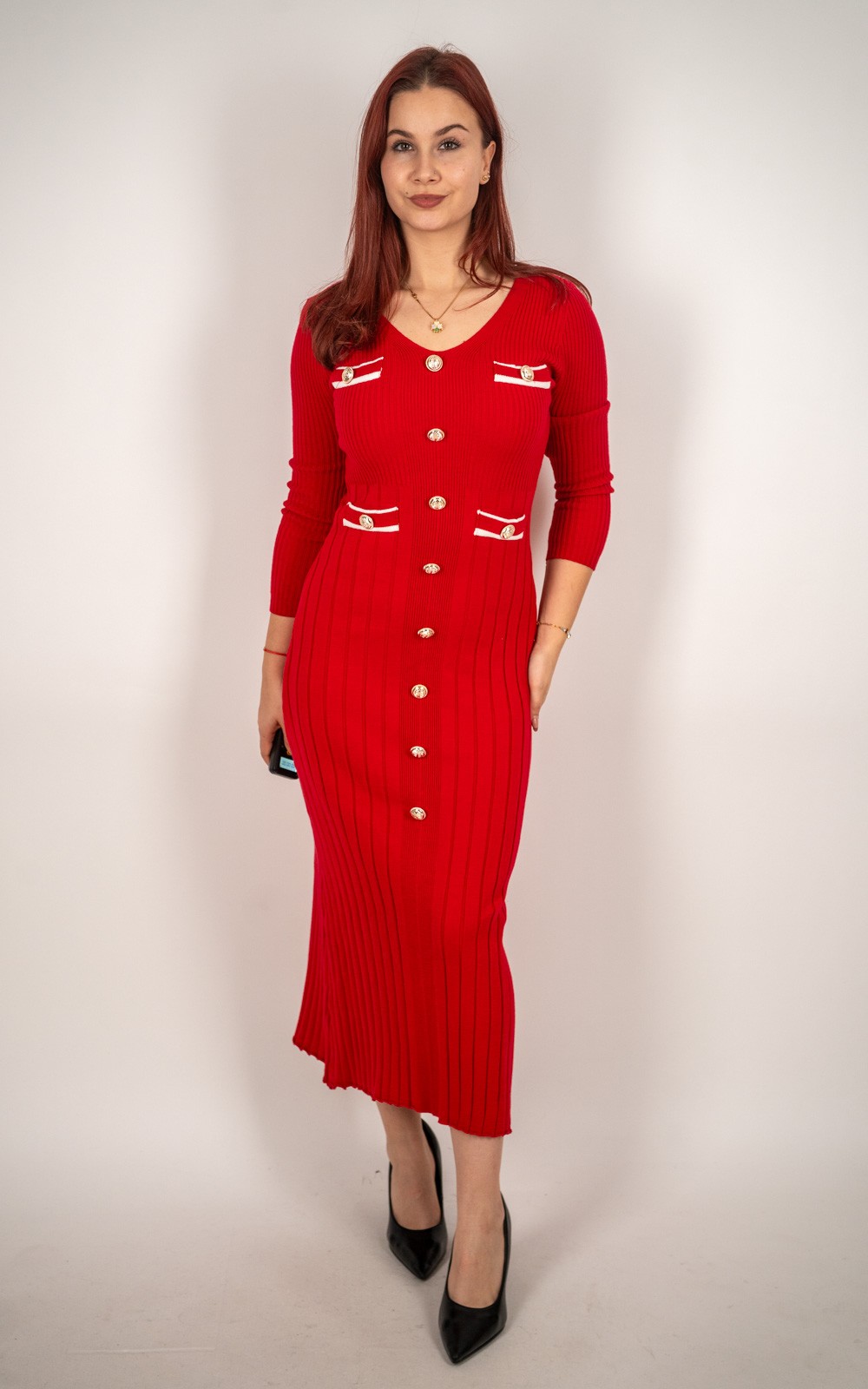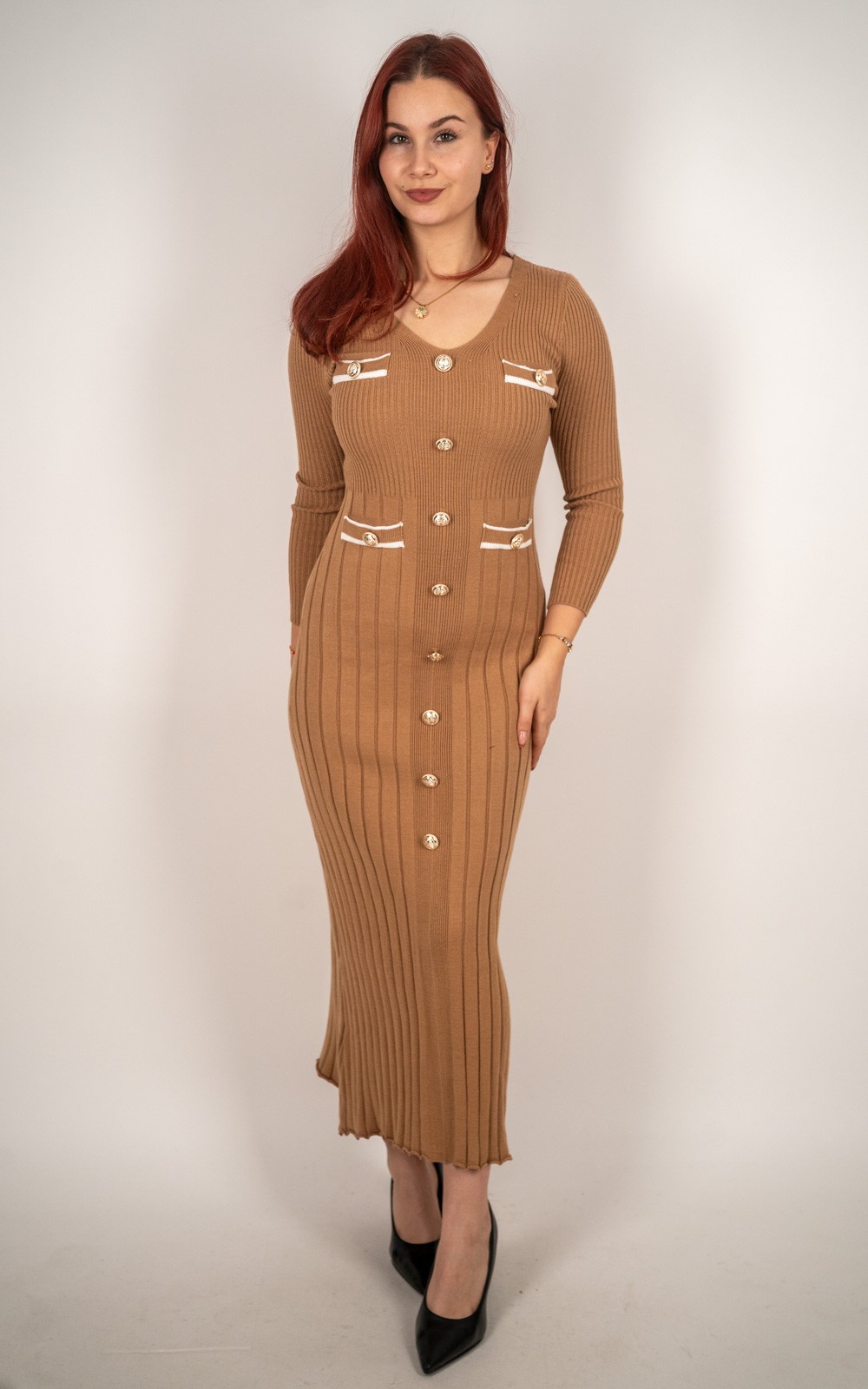 Ženska pletena rebrasta midi haljina s dekor gumbima – 2258