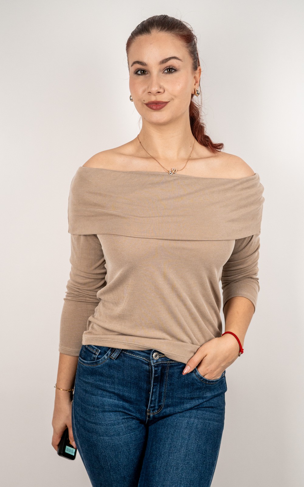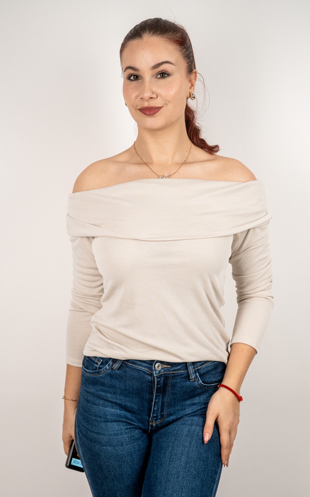 bozic10 očekuje te snižena cijena od 10.80 € za ovaj artikl u košarici.Elegantna i ženstvena majica otvorenih ramena izrađena od mekanog, elastičnog rebrastog materijala koji se savršeno prilagođava tijelu. Preklopni ovratnik naglašava ramena i dodaje dozu sofisticiranosti svakoj kombinaciji. Ova majica idealna je za sve prilike – od svakodnevnih outfita uz traperice do večernjih kombinacija s elegantnim suknjama ili hlačama. Udobna, podatna i profinjena, donosi ravnotežu između casual udobnosti i senzualnog stila.