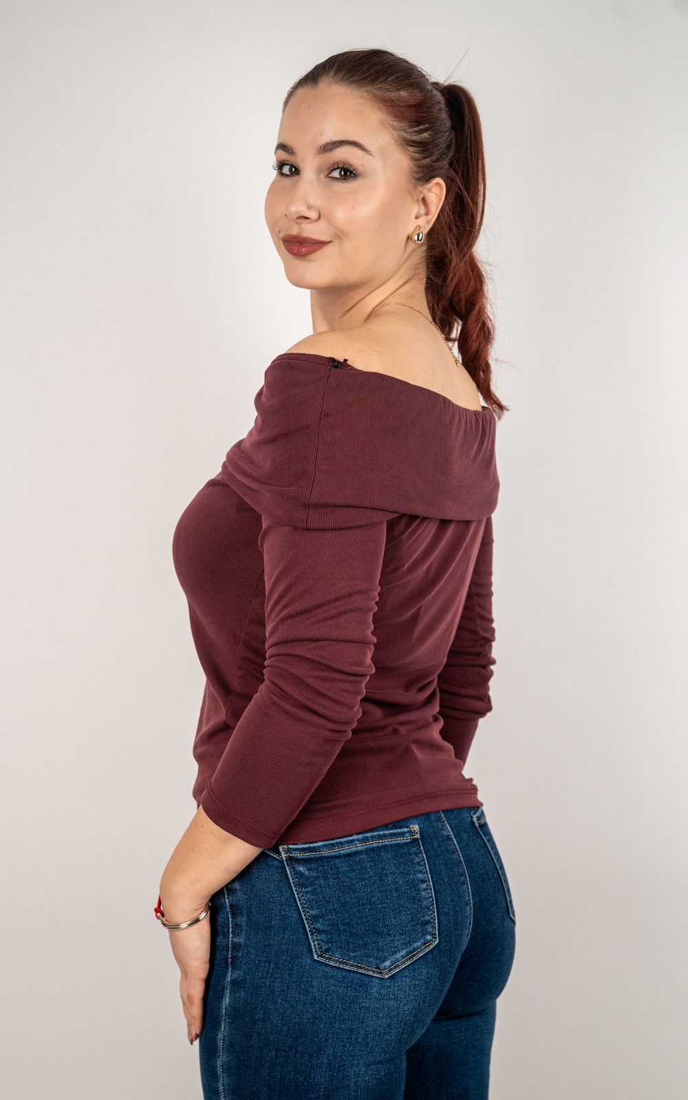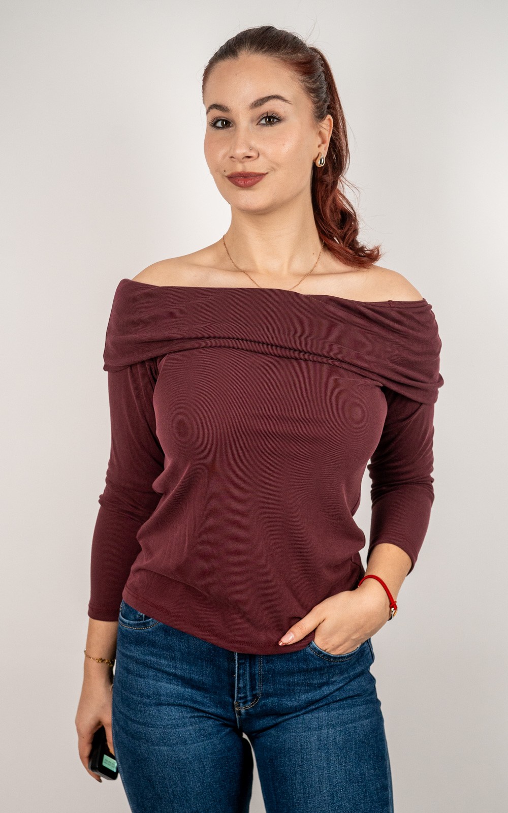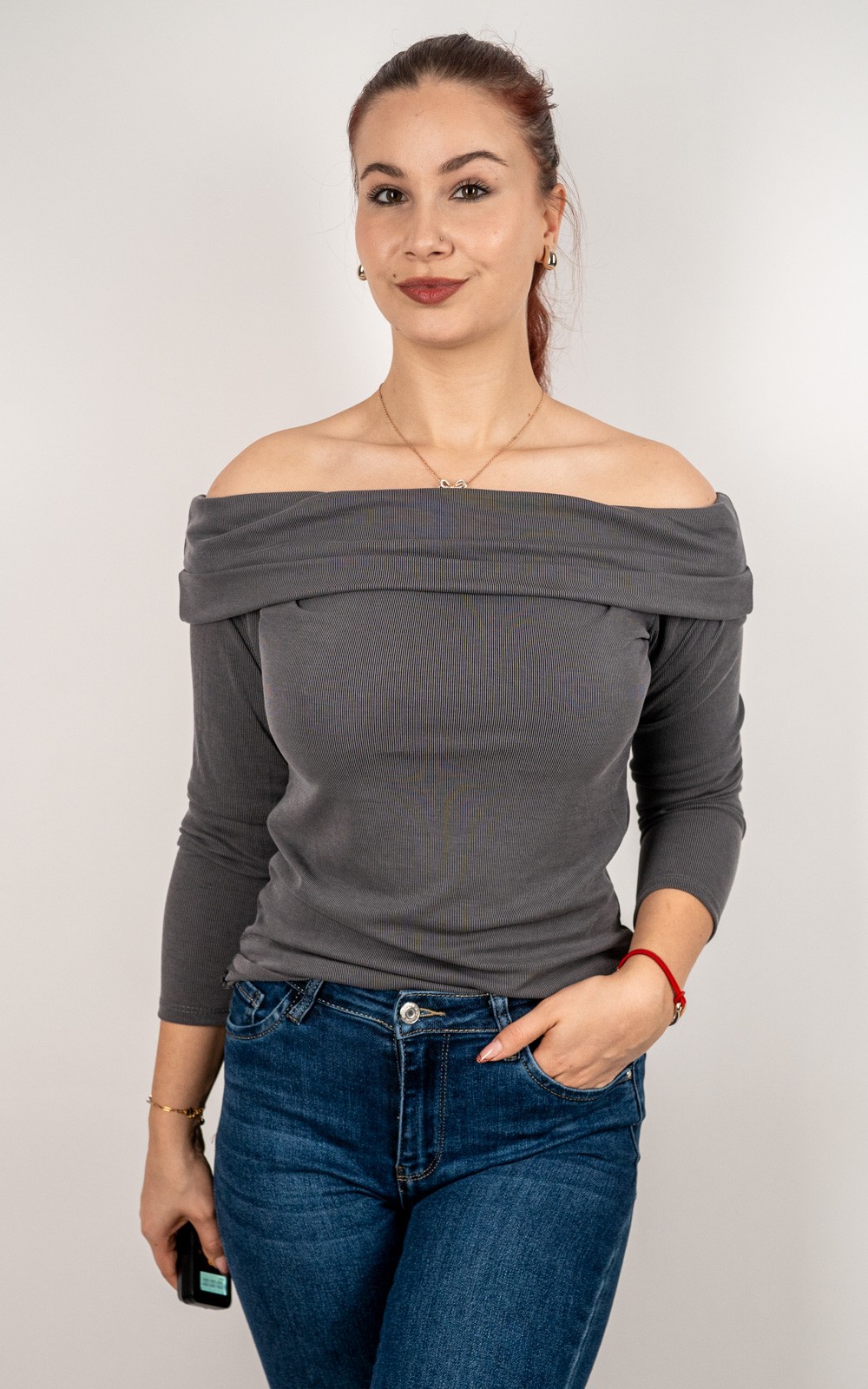 Ženska rebrasta majica otvorenih ramena – 3077