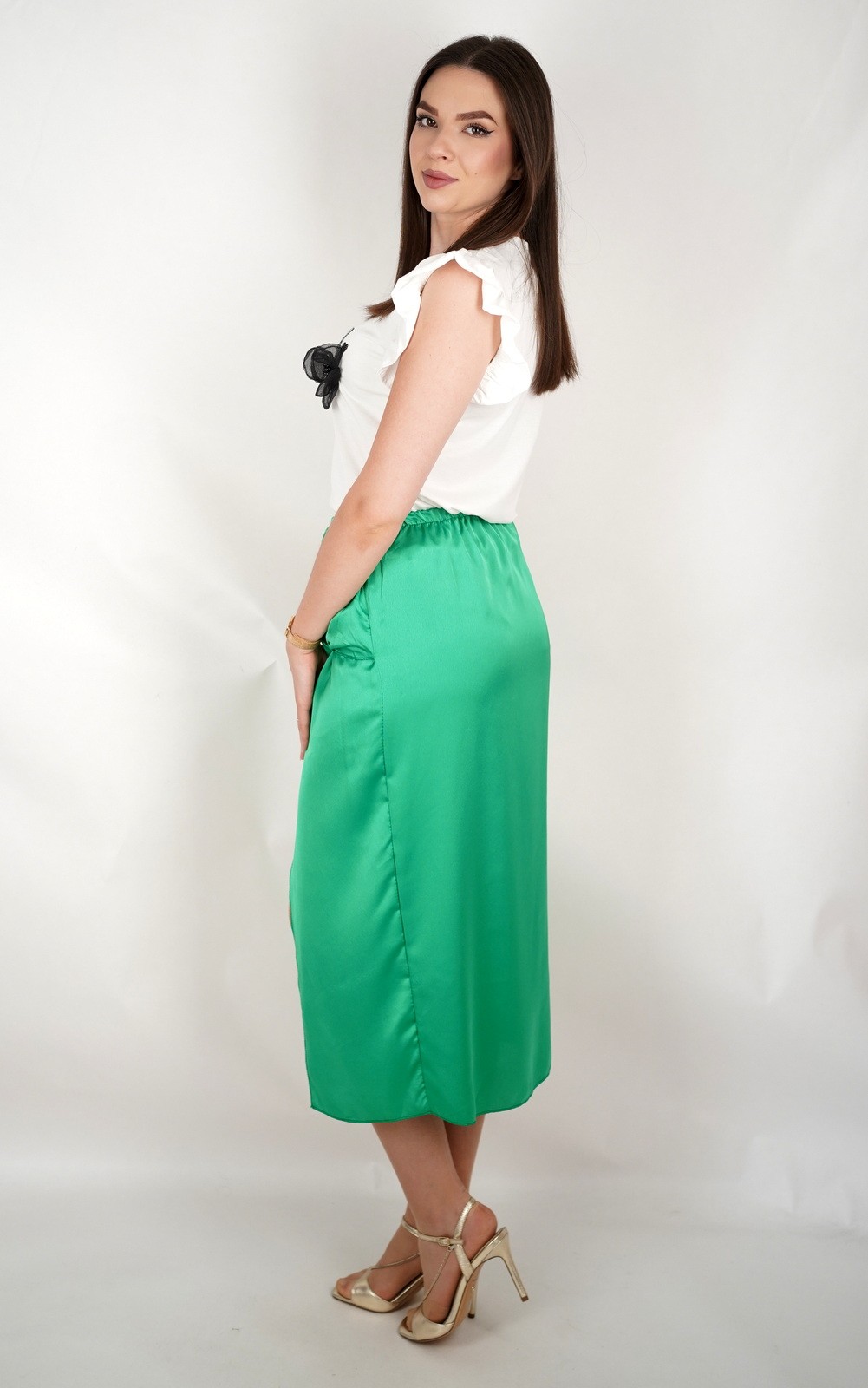 Ženska satenska midi suknja s prednjim čvorom i asimetričnim prorezom – ART:9127