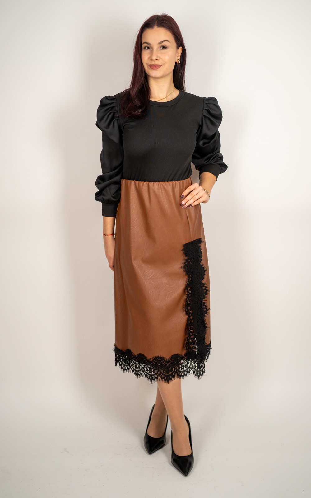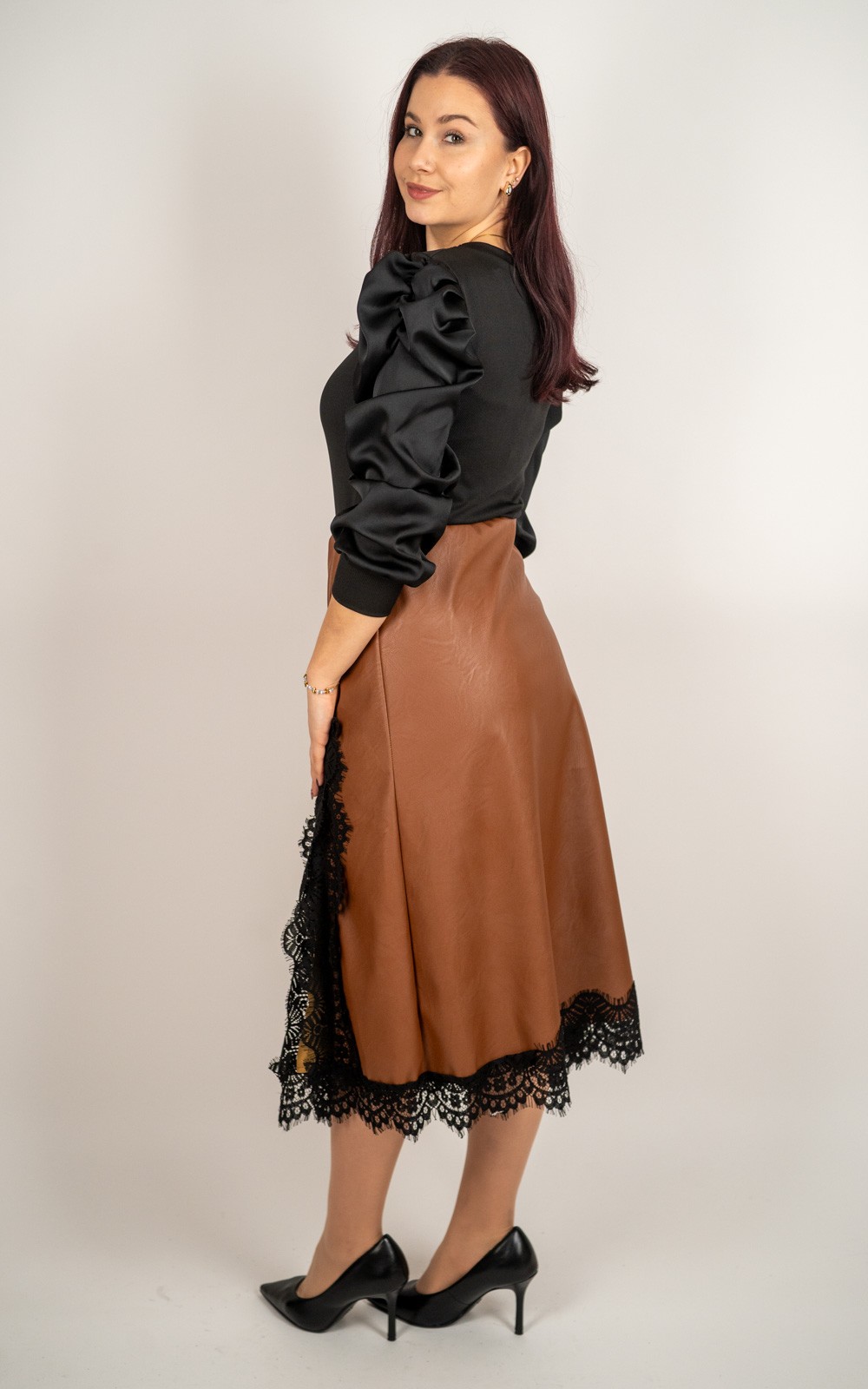 bozic10 očekuje te snižena cijena od 25.20 € za ovaj artikl u košarici.Elegantna midi suknja od eko kože s profinjenim čipkastim rubom i bočnim detaljem. Udobna, ženstvena i idealna za svečane i modne dnevne kombinacije.