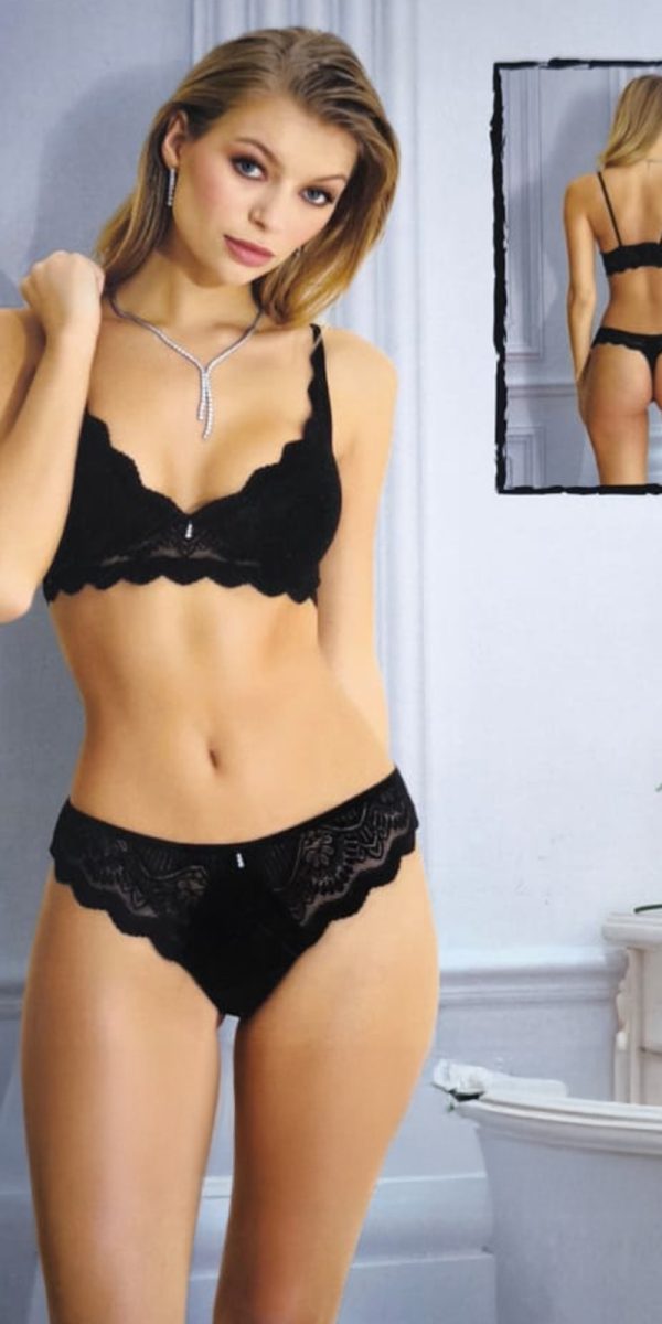 9.00 €Zavodljivi ženski komplet koji spaja eleganciju i udobnost. Gornji dio čini čipkasti grudnjak s tankim…