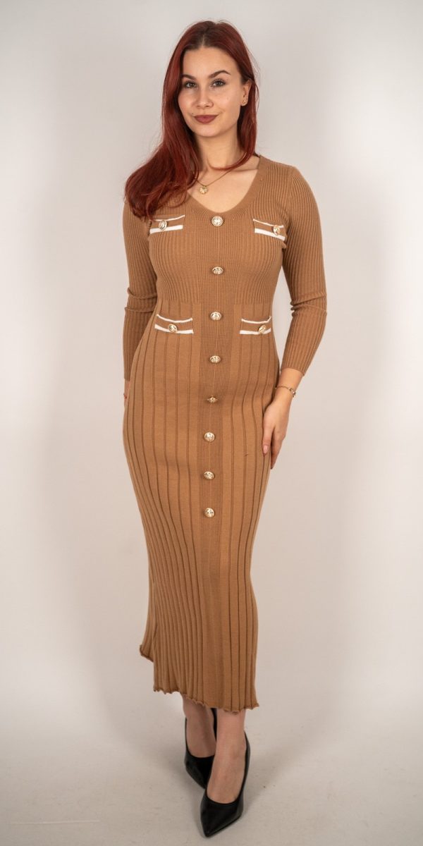 Ženska pletena rebrasta midi haljina s dekor gumbima – 2258