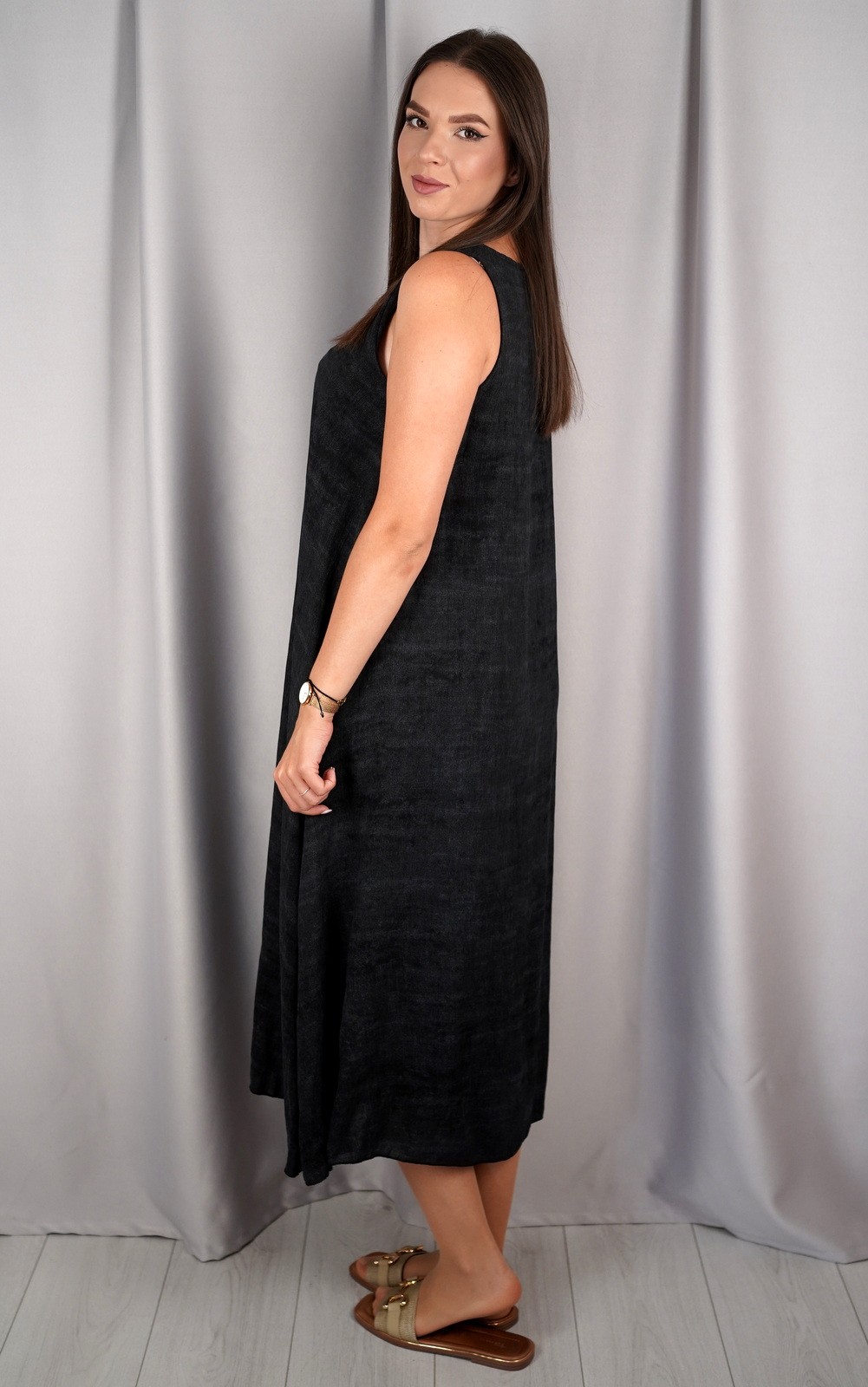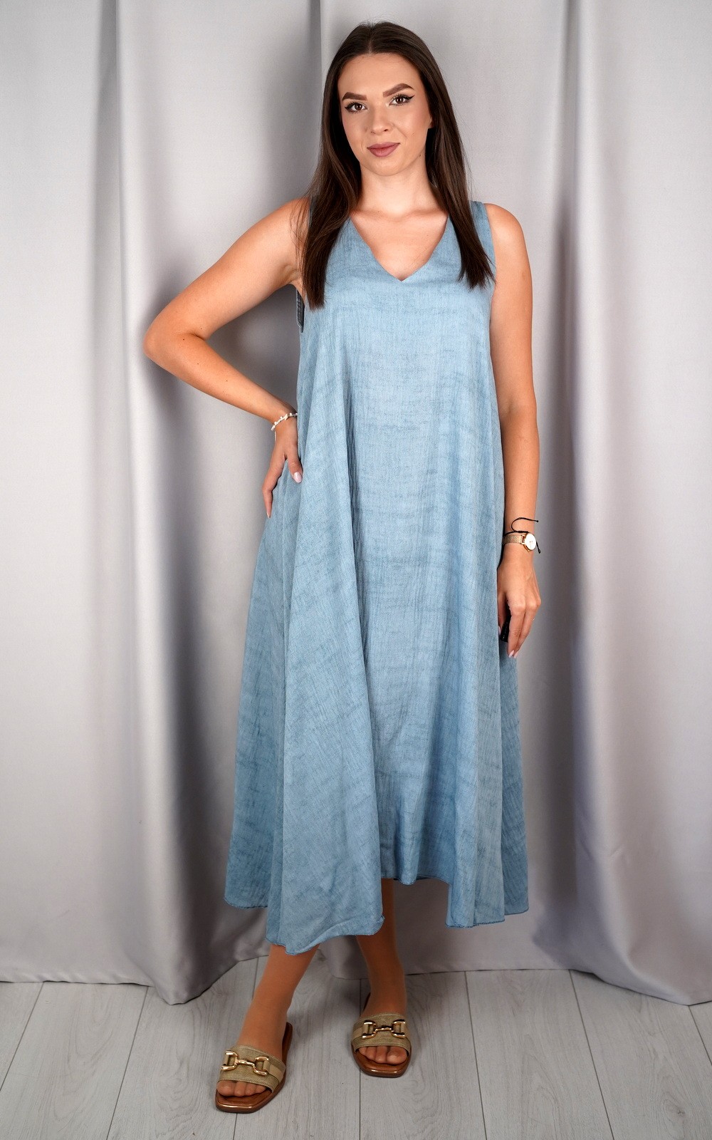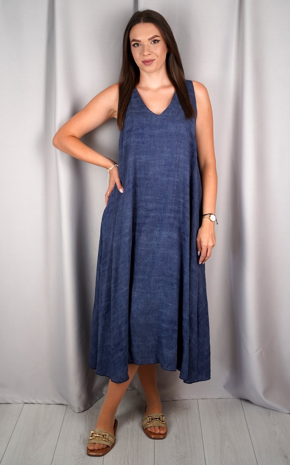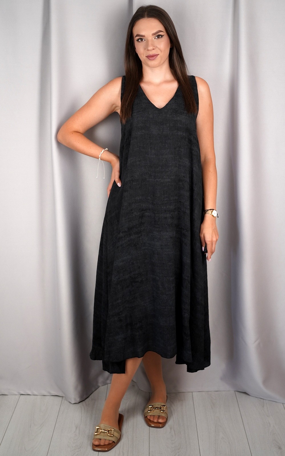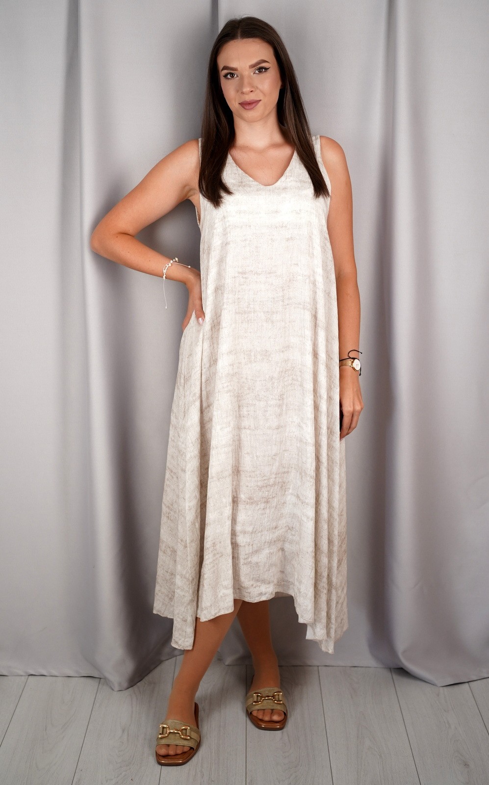 bozic30 očekuje te snižena cijena od 10.50 € za ovaj artikl u košarici.Ova lepršava midi haljina bez rukava savršen je izbor za tople dane kada tražiš udobnost, jednostavnost i eleganciju u jednom. Asimetričan rub daje joj modernu notu, a V-izrez vizualno izdužuje figuru. Haljina je izrađena od laganog i prozračnog materijala koji nježno pada niz tijelo, stvarajući opušten i ženstven izgled. Praktični džepovi sa strane dodatno podižu funkcionalnost ovog modela. Idealan komad za svakodnevne šetnje, opuštene izlaske ili ljetne večere. Minimalistički kroj omogućuje lako kombiniranje s različitim modnim dodacima.