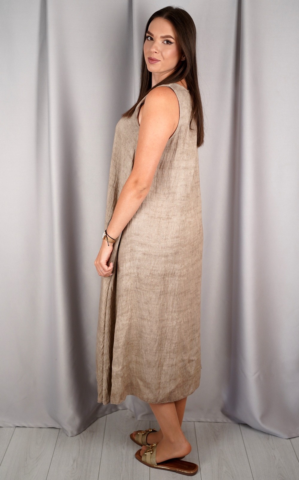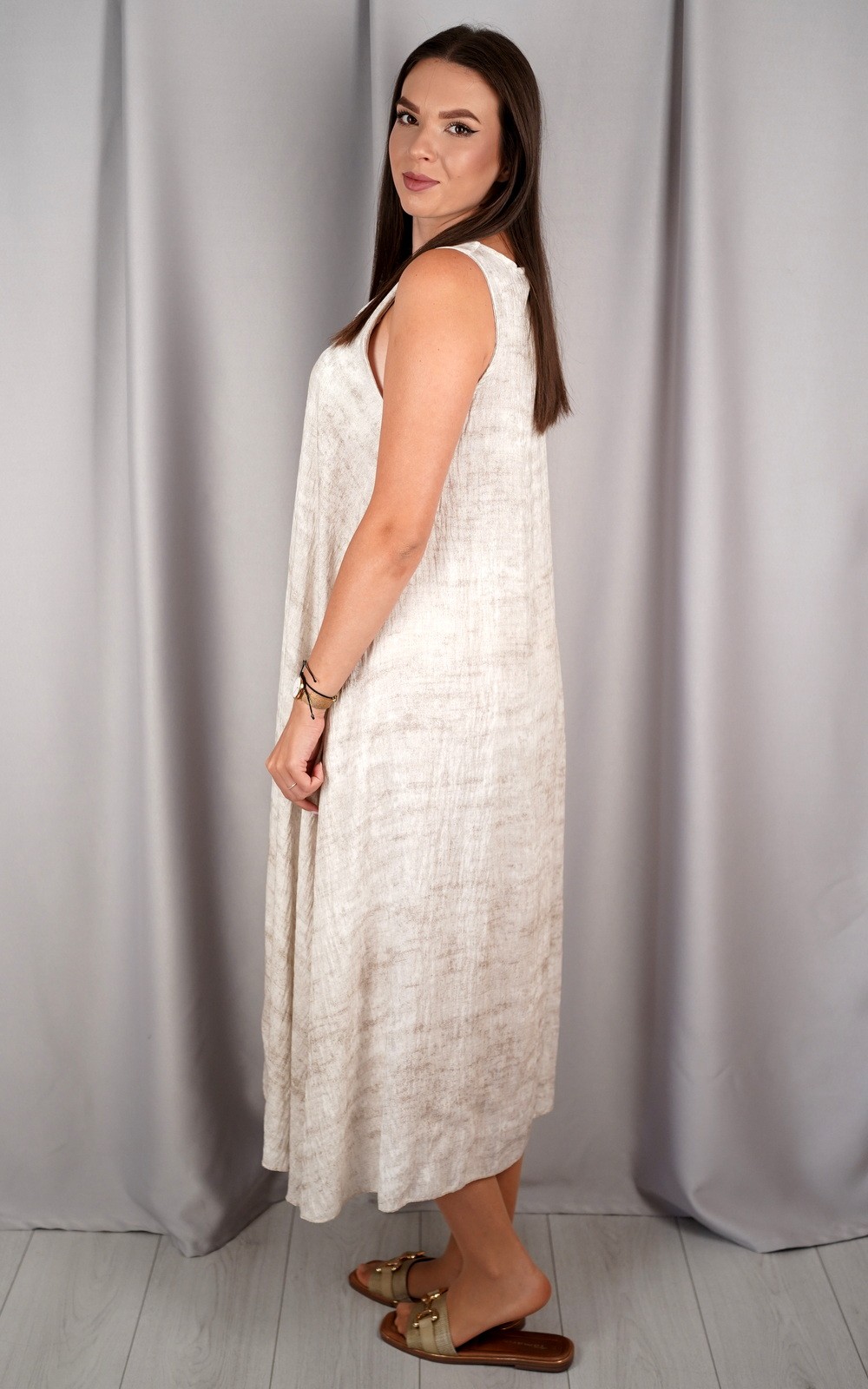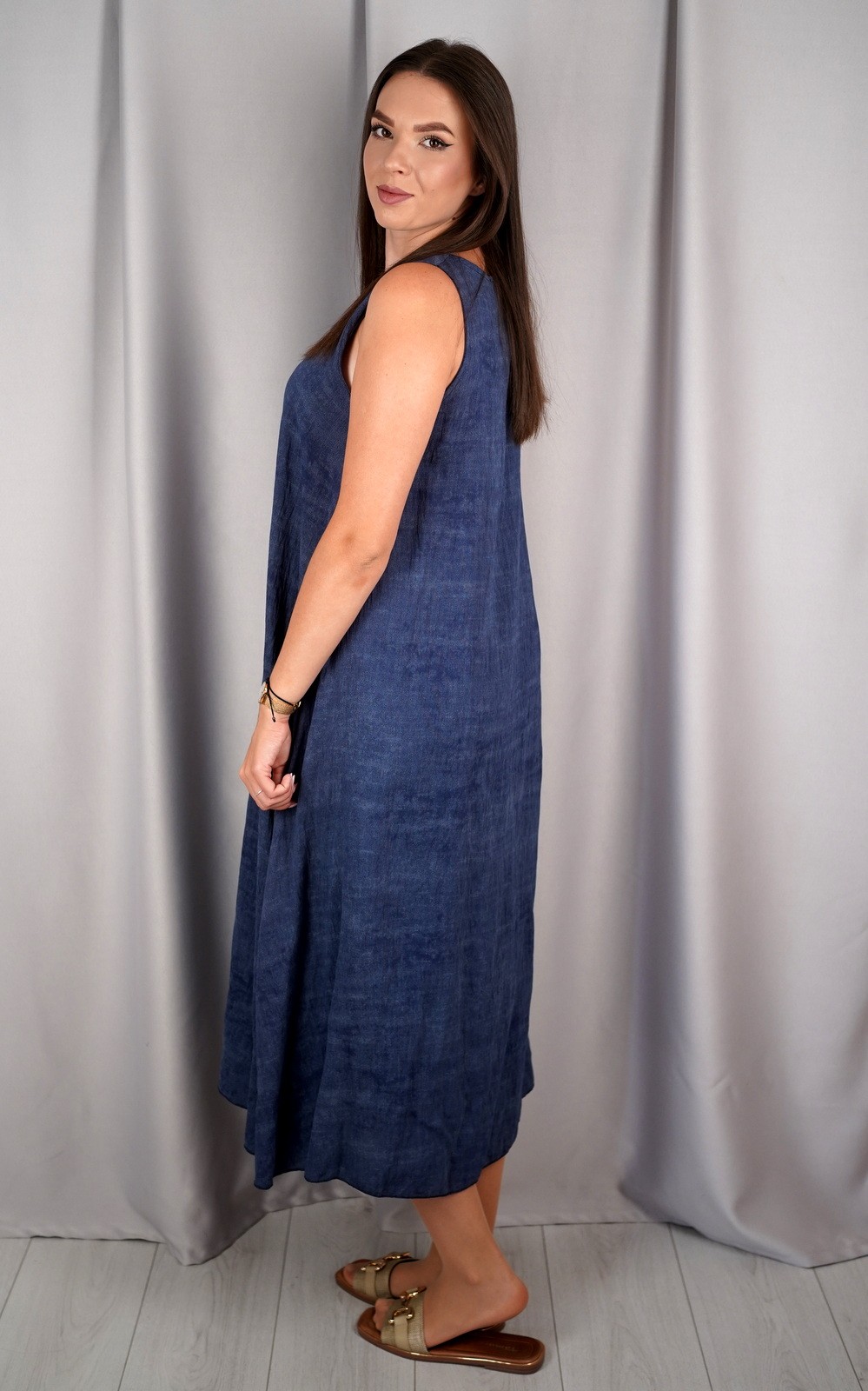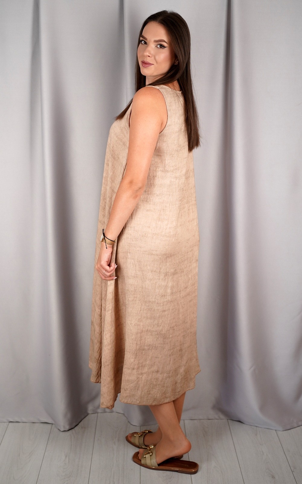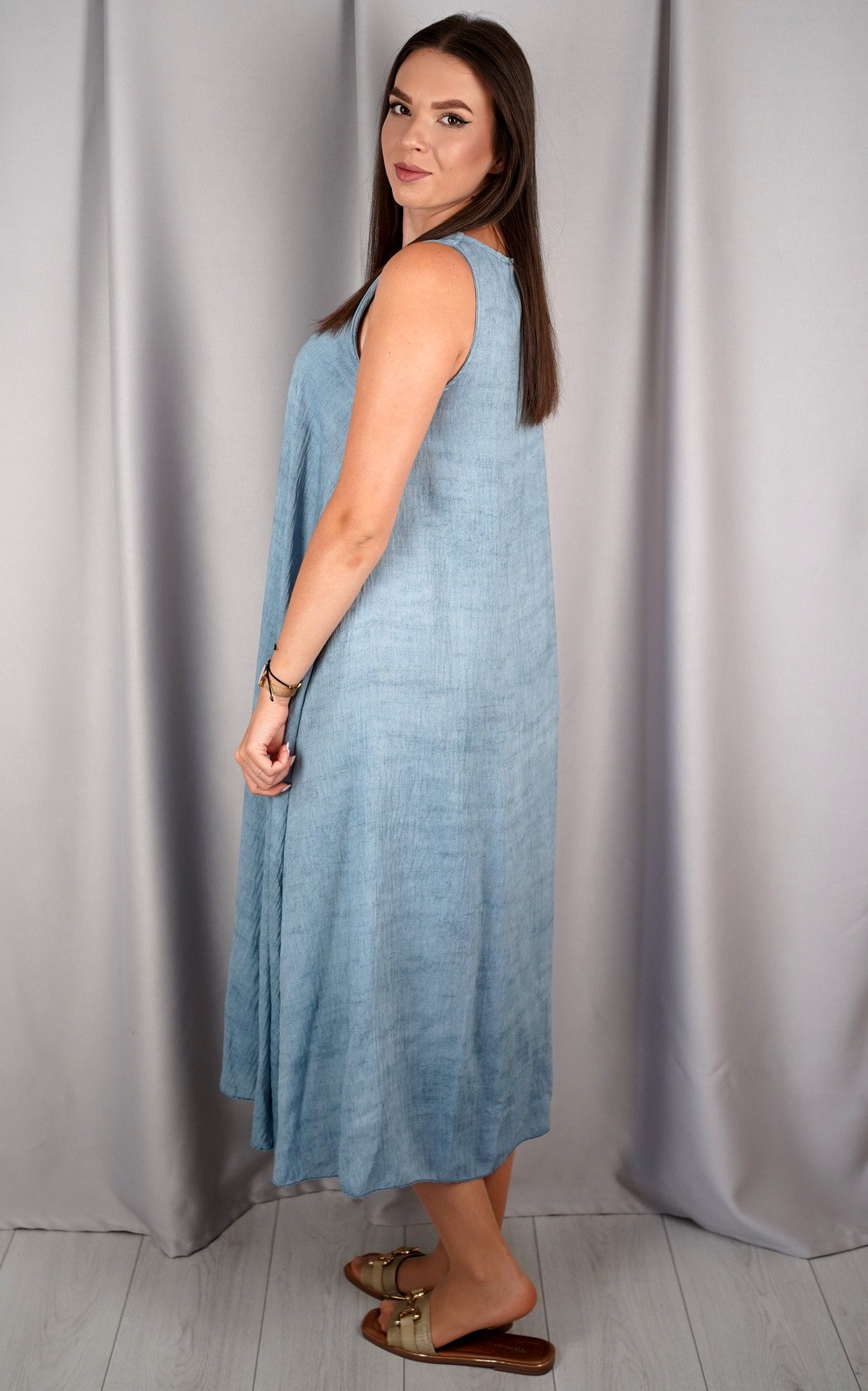 bozic30 očekuje te snižena cijena od 10.50 € za ovaj artikl u košarici.Ova lepršava midi haljina bez rukava savršen je izbor za tople dane kada tražiš udobnost, jednostavnost i eleganciju u jednom. Asimetričan rub daje joj modernu notu, a V-izrez vizualno izdužuje figuru. Haljina je izrađena od laganog i prozračnog materijala koji nježno pada niz tijelo, stvarajući opušten i ženstven izgled. Praktični džepovi sa strane dodatno podižu funkcionalnost ovog modela. Idealan komad za svakodnevne šetnje, opuštene izlaske ili ljetne večere. Minimalistički kroj omogućuje lako kombiniranje s različitim modnim dodacima.