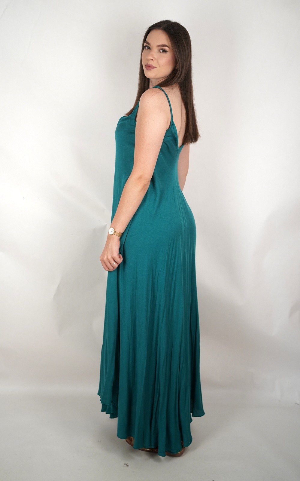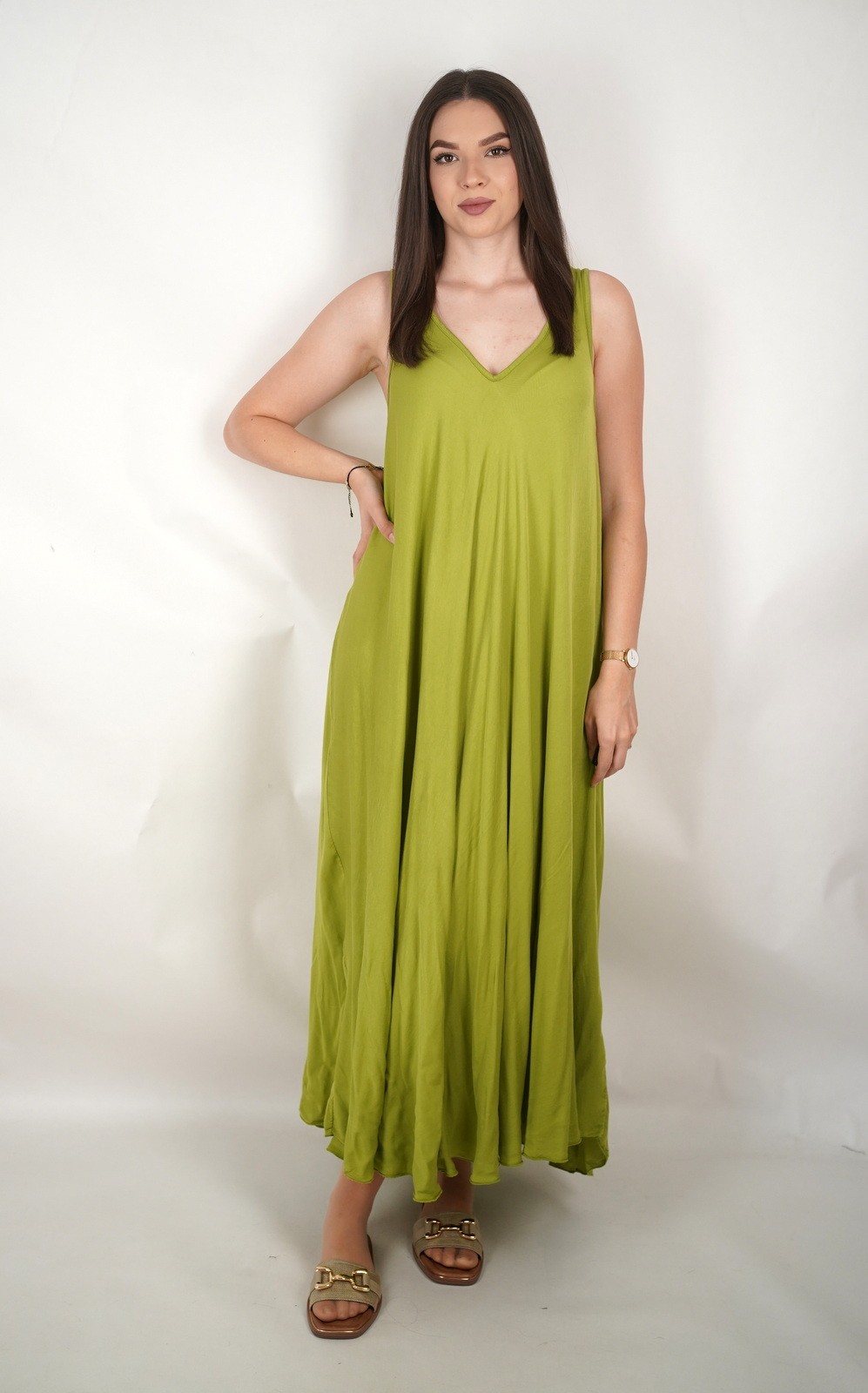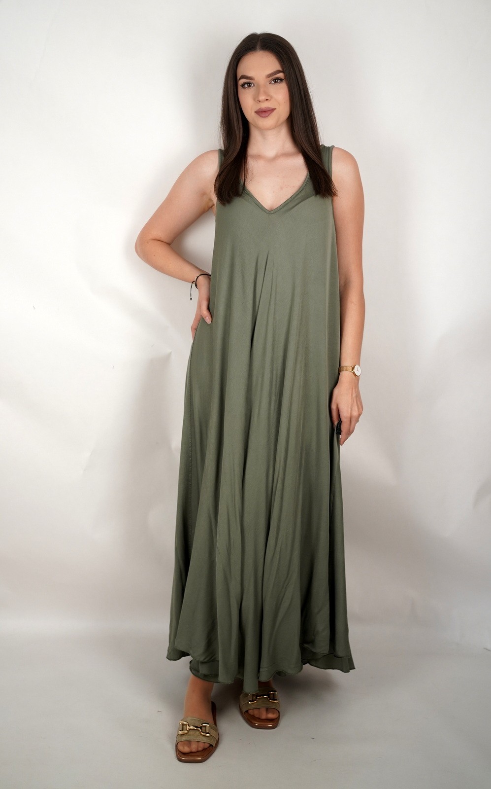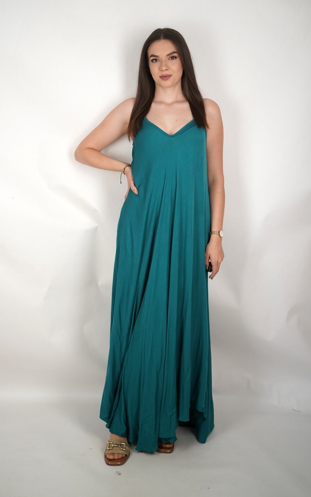 Ženska viskozna haljina s V izrezom i tankim naramenicama – 18011
