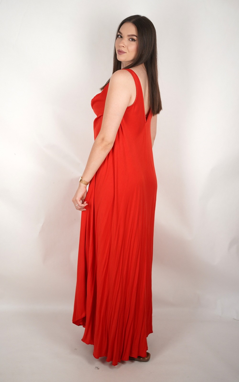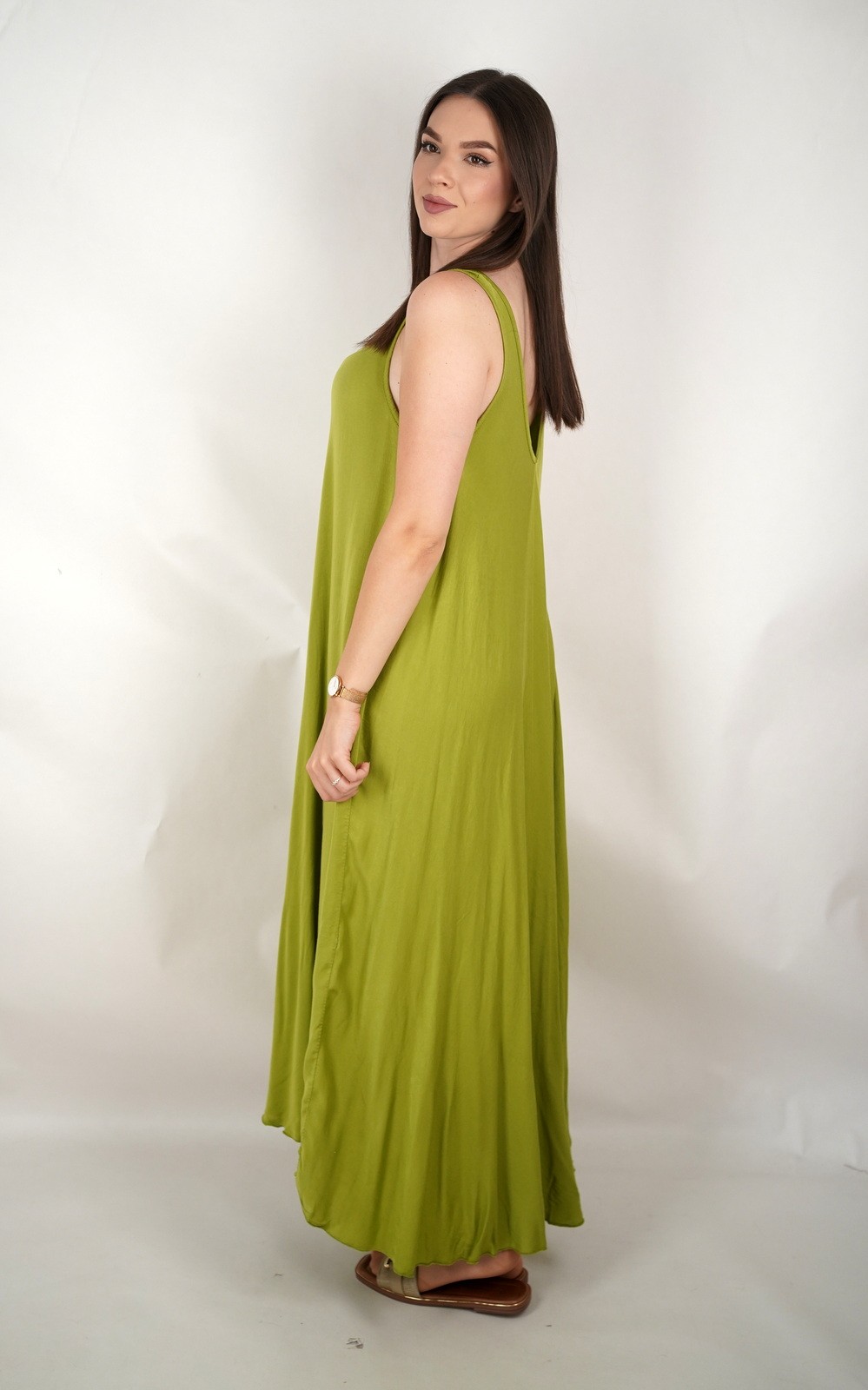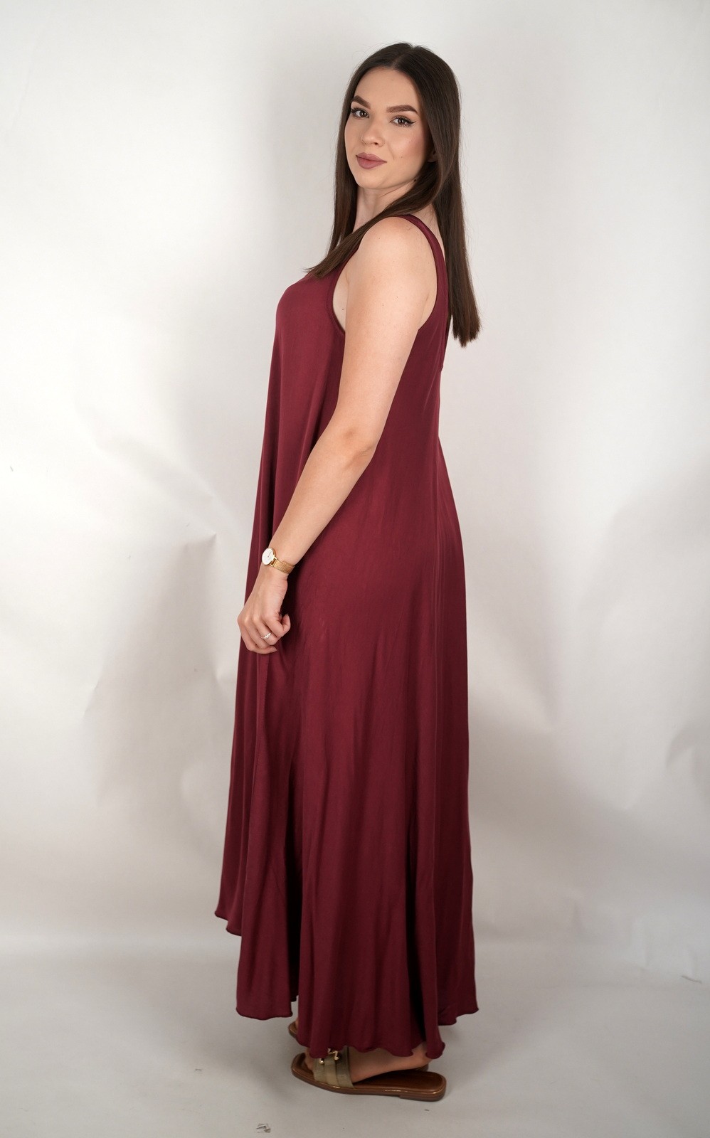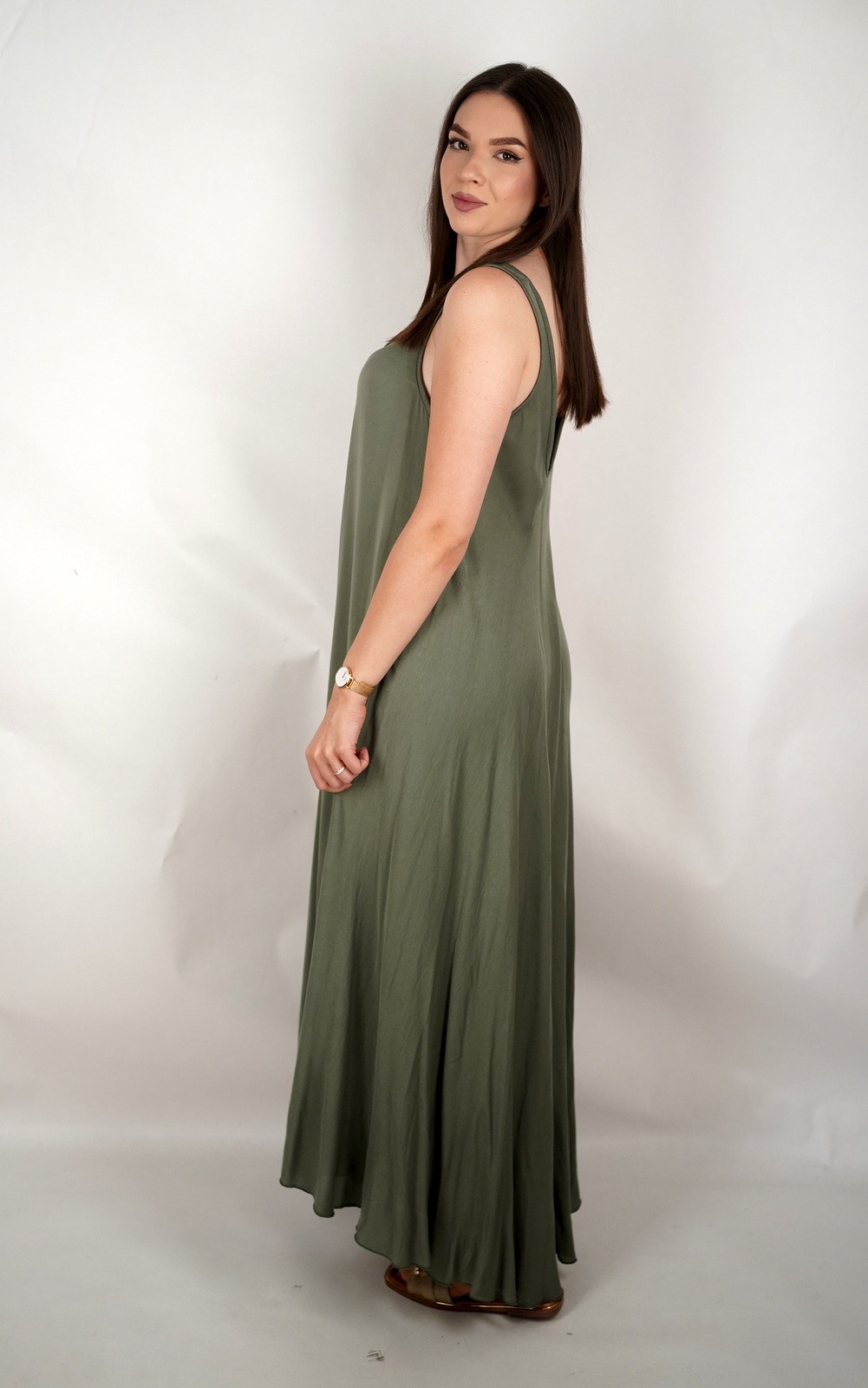 Ova lepršava maxi haljina s dubokim V izrezom i tankim naramenicama savršena je za ljetne dane, kada tražimo spoj jednostavnosti i stila. Prozračni materijal i široki, slobodni kroj pružaju maksimalnu udobnost, dok elegantan pad tkanine lijepo prati liniju tijela. Haljina se lako kombinira uz ravne sandale, platforme ili espadrile, a pogodna je za svakodnevno nošenje, večernje šetnje uz more ili opuštene ljetne izlaske. Jednostavna, ženstvena i efektna – model koji ćete obožavati!