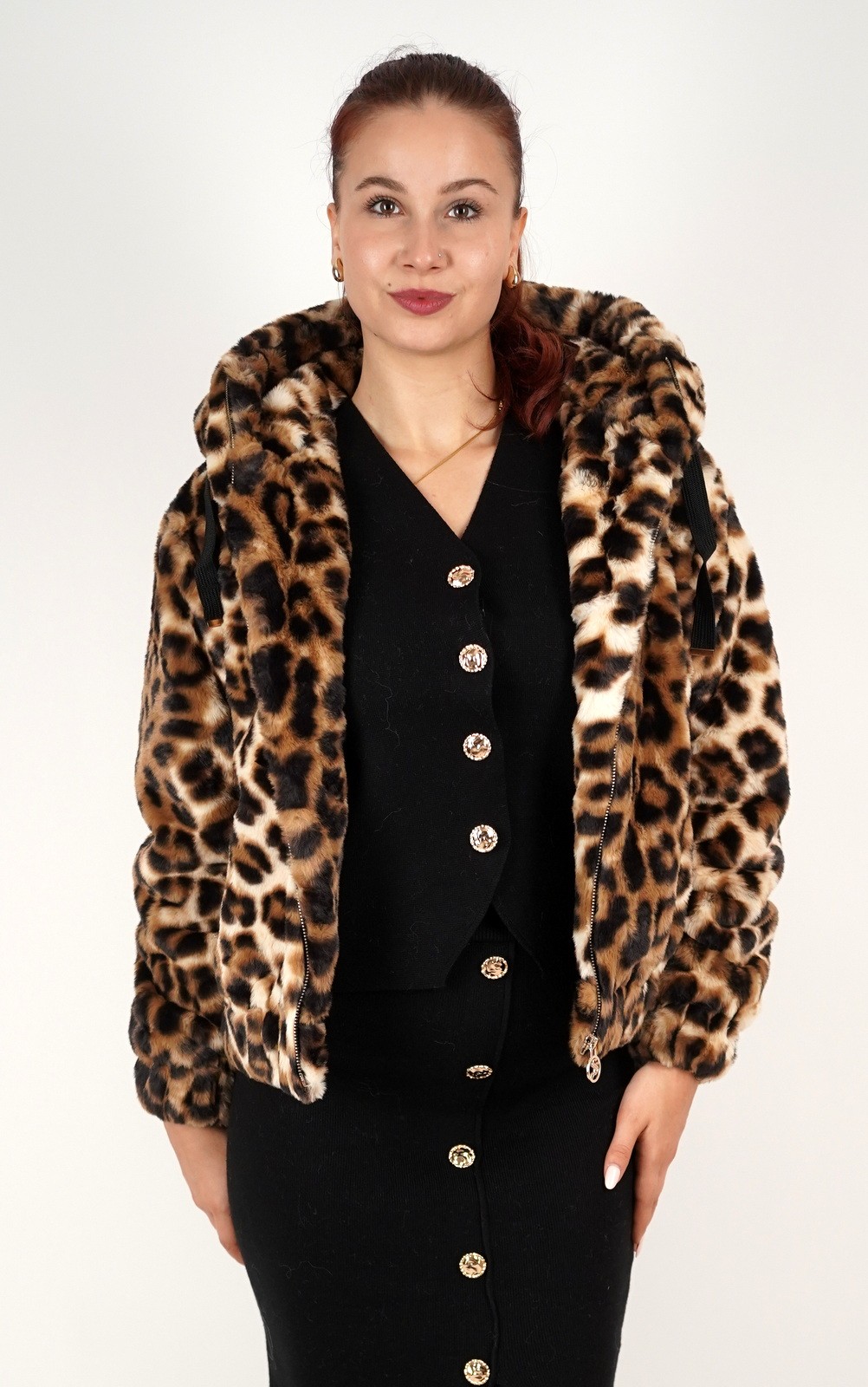 Ženska zimska krznena jakna s animal printom – u veličinama – 6525 – uzorak 2