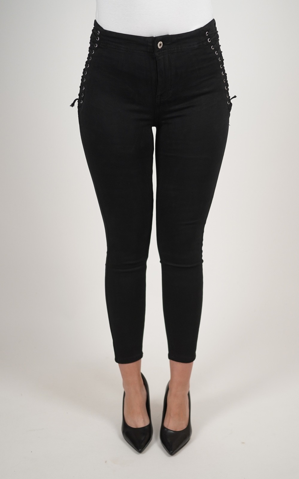Ove ženske crne skinny traperice s vezicama idealne su za žene koje žele spojiti udobnost, moderni dizajn i svestranost u svakodnevnim kombinacijama!