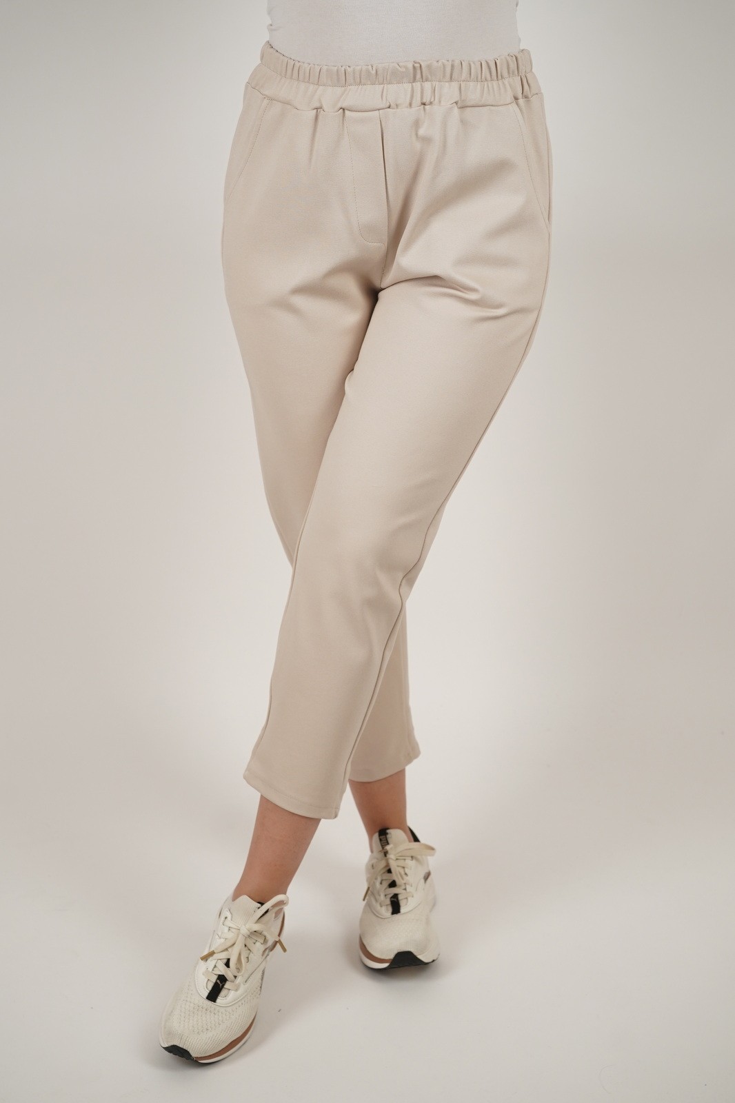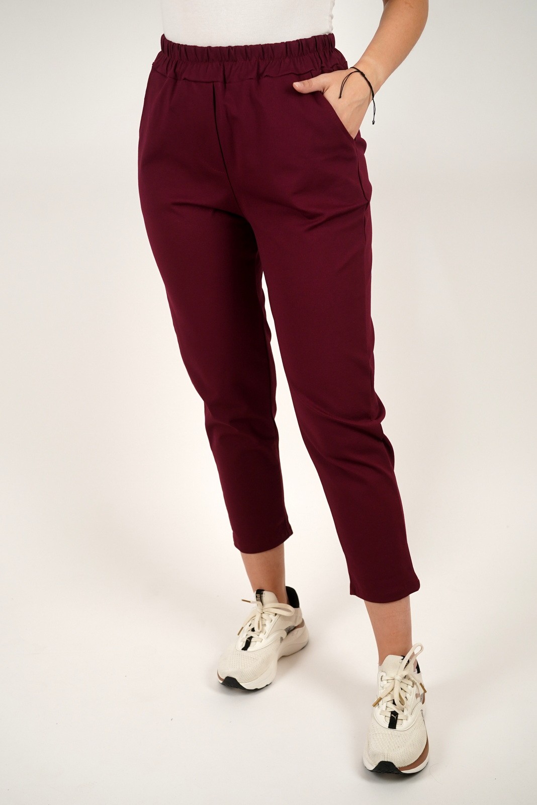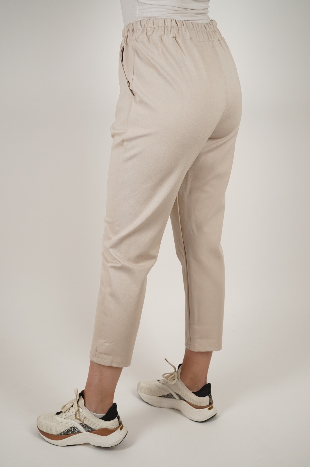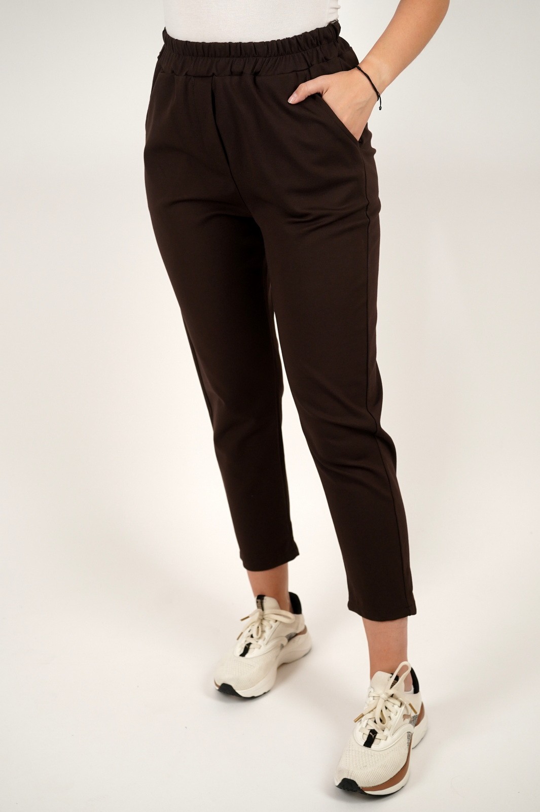 Ženske elastične hlače s visokim strukom i podvrnutim rubom savršen su izbor za svakodnevno nošenje. Izrađene od udobnog, lagano rastezljivog materijala koji omogućuje slobodu pokreta, ove hlače pružaju osjećaj lakoće i udobnosti tijekom cijelog dana. Model s elastičnim pojasom lijepo pristaje svakoj figuri i naglašava struk, dok praktični džepovi daju dodatnu funkcionalnost.