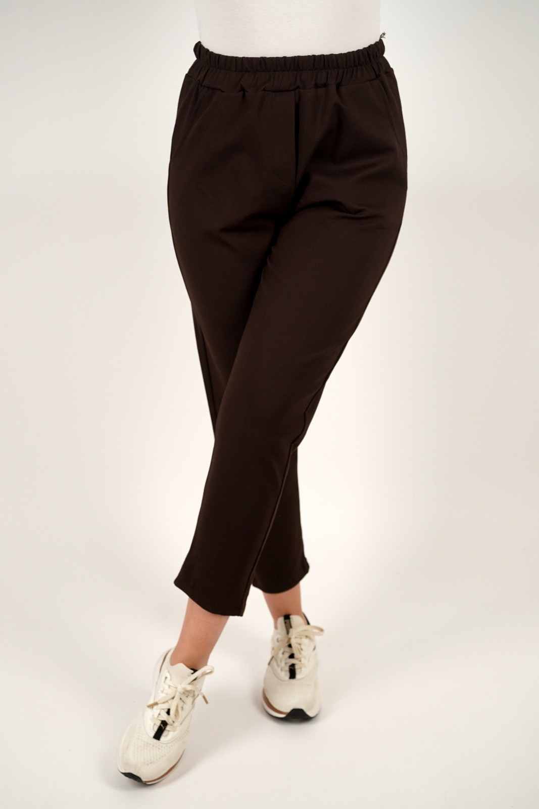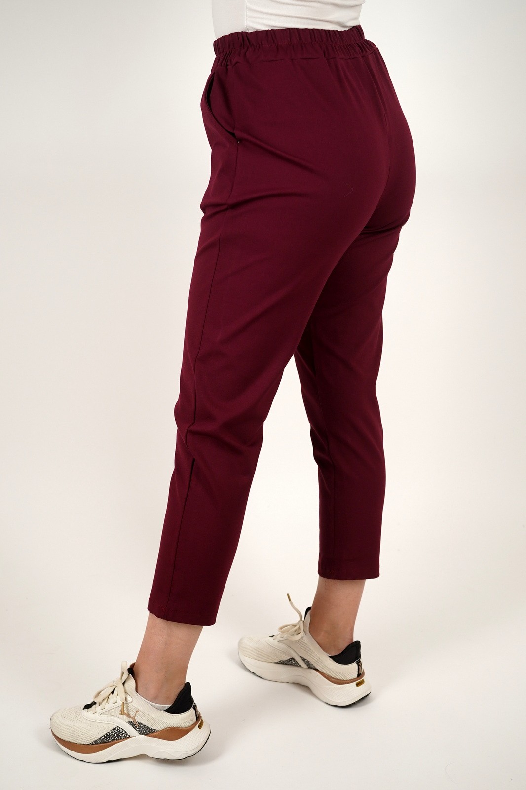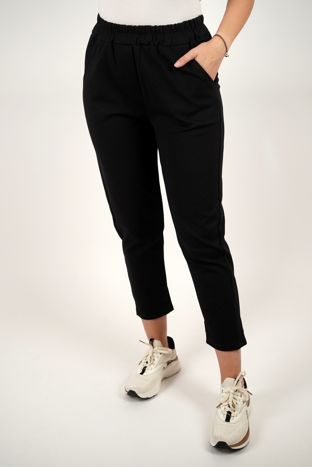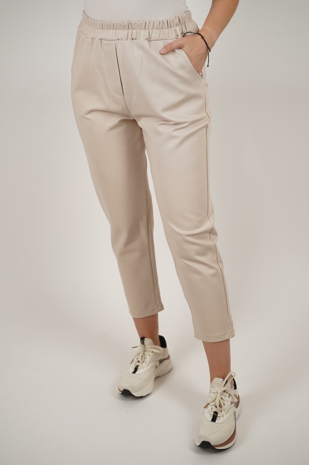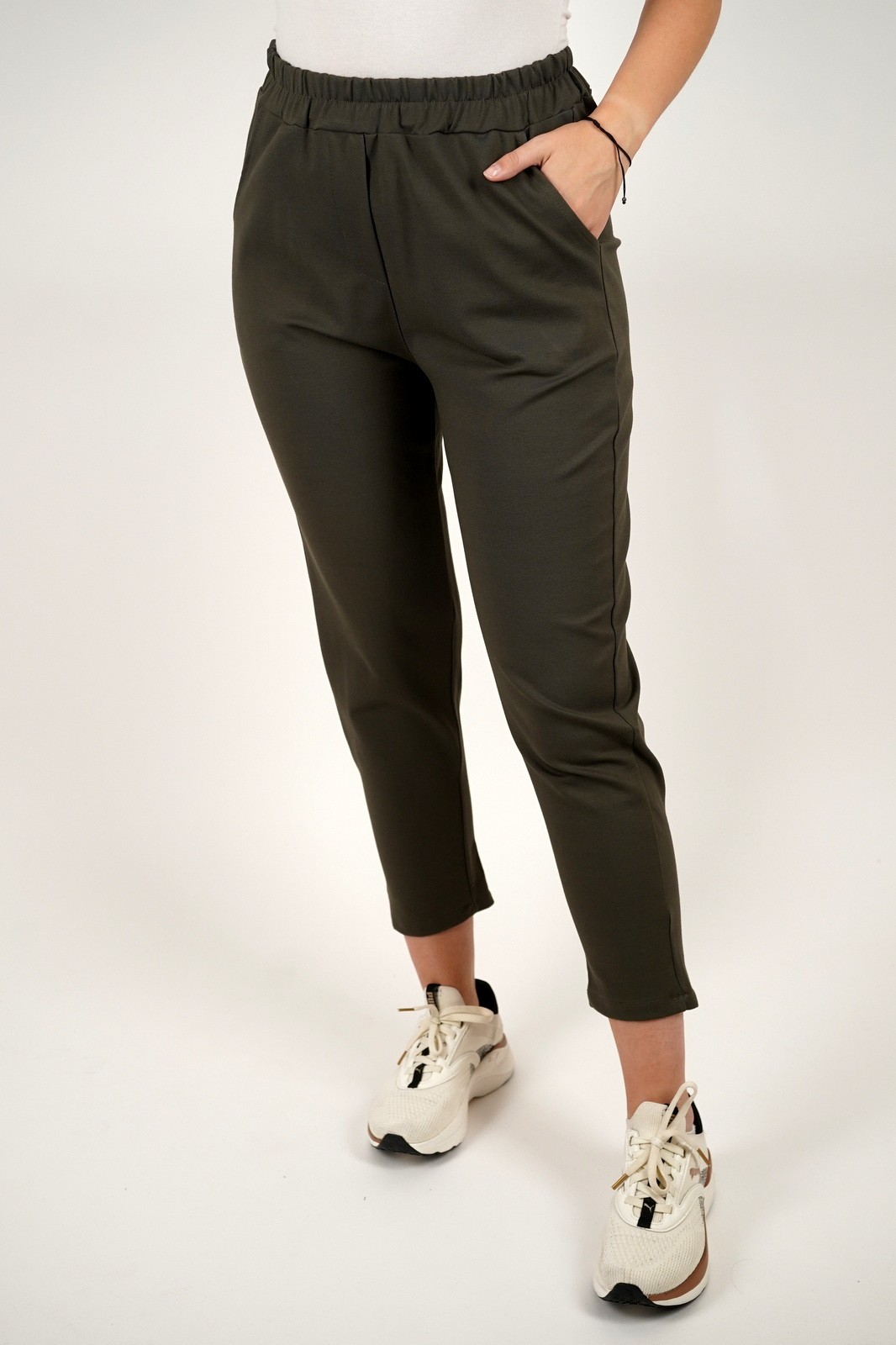 Ženske elastične hlače s visokim strukom i podvrnutim rubom savršen su izbor za svakodnevno nošenje. Izrađene od udobnog, lagano rastezljivog materijala koji omogućuje slobodu pokreta, ove hlače pružaju osjećaj lakoće i udobnosti tijekom cijelog dana. Model s elastičnim pojasom lijepo pristaje svakoj figuri i naglašava struk, dok praktični džepovi daju dodatnu funkcionalnost.