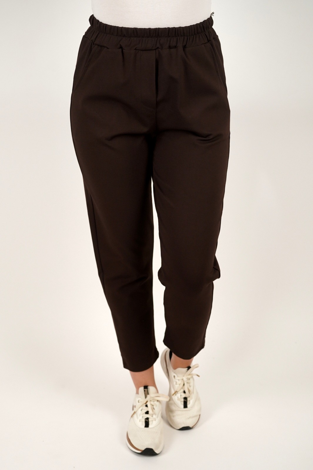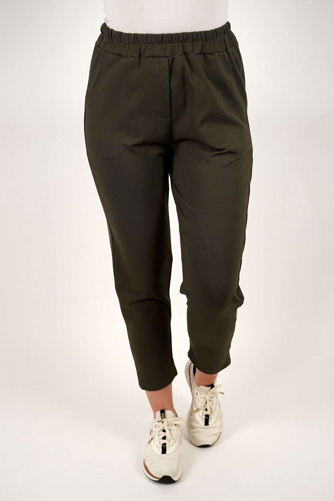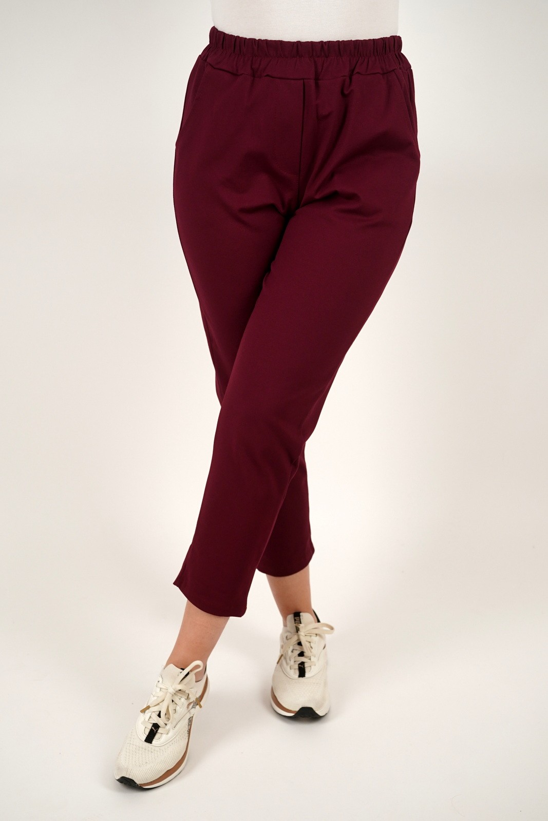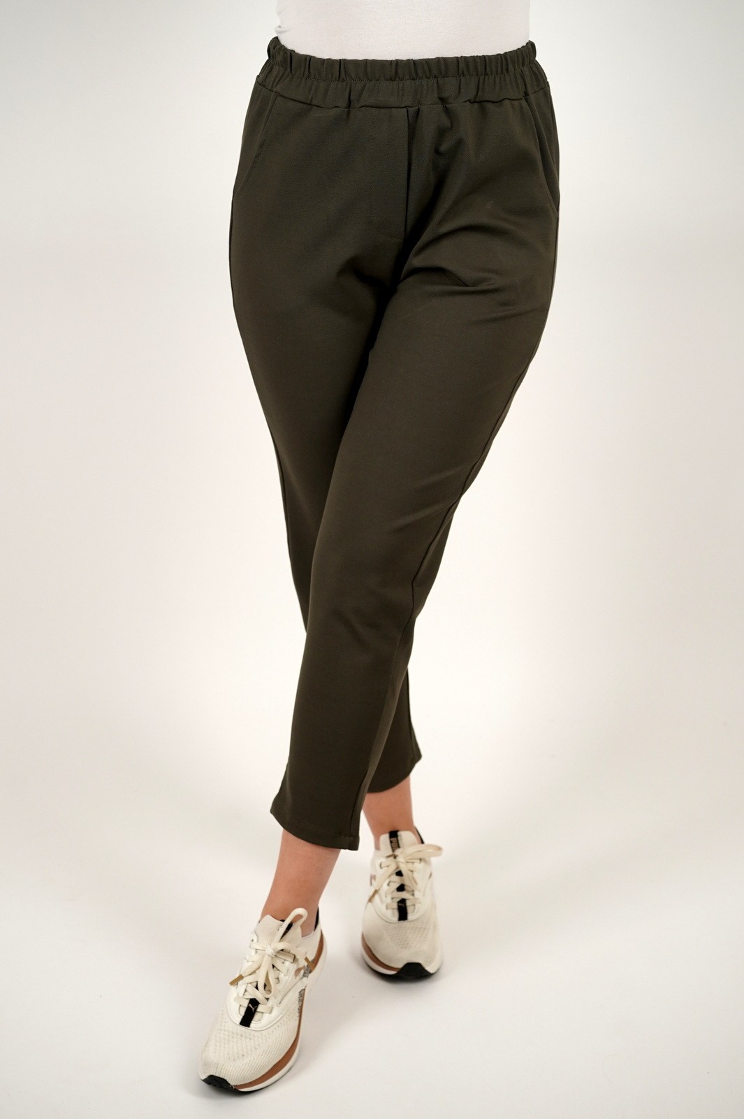 Ženske elastične hlače s visokim strukom i podvrnutim rubom savršen su izbor za svakodnevno nošenje. Izrađene od udobnog, lagano rastezljivog materijala koji omogućuje slobodu pokreta, ove hlače pružaju osjećaj lakoće i udobnosti tijekom cijelog dana. Model s elastičnim pojasom lijepo pristaje svakoj figuri i naglašava struk, dok praktični džepovi daju dodatnu funkcionalnost.