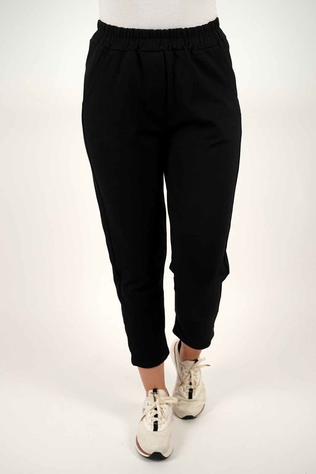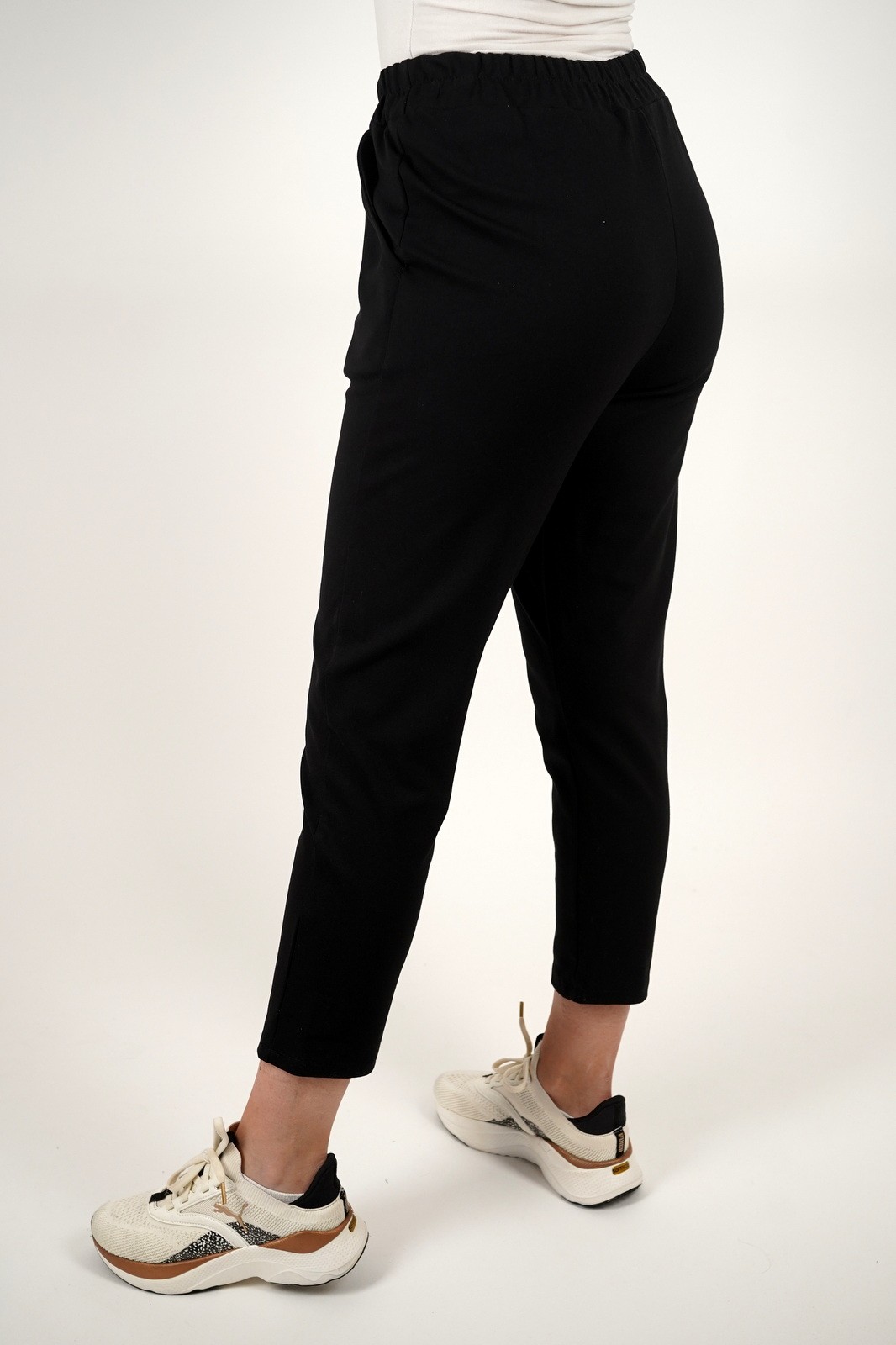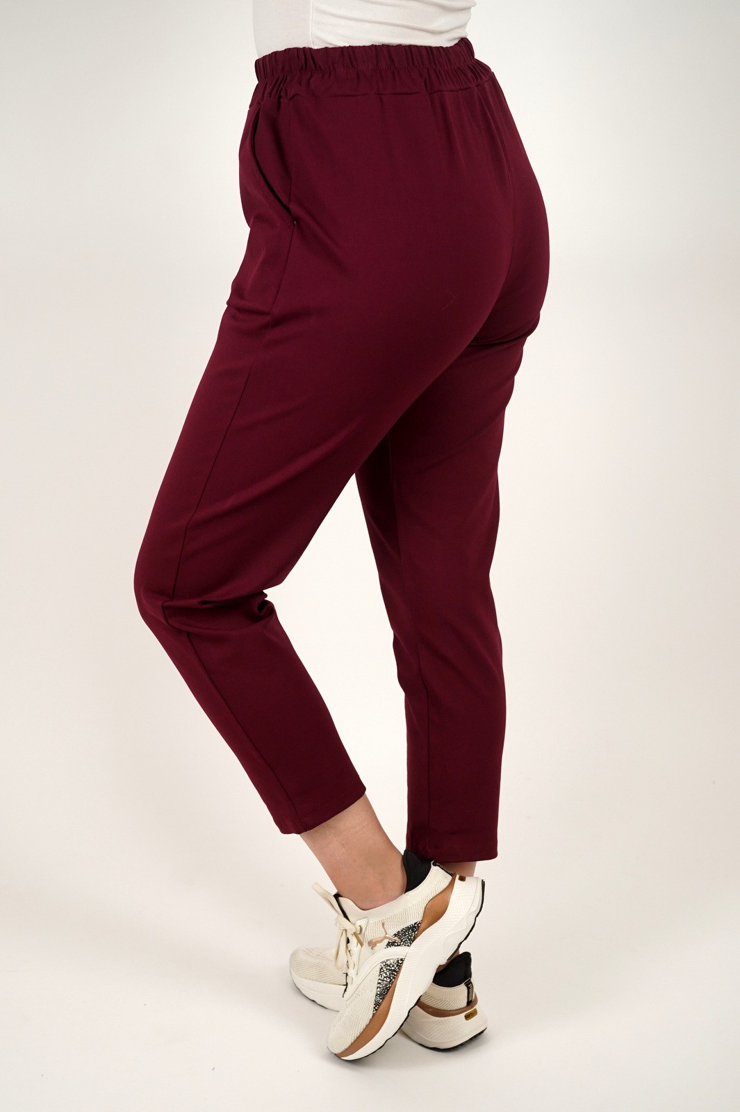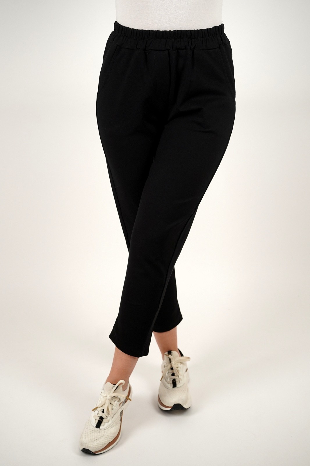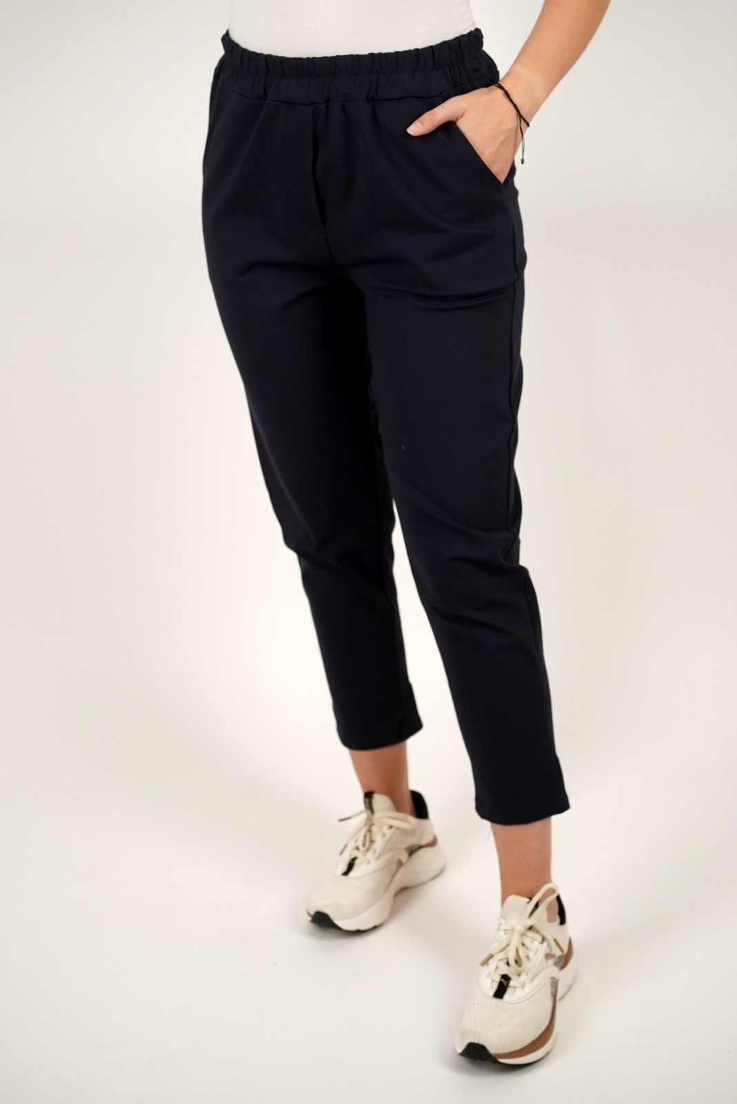 Ženske elastične hlače s visokim strukom i podvrnutim rubom savršen su izbor za svakodnevno nošenje. Izrađene od udobnog, lagano rastezljivog materijala koji omogućuje slobodu pokreta, ove hlače pružaju osjećaj lakoće i udobnosti tijekom cijelog dana. Model s elastičnim pojasom lijepo pristaje svakoj figuri i naglašava struk, dok praktični džepovi daju dodatnu funkcionalnost.