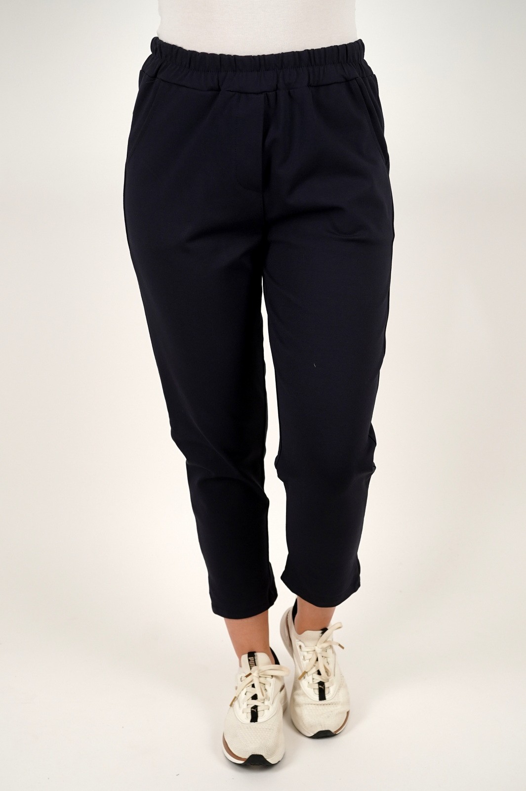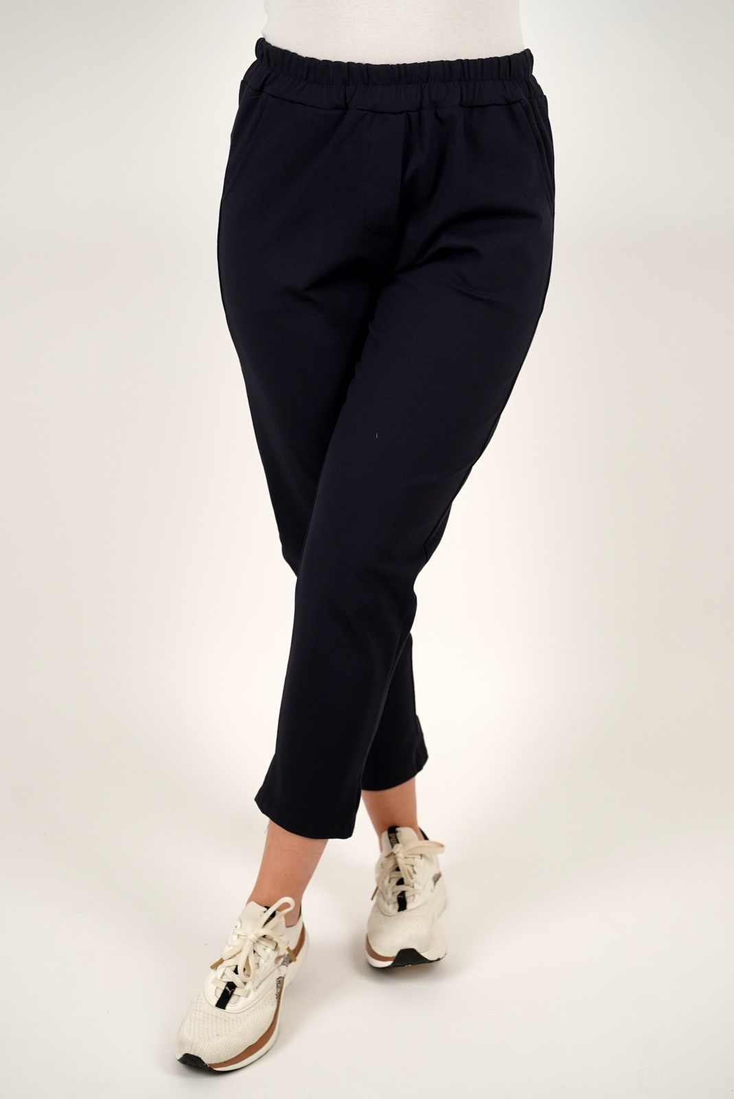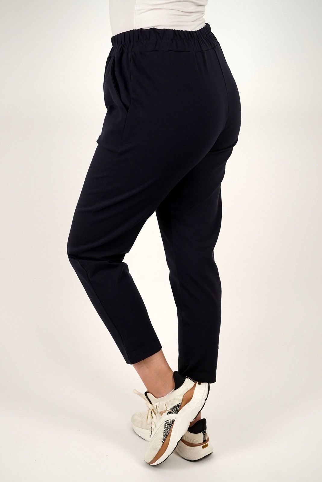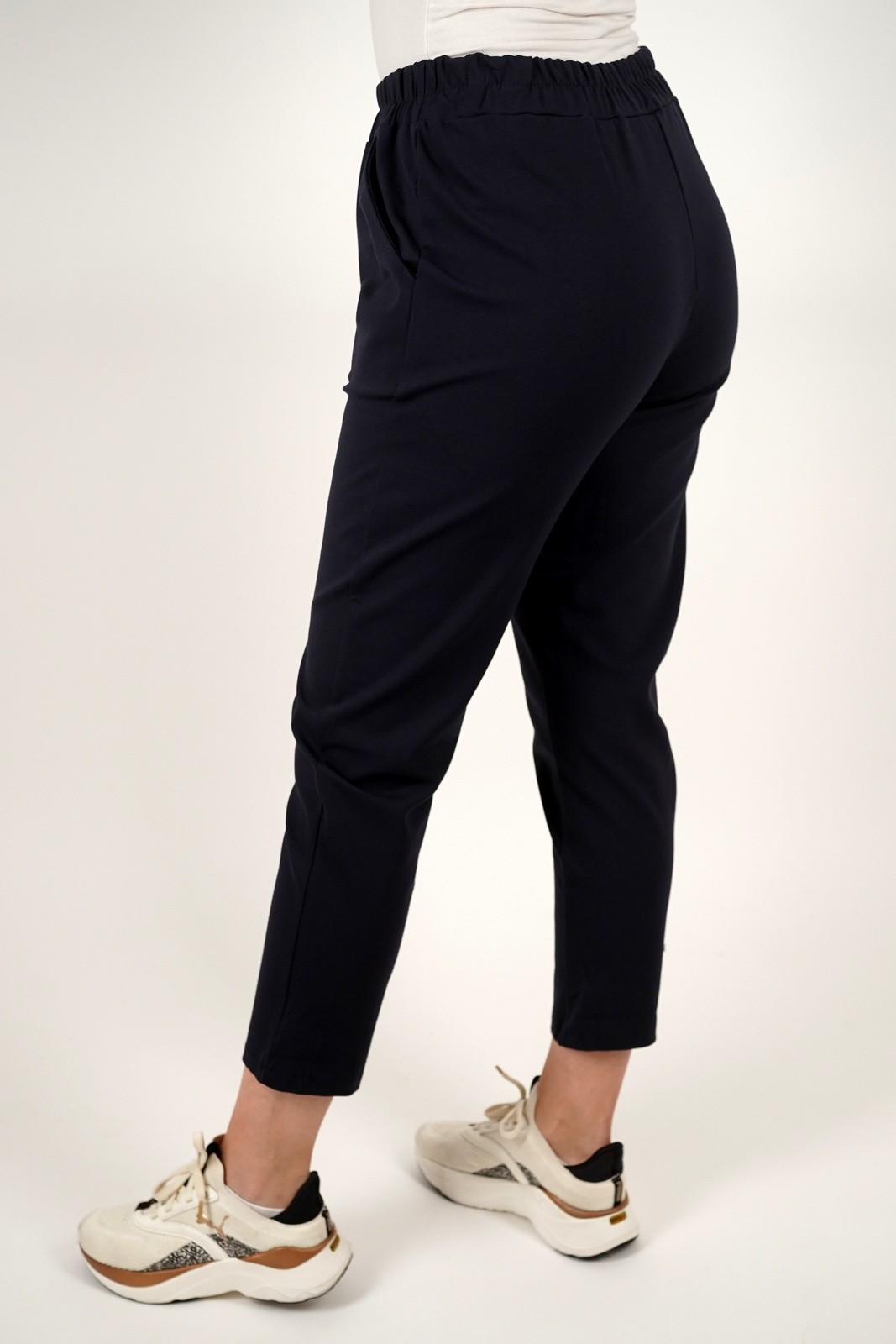 Ženske elastične hlače s visokim strukom i podvrnutim rubom savršen su izbor za svakodnevno nošenje. Izrađene od udobnog, lagano rastezljivog materijala koji omogućuje slobodu pokreta, ove hlače pružaju osjećaj lakoće i udobnosti tijekom cijelog dana. Model s elastičnim pojasom lijepo pristaje svakoj figuri i naglašava struk, dok praktični džepovi daju dodatnu funkcionalnost.