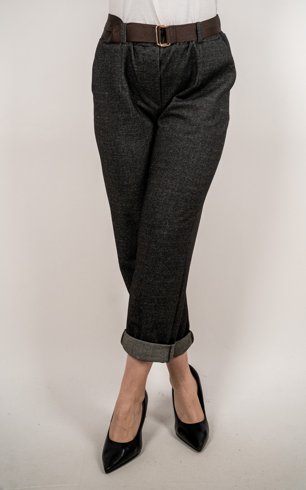Ženske elegantne hlače s visokim strukom i remenom – u veličinama – 2096