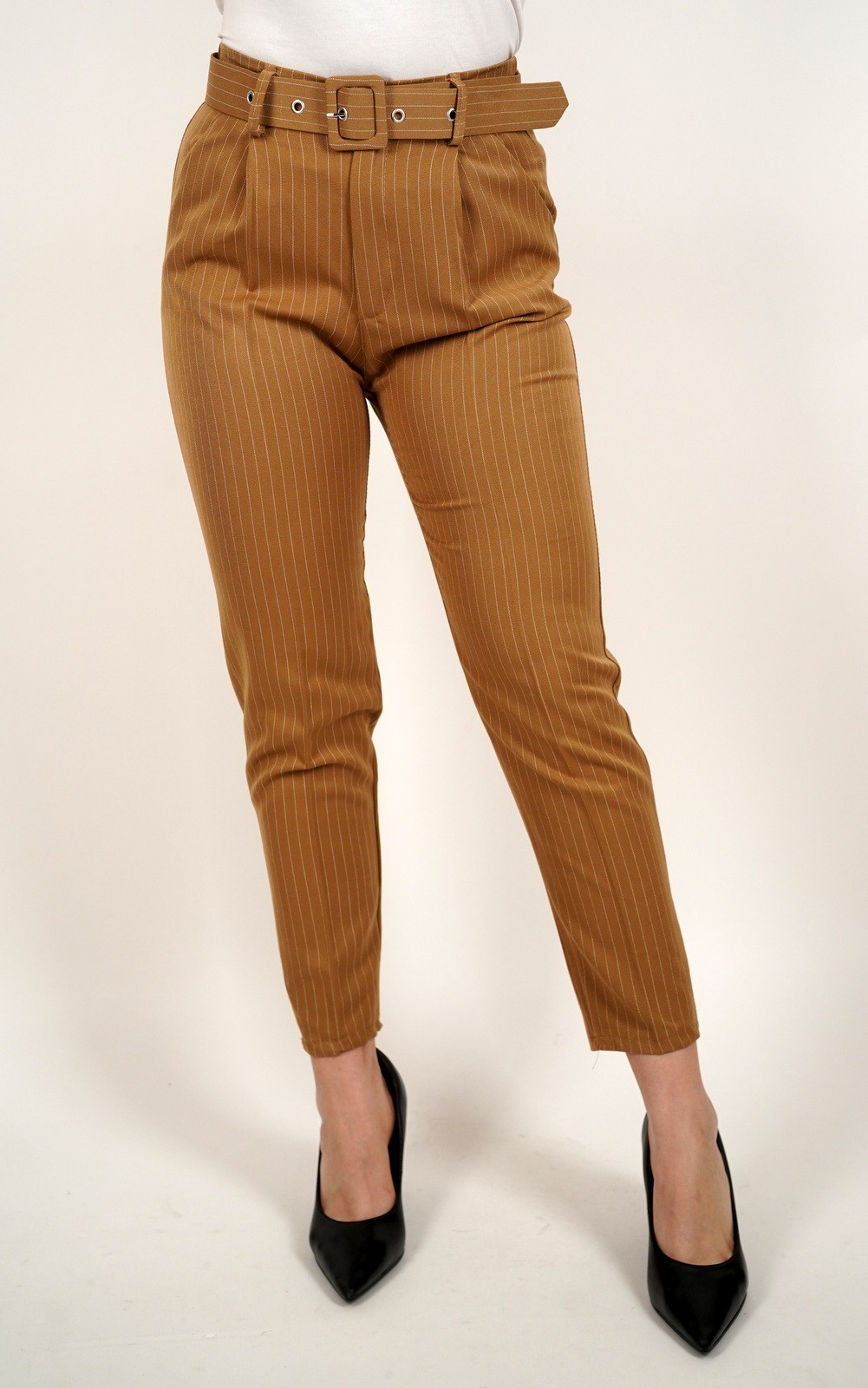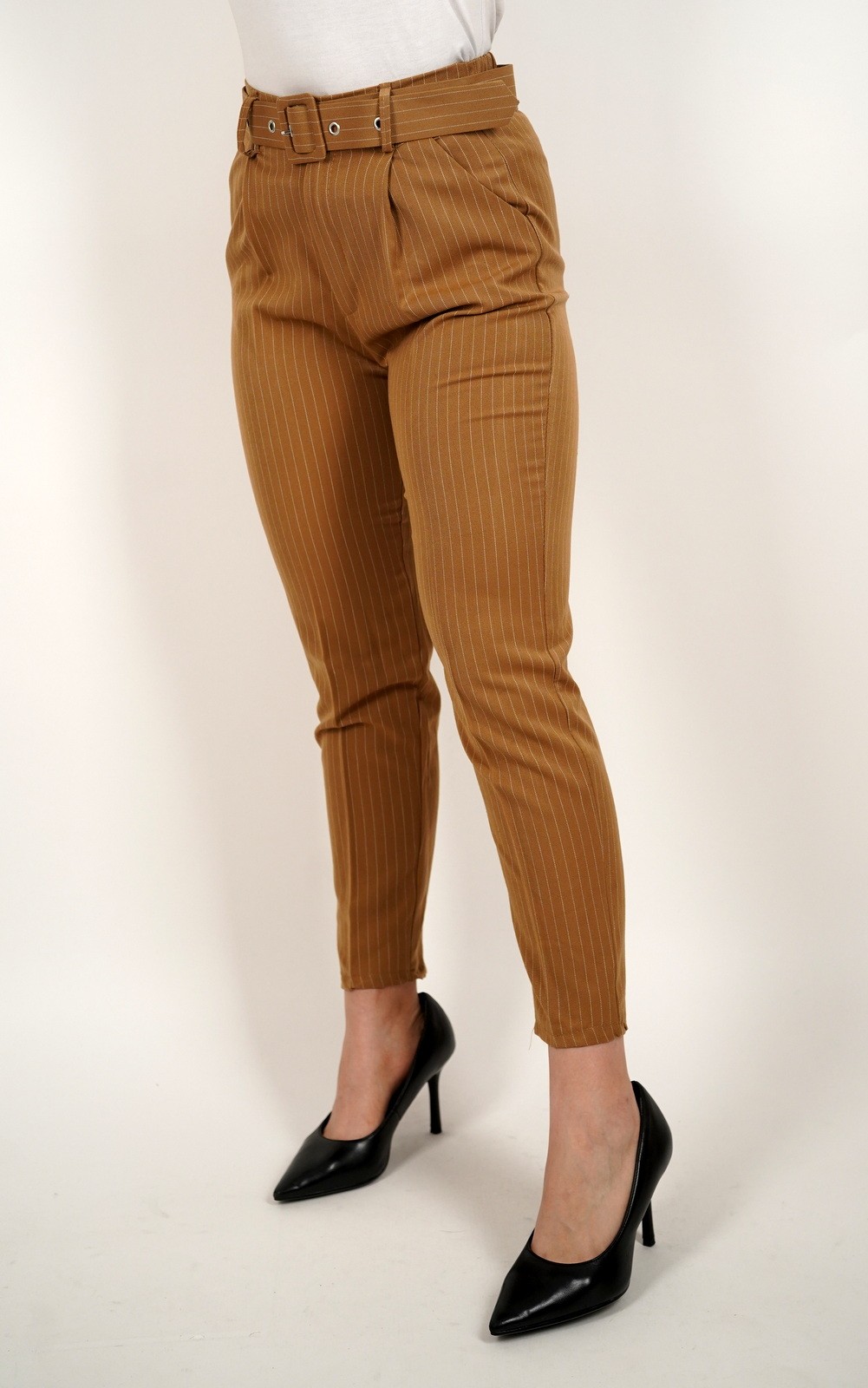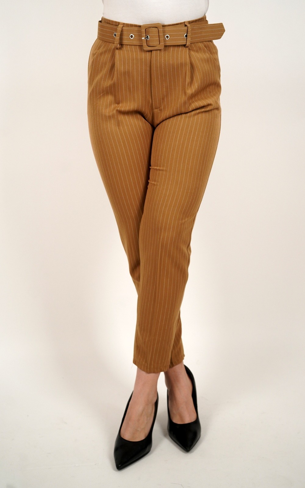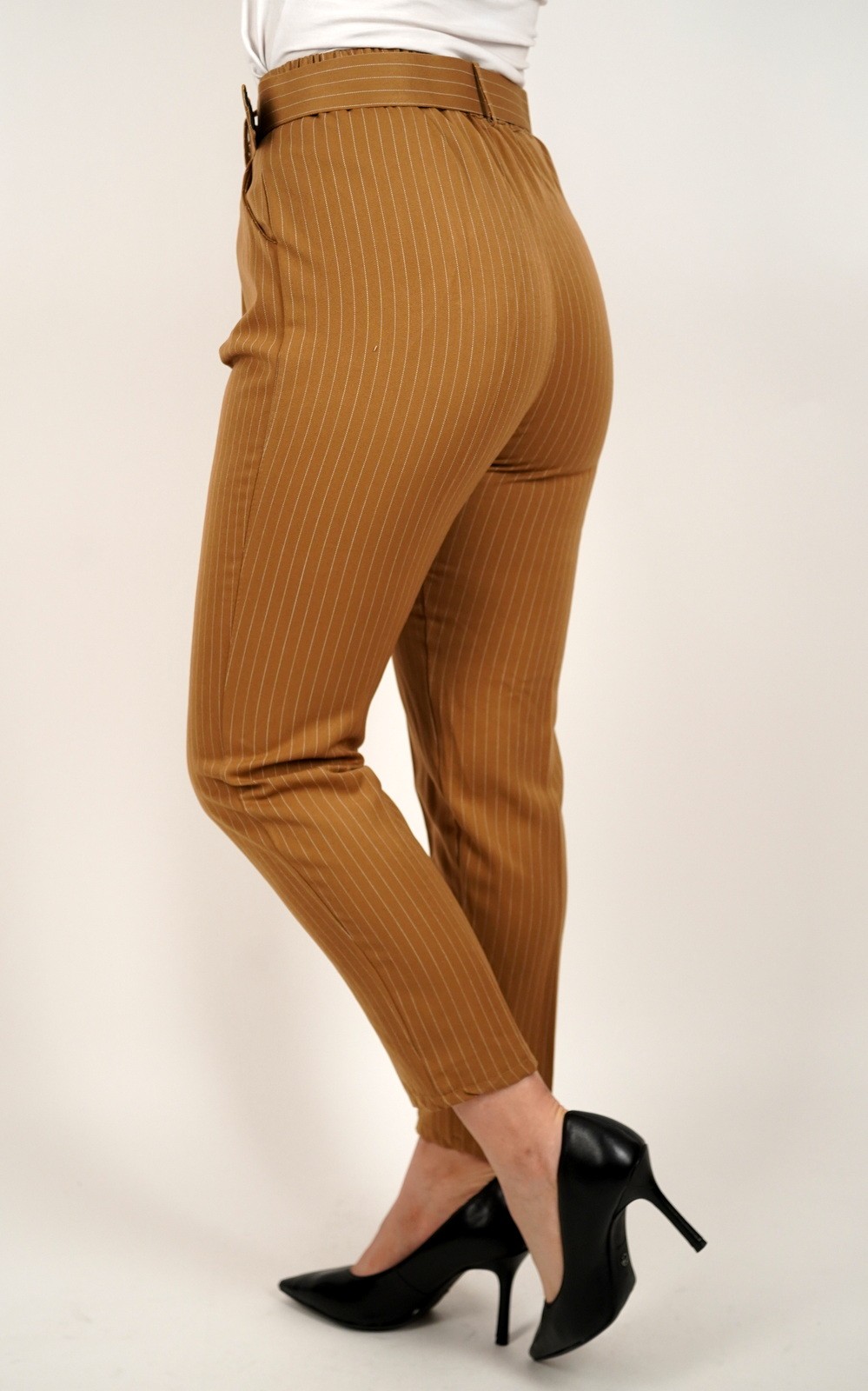 Ženske elegantne prugaste hlače visokog struka – presvučeni remen gratis – 10896