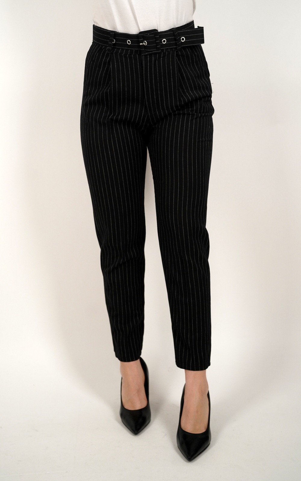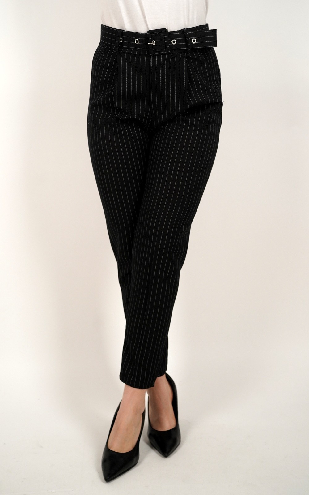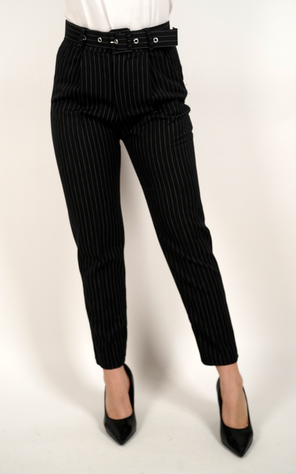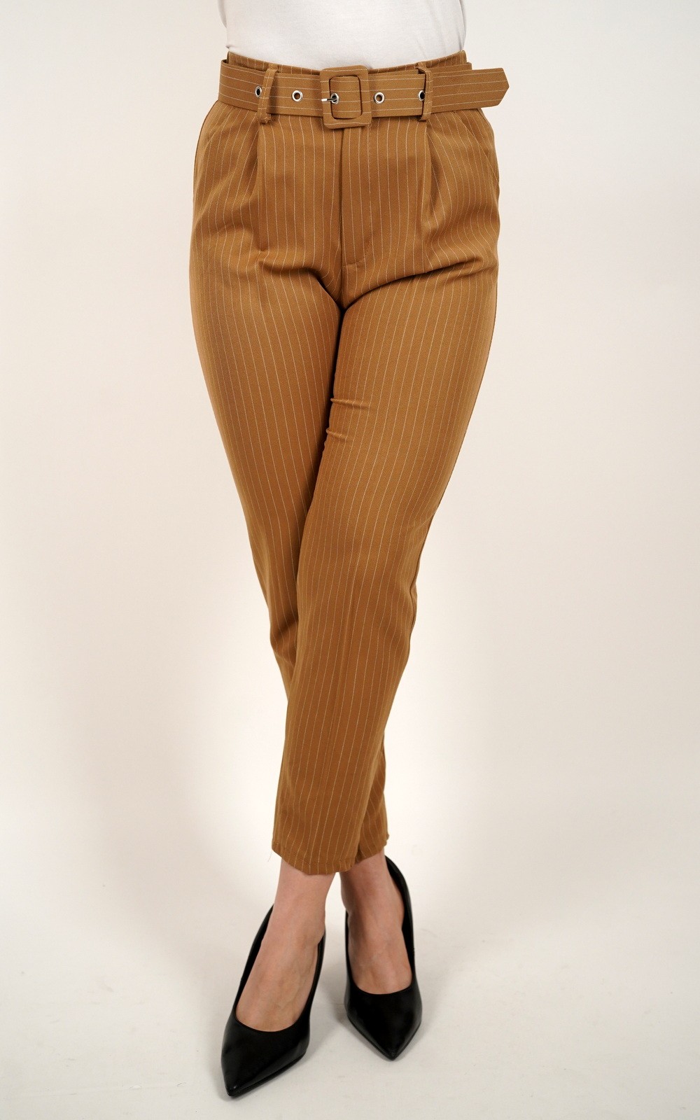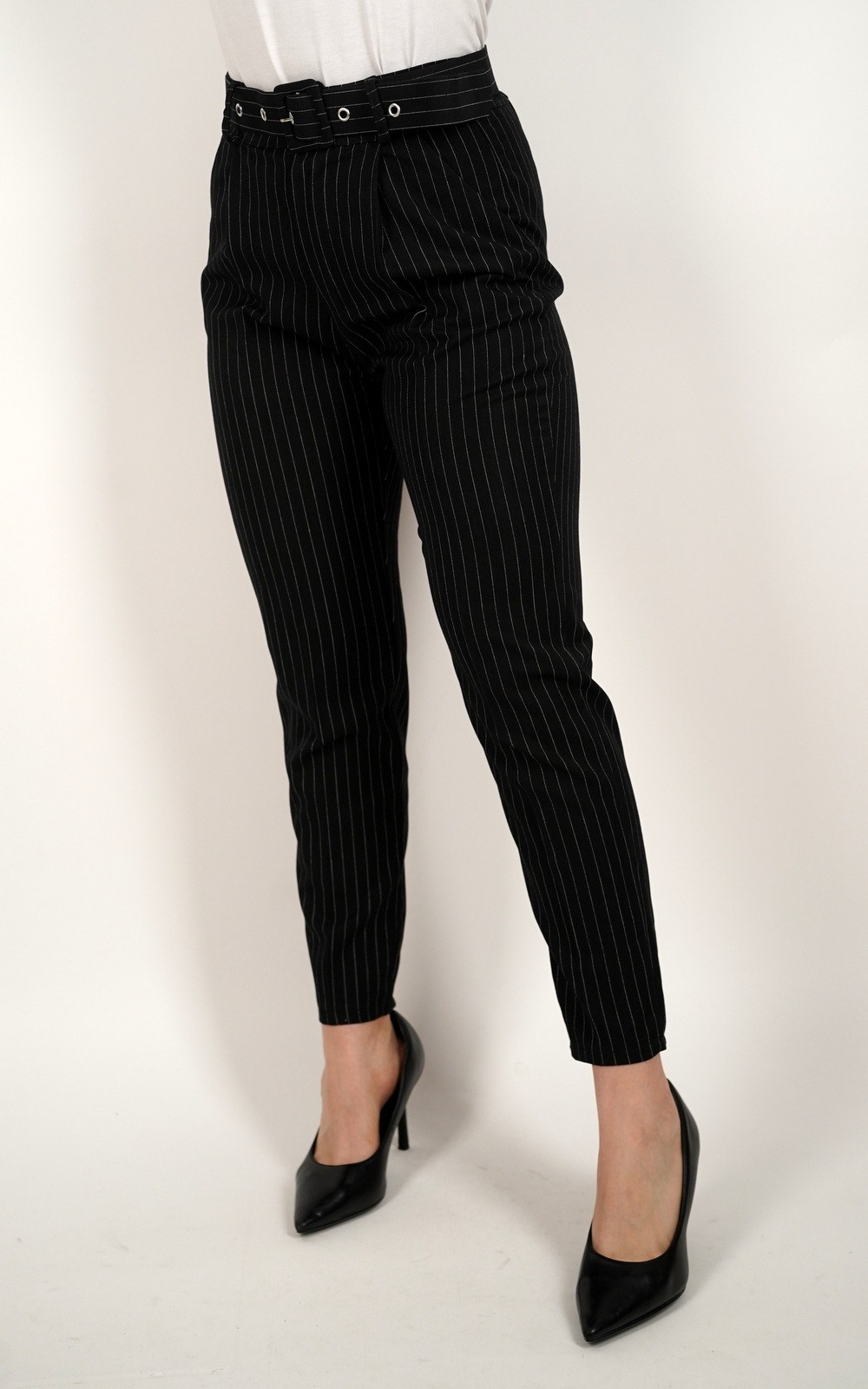 Ženske elegantne prugaste hlače visokog struka – presvučeni remen gratis – 10896