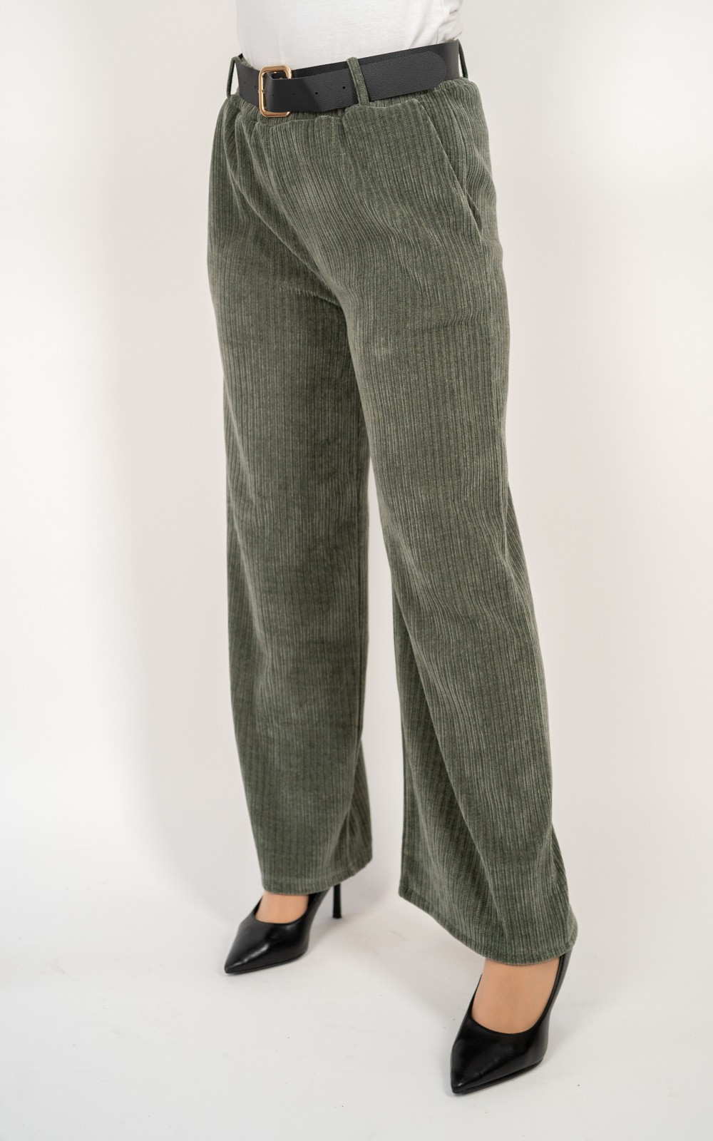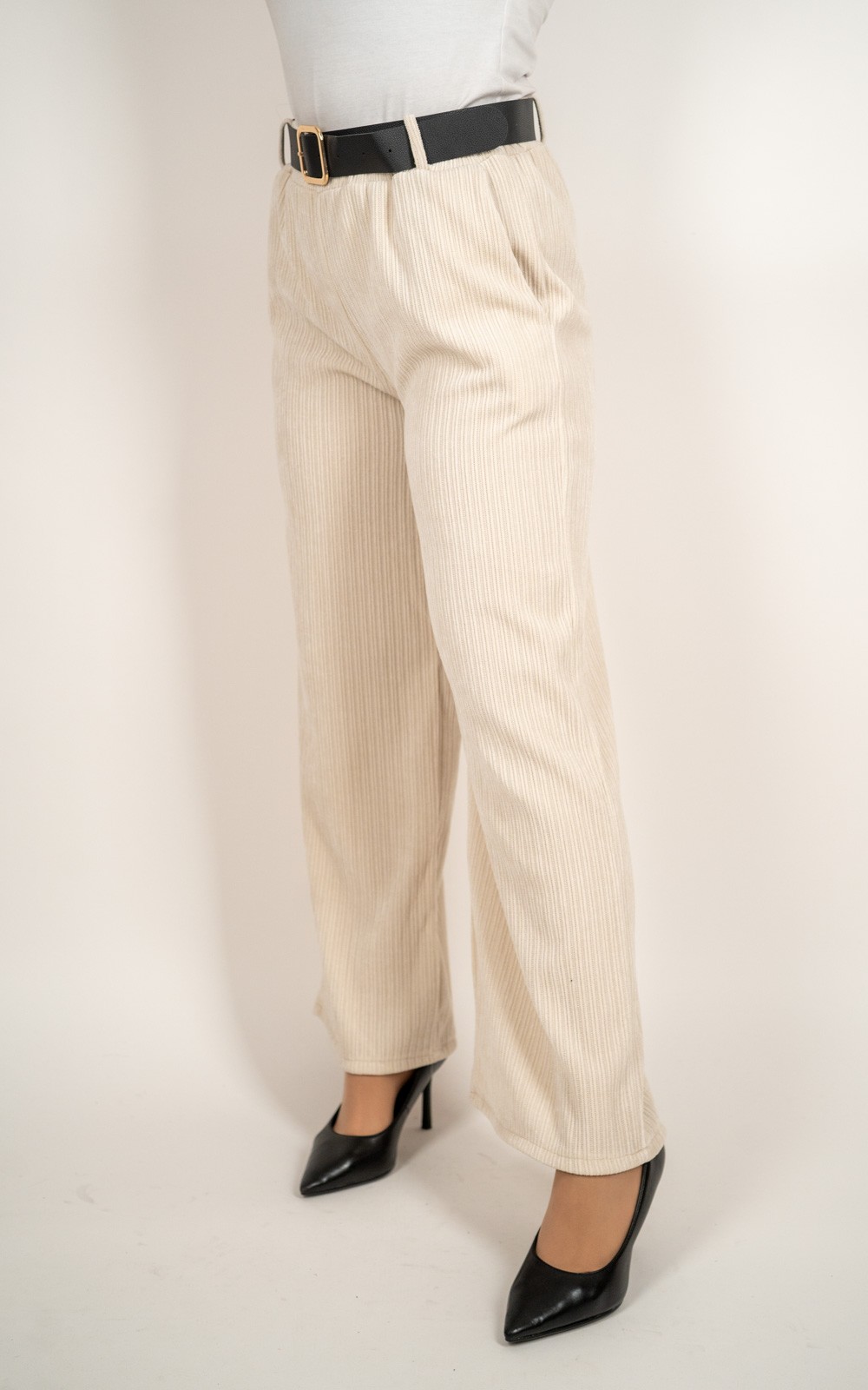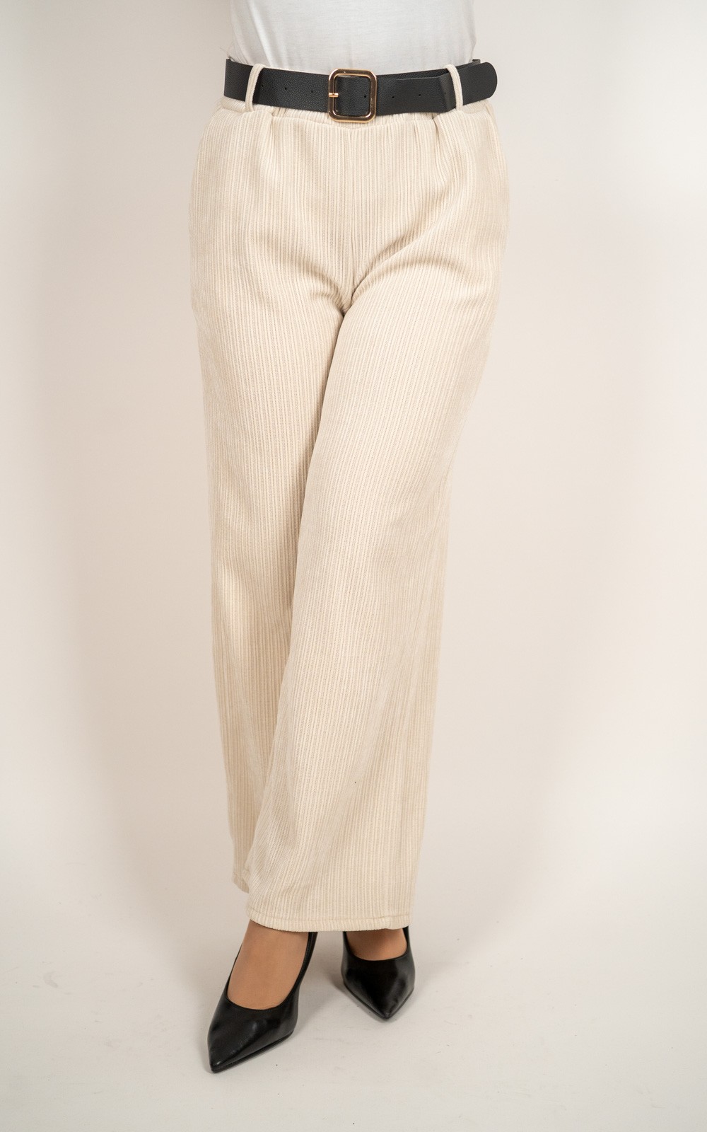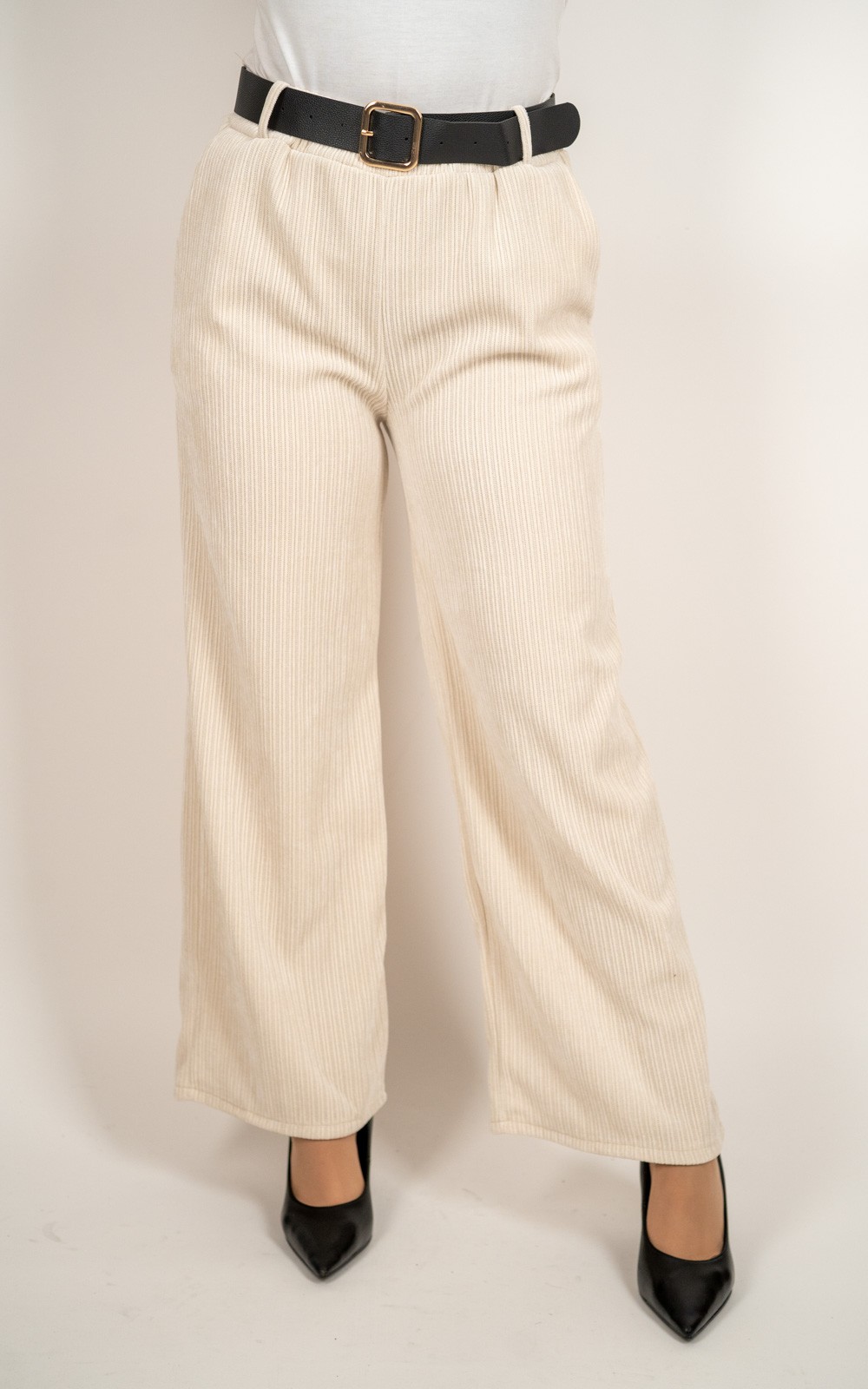 Ženske hlače od rebrastog baršuna ravnog kroja – remen gratis – 51197