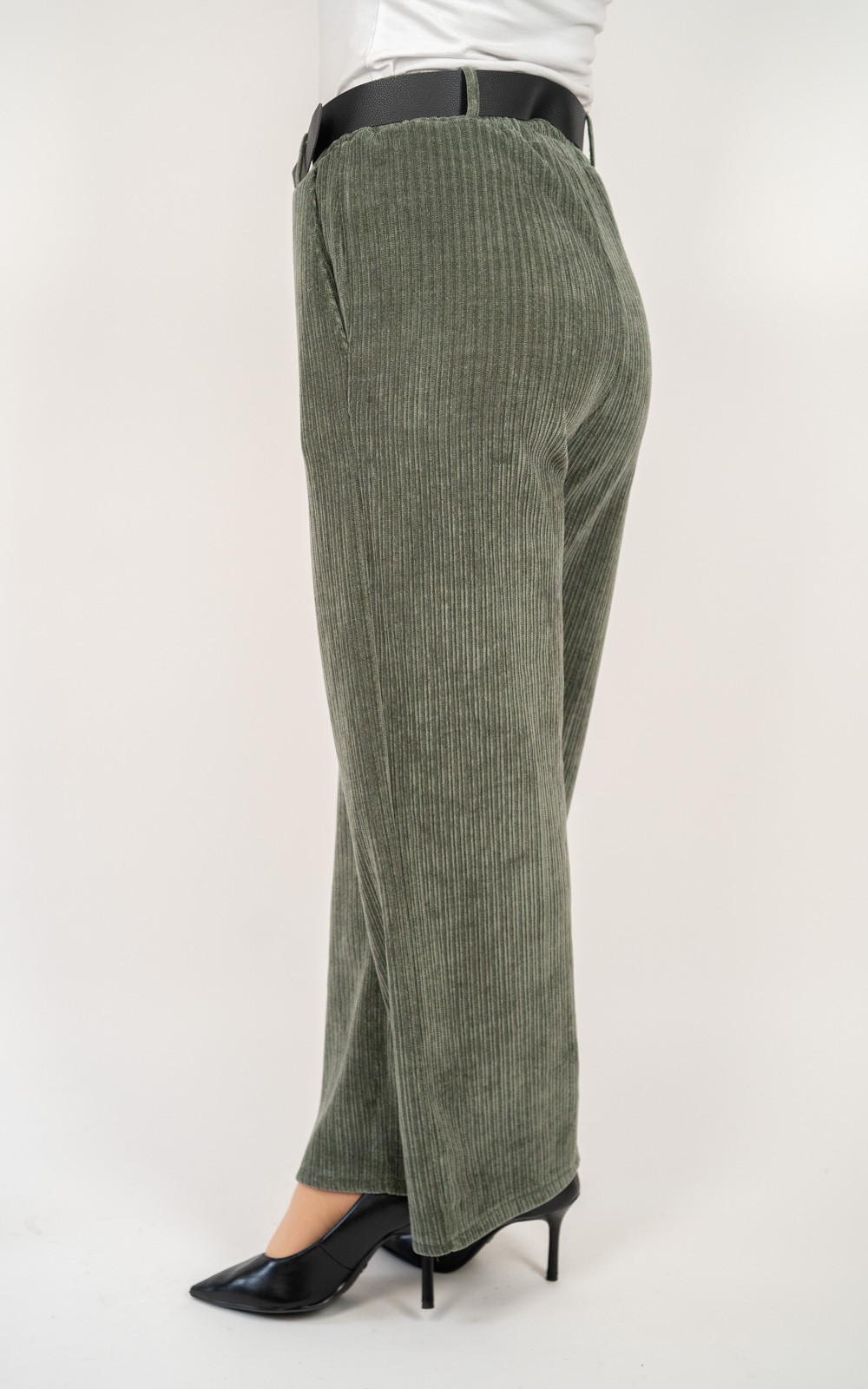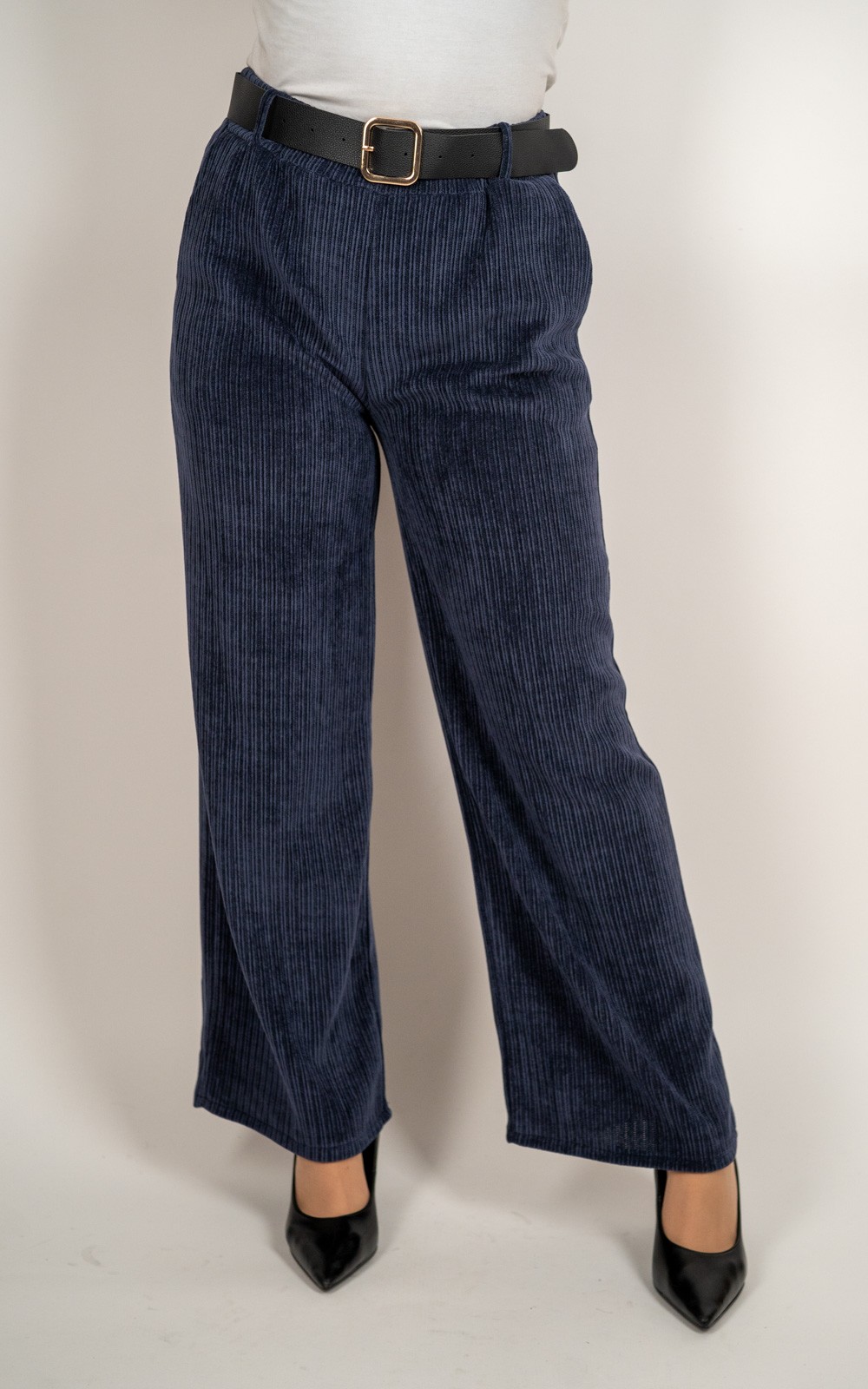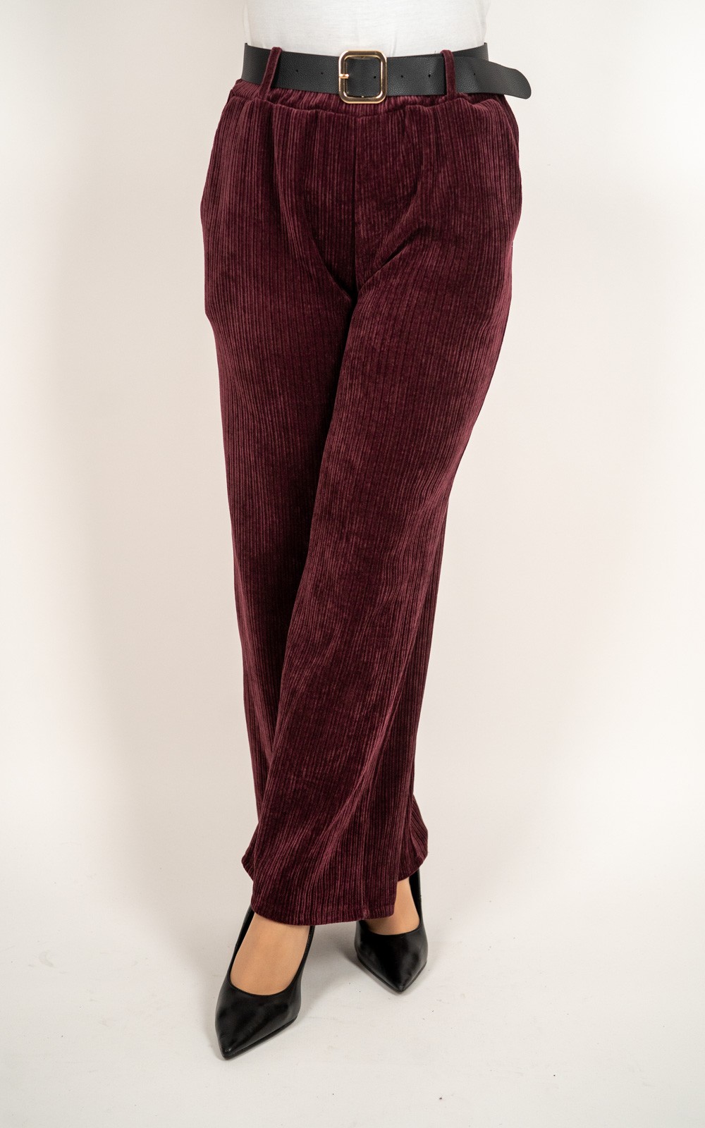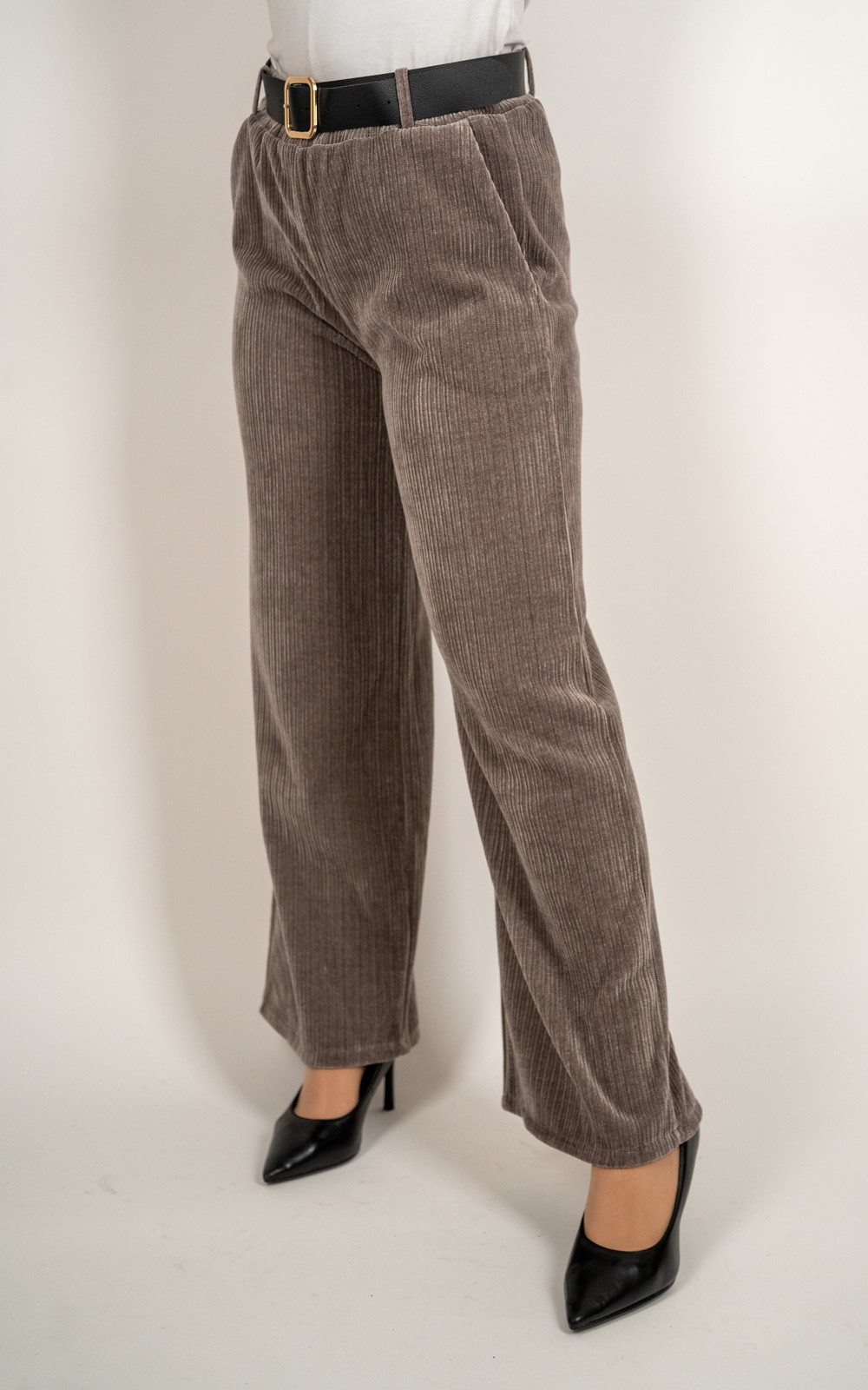 Ženske hlače od rebrastog baršuna ravnog kroja – remen gratis – 51197