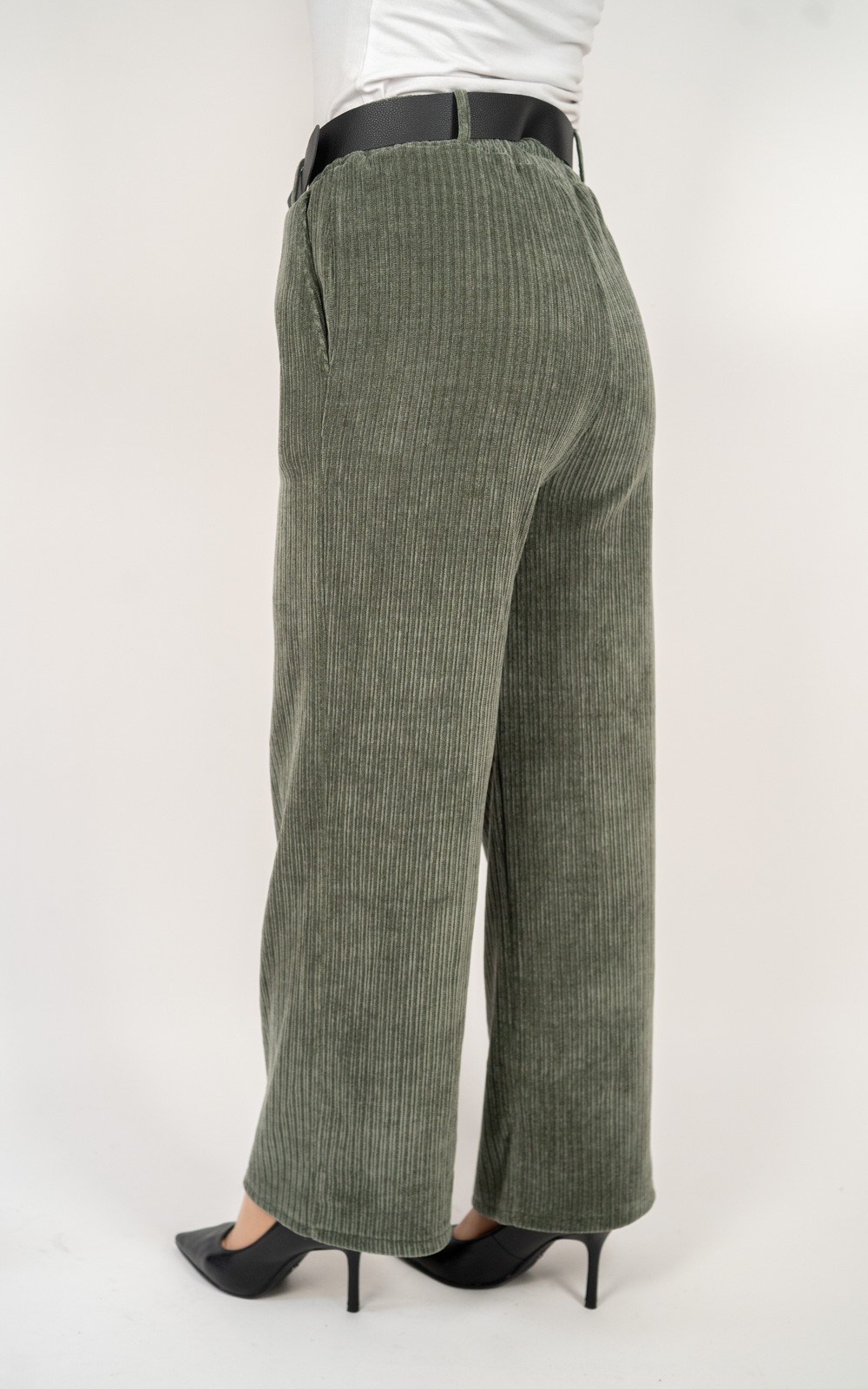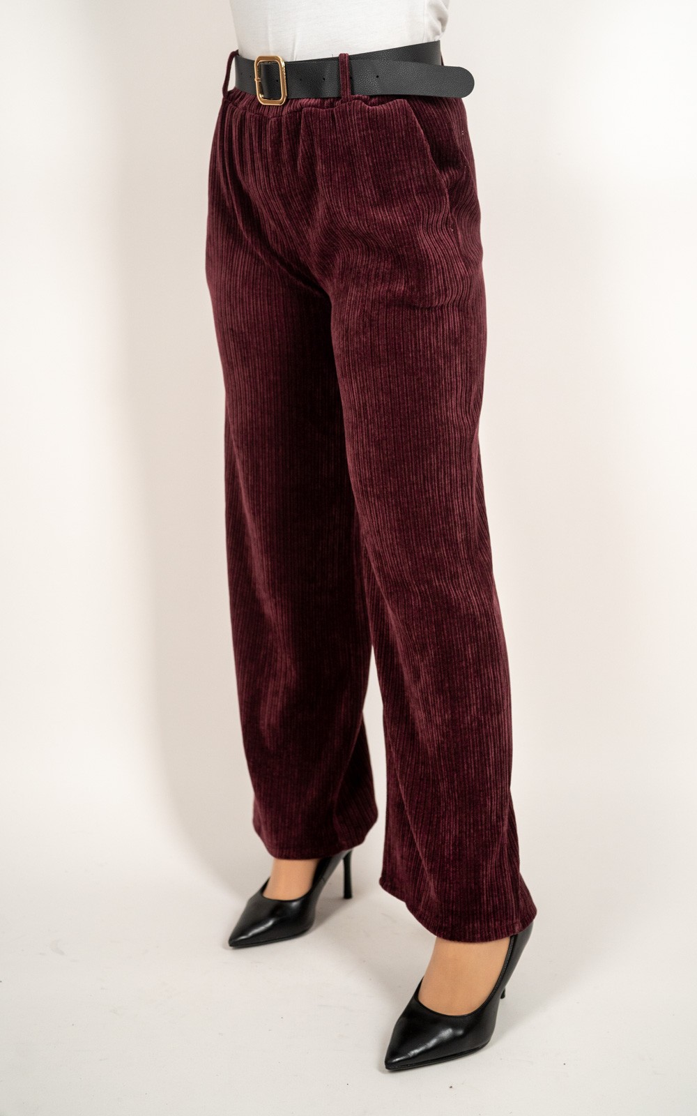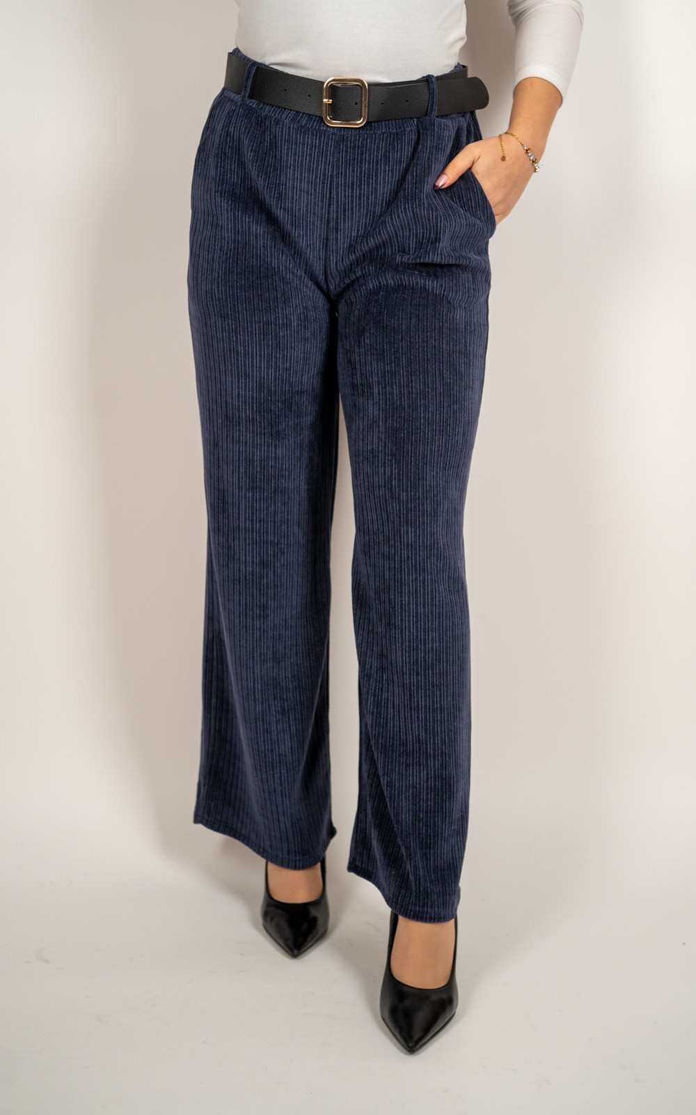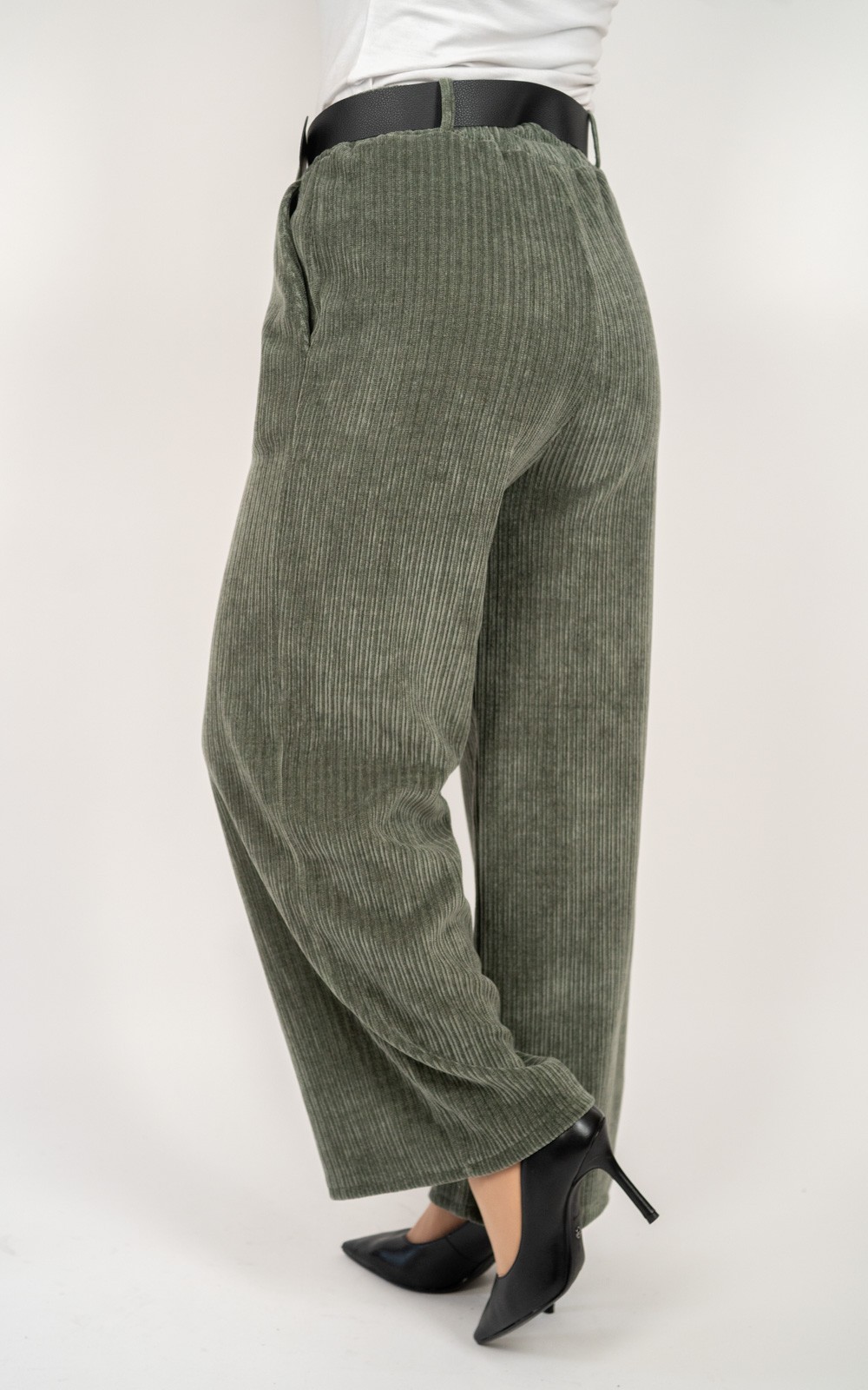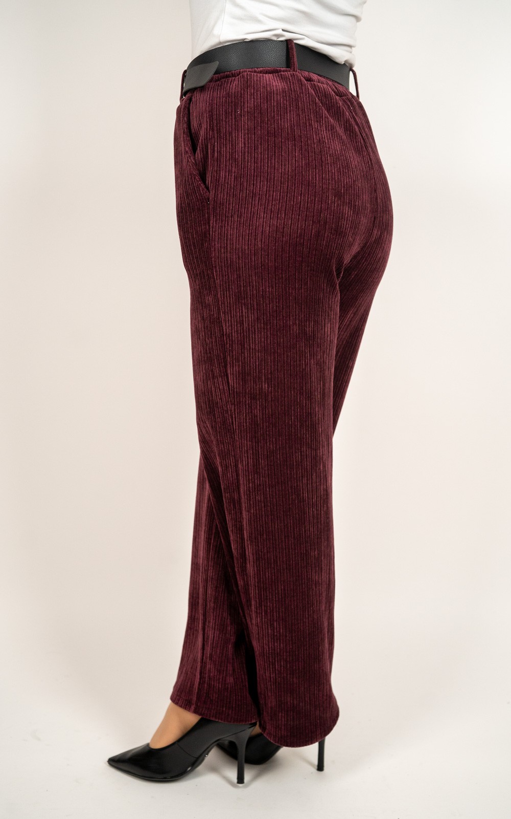 Ženske hlače od rebrastog baršuna ravnog kroja – remen gratis – 51197