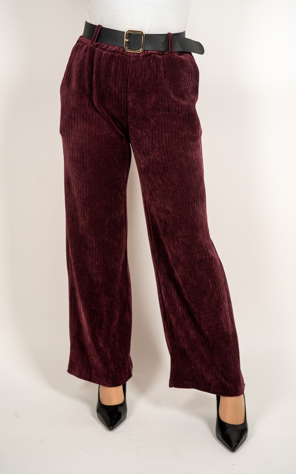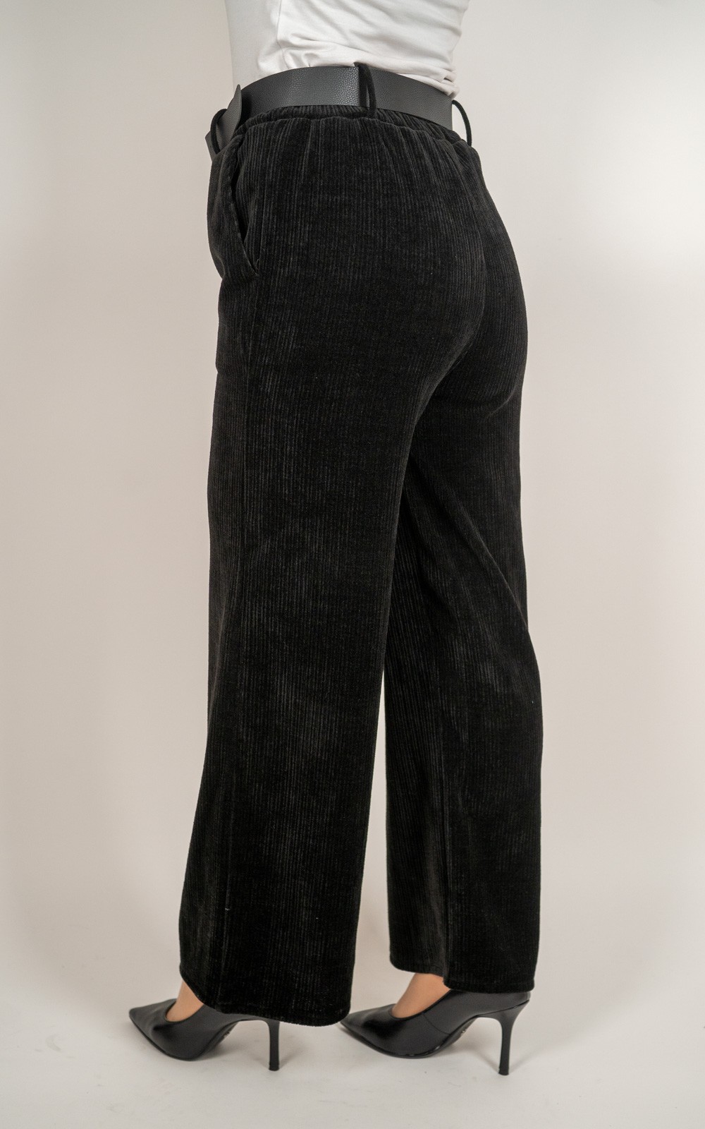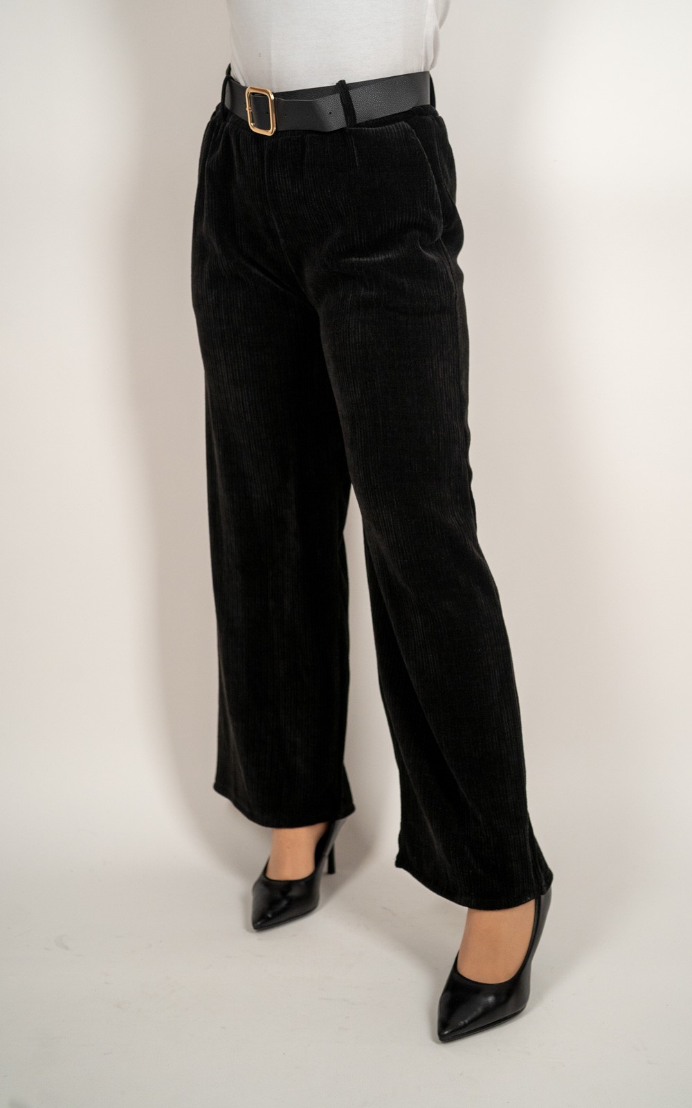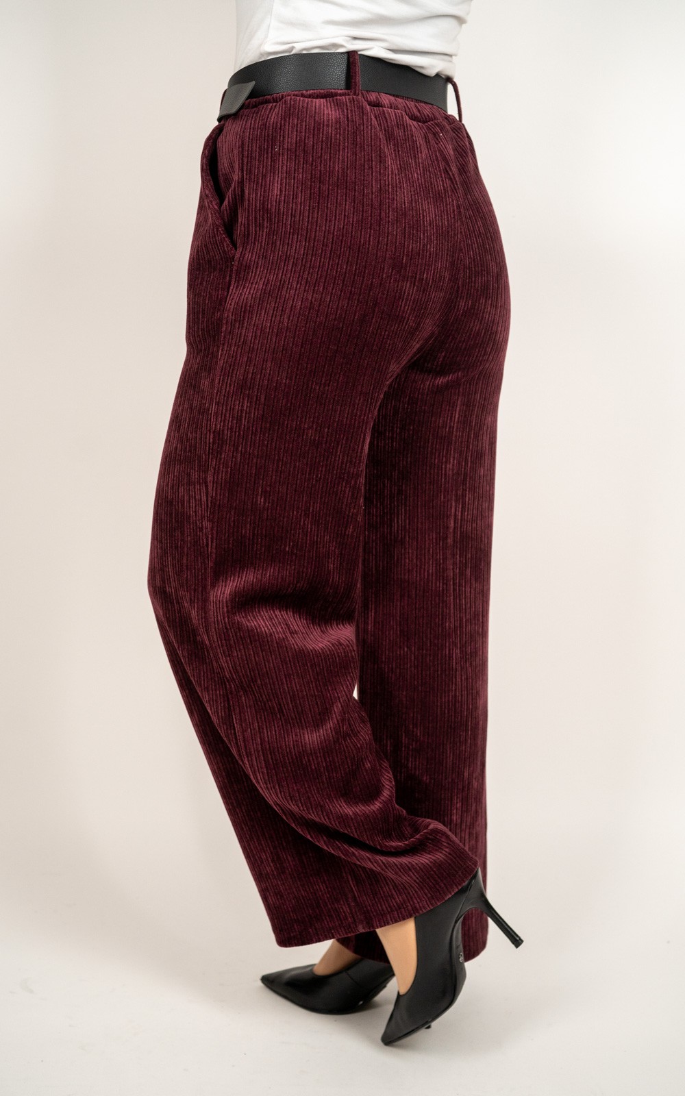 Ženske hlače od rebrastog baršuna ravnog kroja – remen gratis – 51197