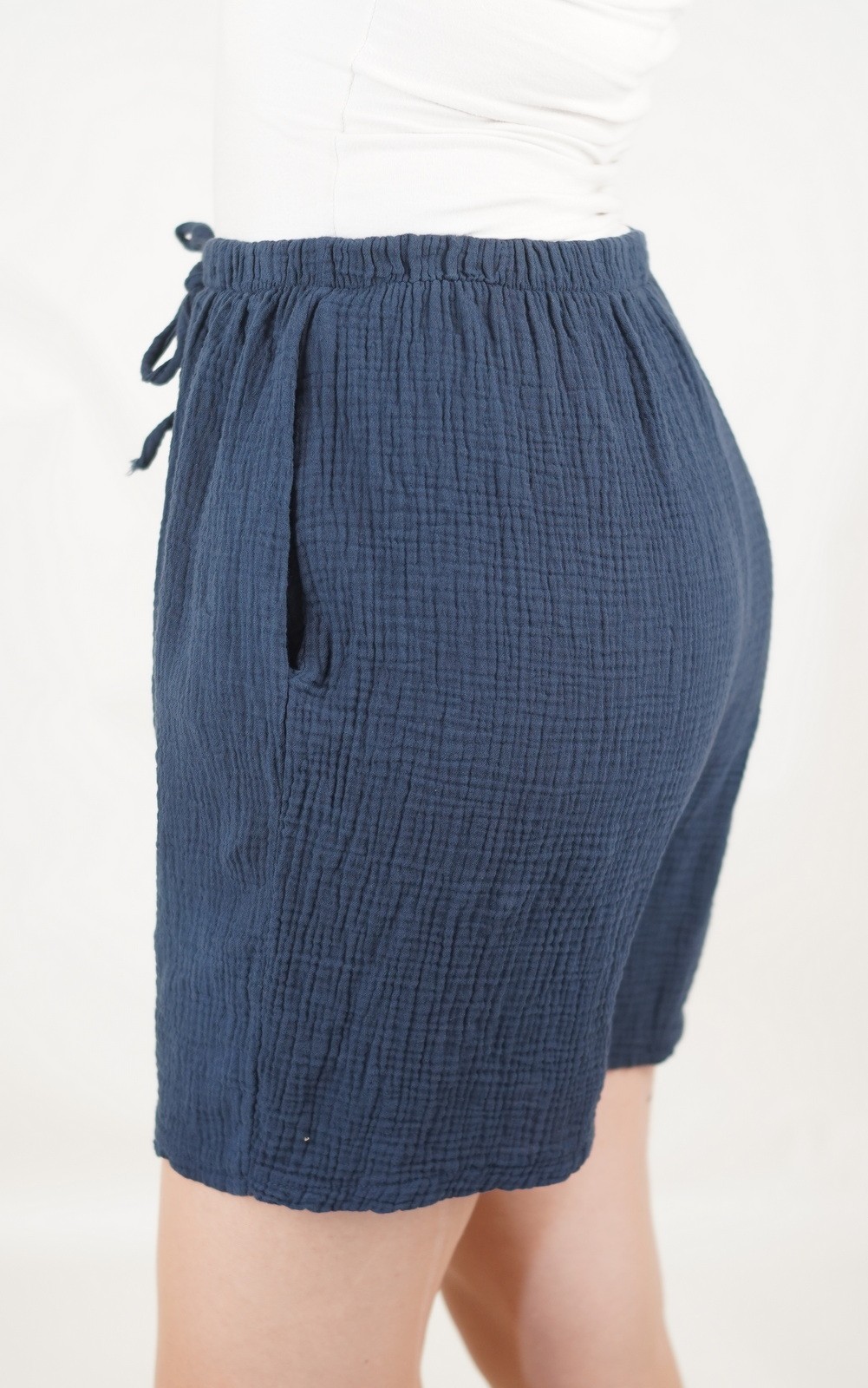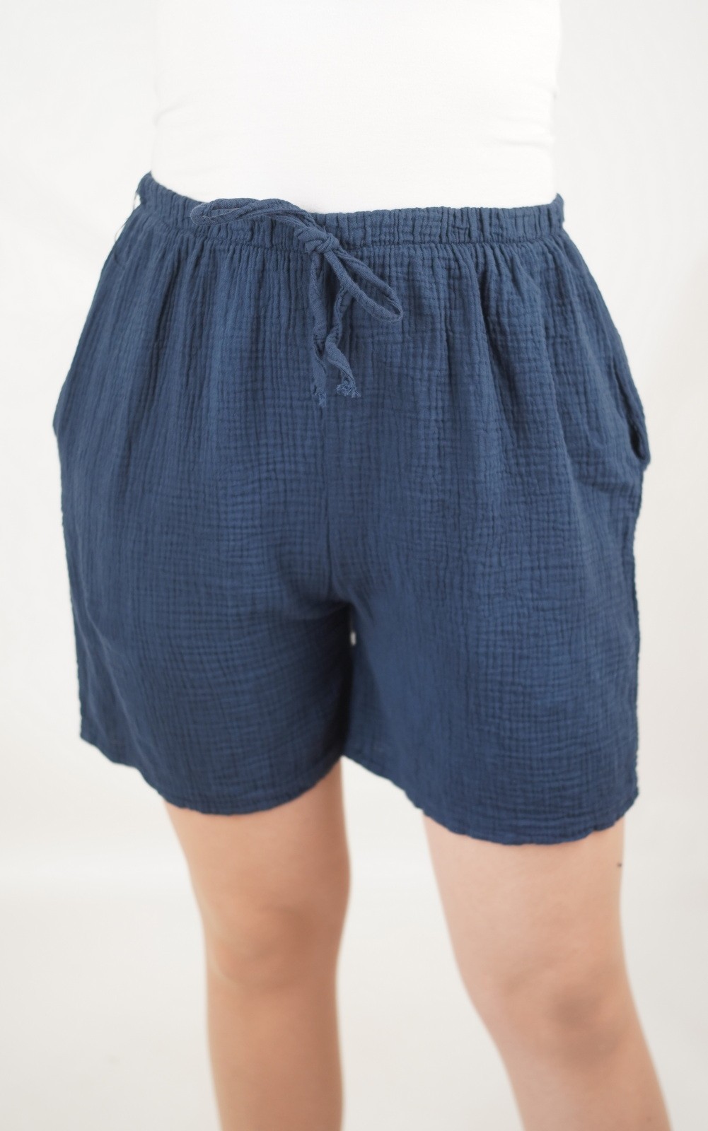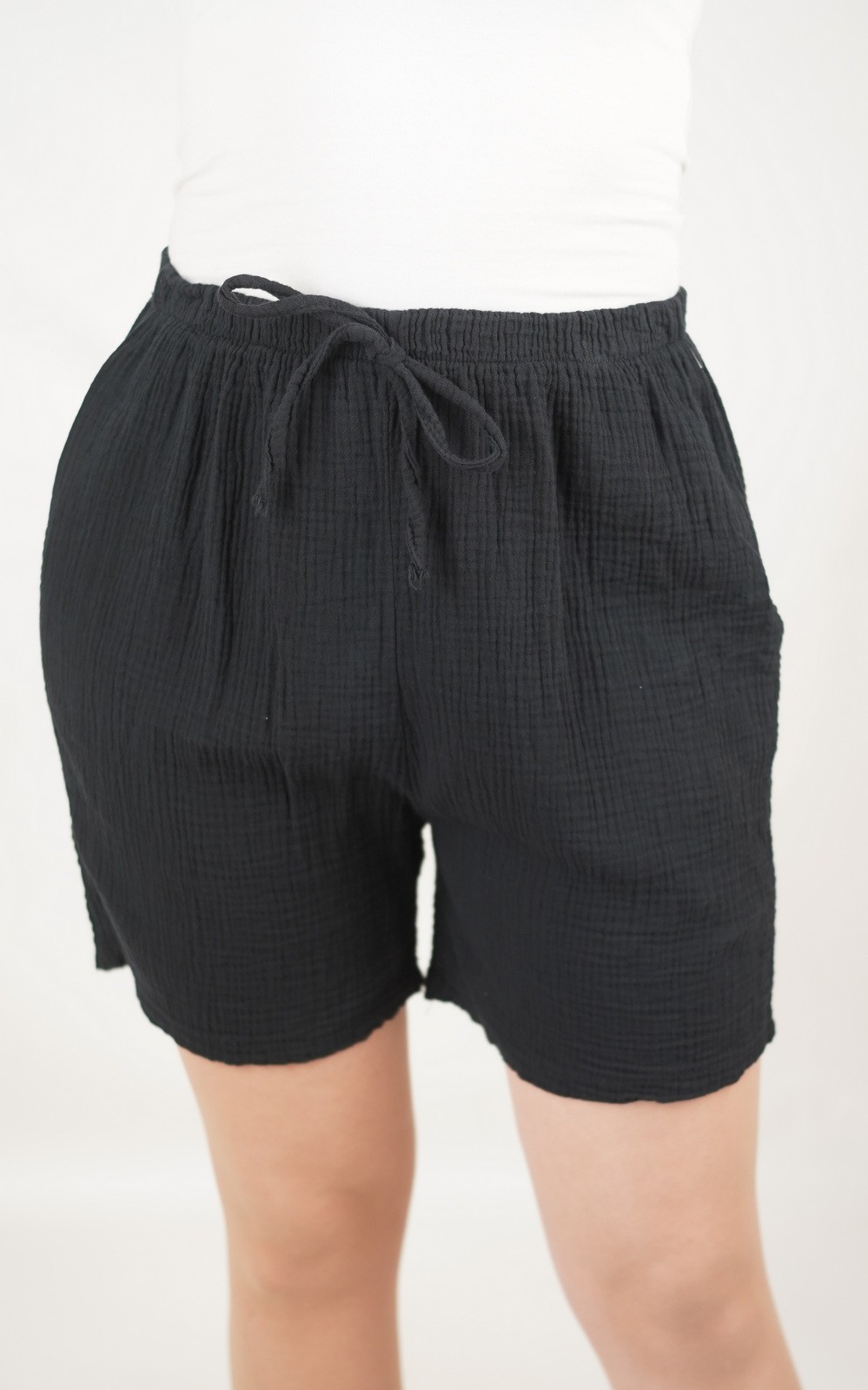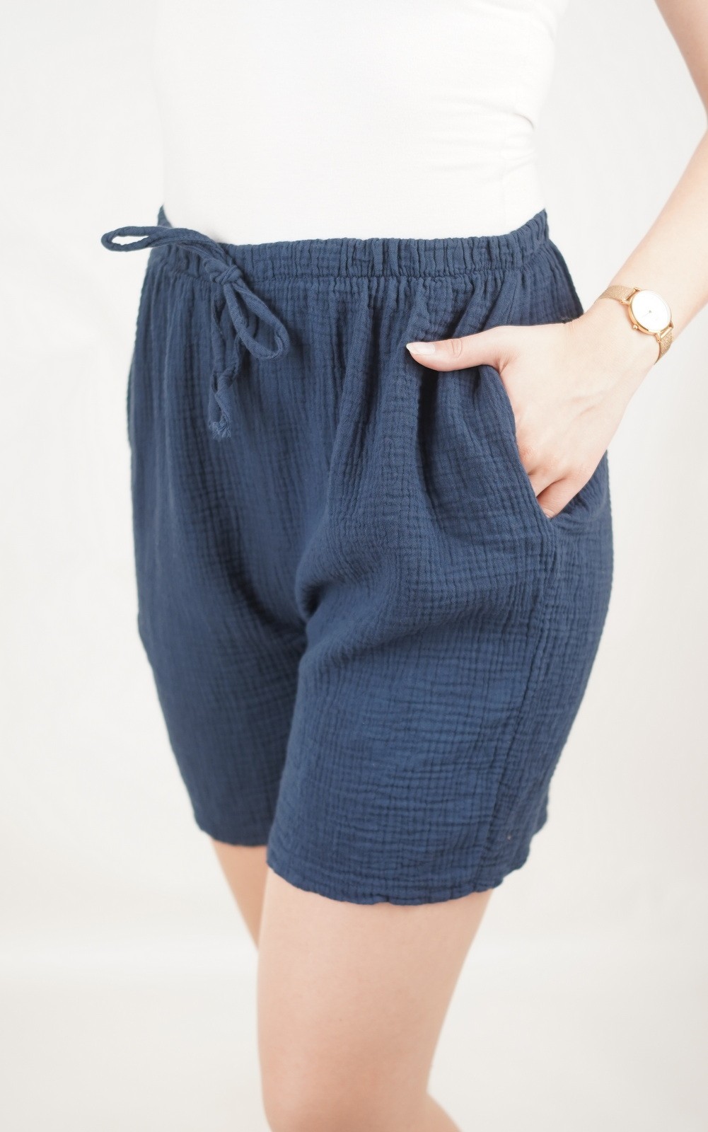 Ženske kratke pamučne hlačice s vezicom i elastičnim pojasom – gaza – 24130