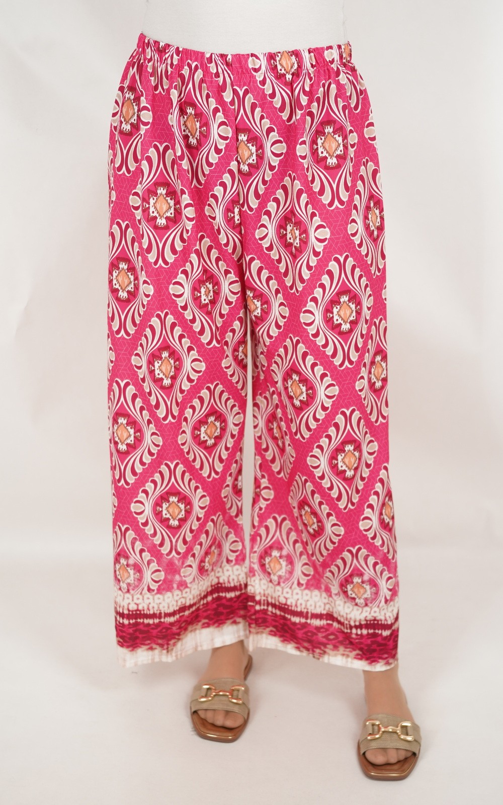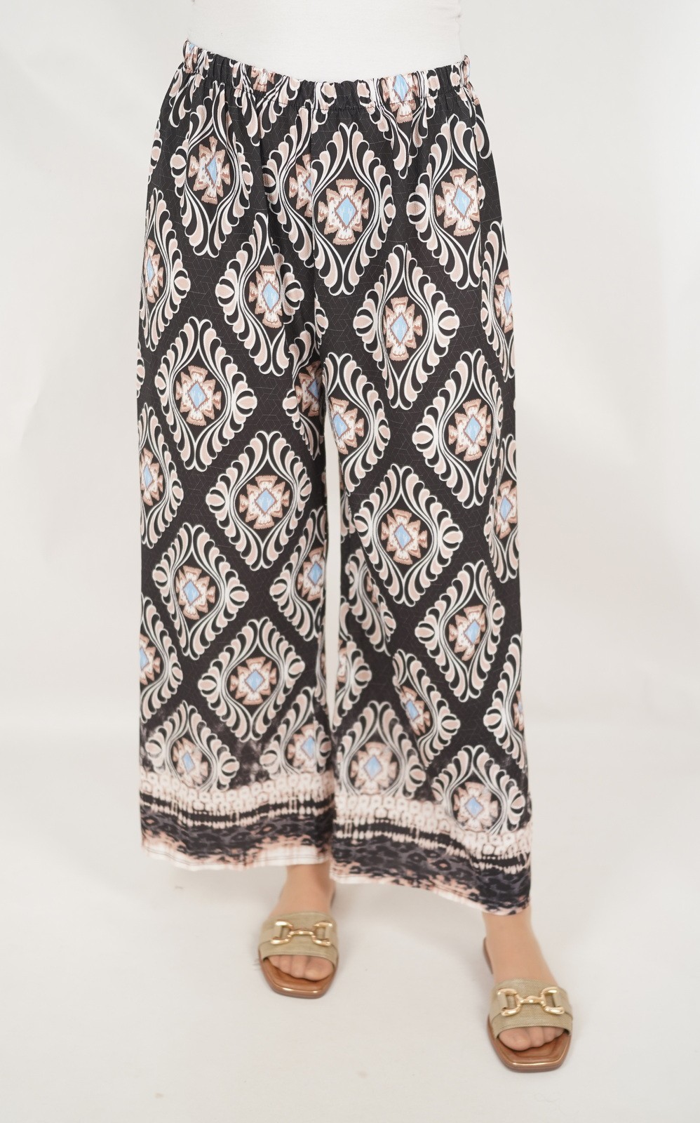 Ženske lepršave široke hlače s printom i elastičnim pojasom – 2263