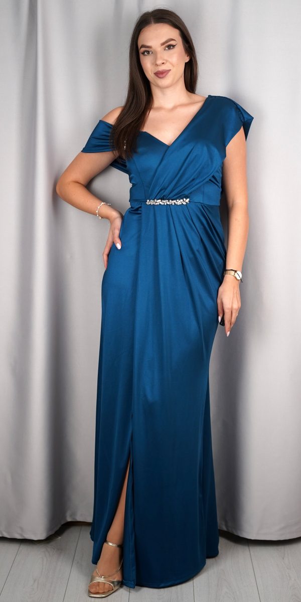 kolekcijaŽenska duga svečana haljina s otvorenim ramenima i ukrasnim pojasom – 45011435