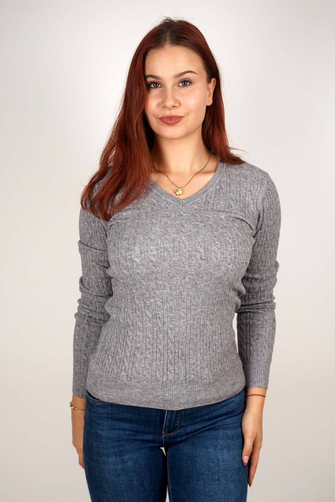 kolekcija10% POPUSTA, BOŽIĆNI POPUSTI, Izdvojeno, Majice, Majice fino meko pletivo, Nova kolekcija, Pletene majice, Pletivo, ŽeneŽenska pletena majica s V-izrezom i uzorkom upletenih linija – u veličinama – N30106