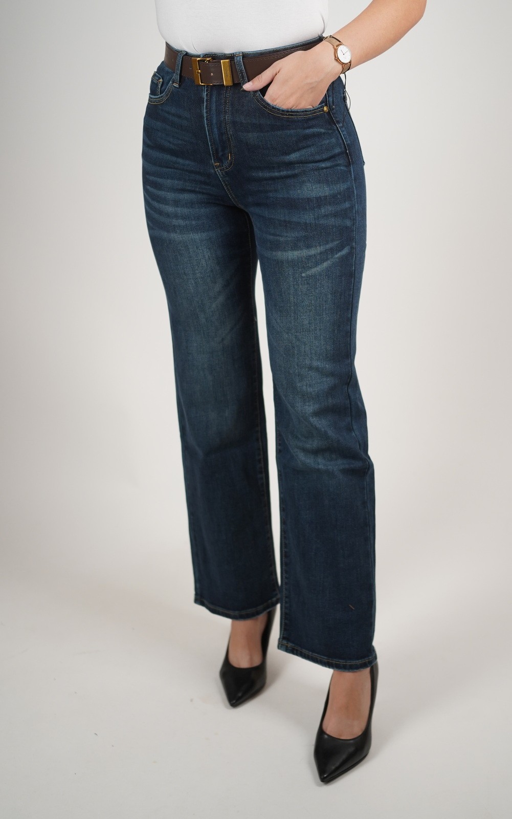 Ženske traperice ravnog kroja s visokim strukom i efektom blagog ispranog trapera donose savršen spoj klasike i modernog stila. Ravne nogavice pružaju udobnost i ležeran izgled, dok visoki struk naglašava figuru i pruža dodatnu udobnost pri nošenju. Efekt blagog ispranog trapera daje im trendi i svestran izgled, zahvaljujući kojem ih možeš nositi u poslovnim, casual ili večernjim kombinacijama. Lako se kombiniraju s elegantnim bluzama, jednostavnim majicama ili toplim puloverima, što ih čini obaveznim komadom u garderobi svake žene koja voli praktičnost i stil.