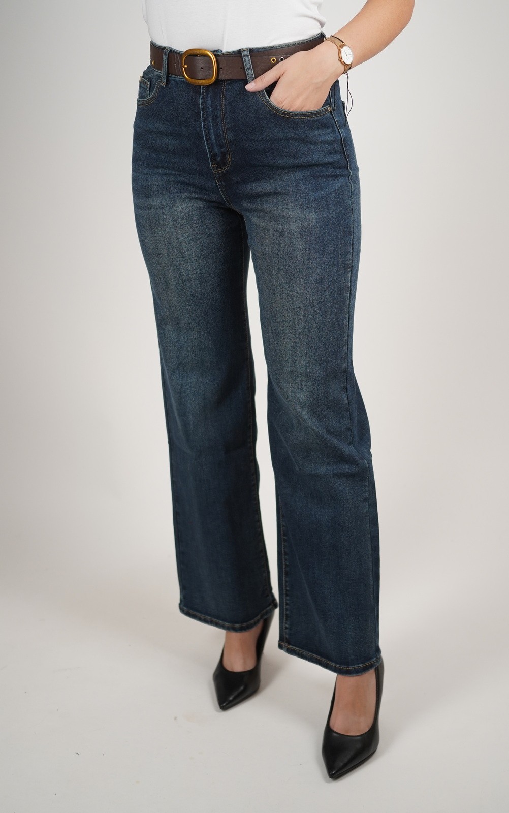Ženske traperice trapez kroja s visokim strukom i blagim efektom ispranog trapera – MQ089H