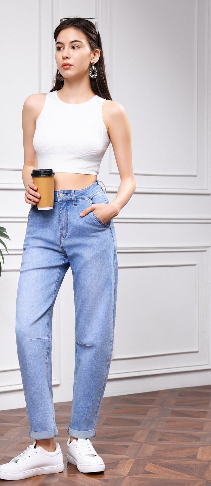 Ženske traperice visokog struka s kosim džepovima – NO:2039