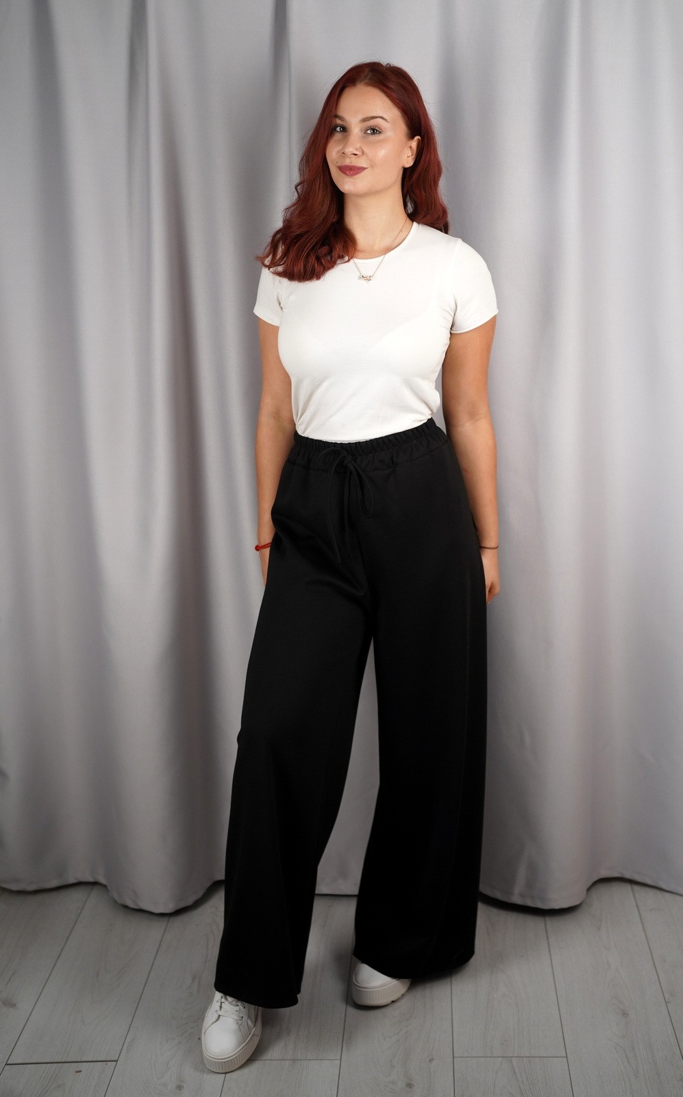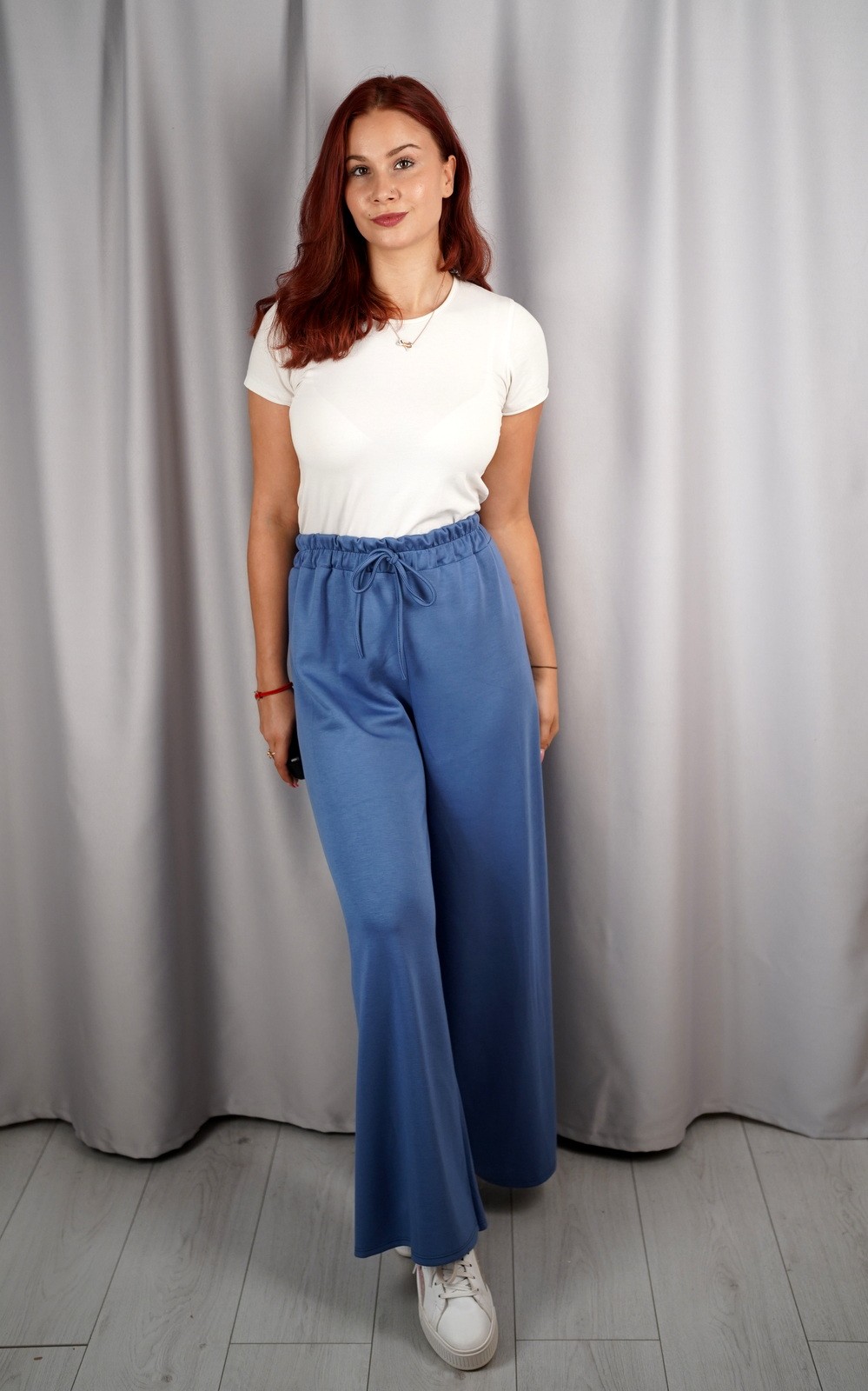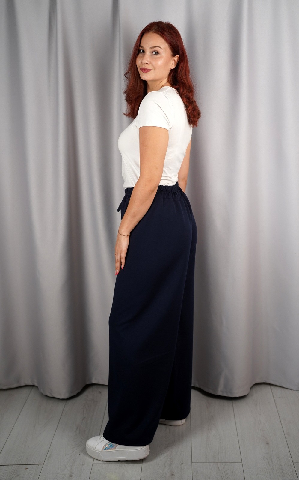 Ženske viskozne široke hlače s vezicom u struku – 240282