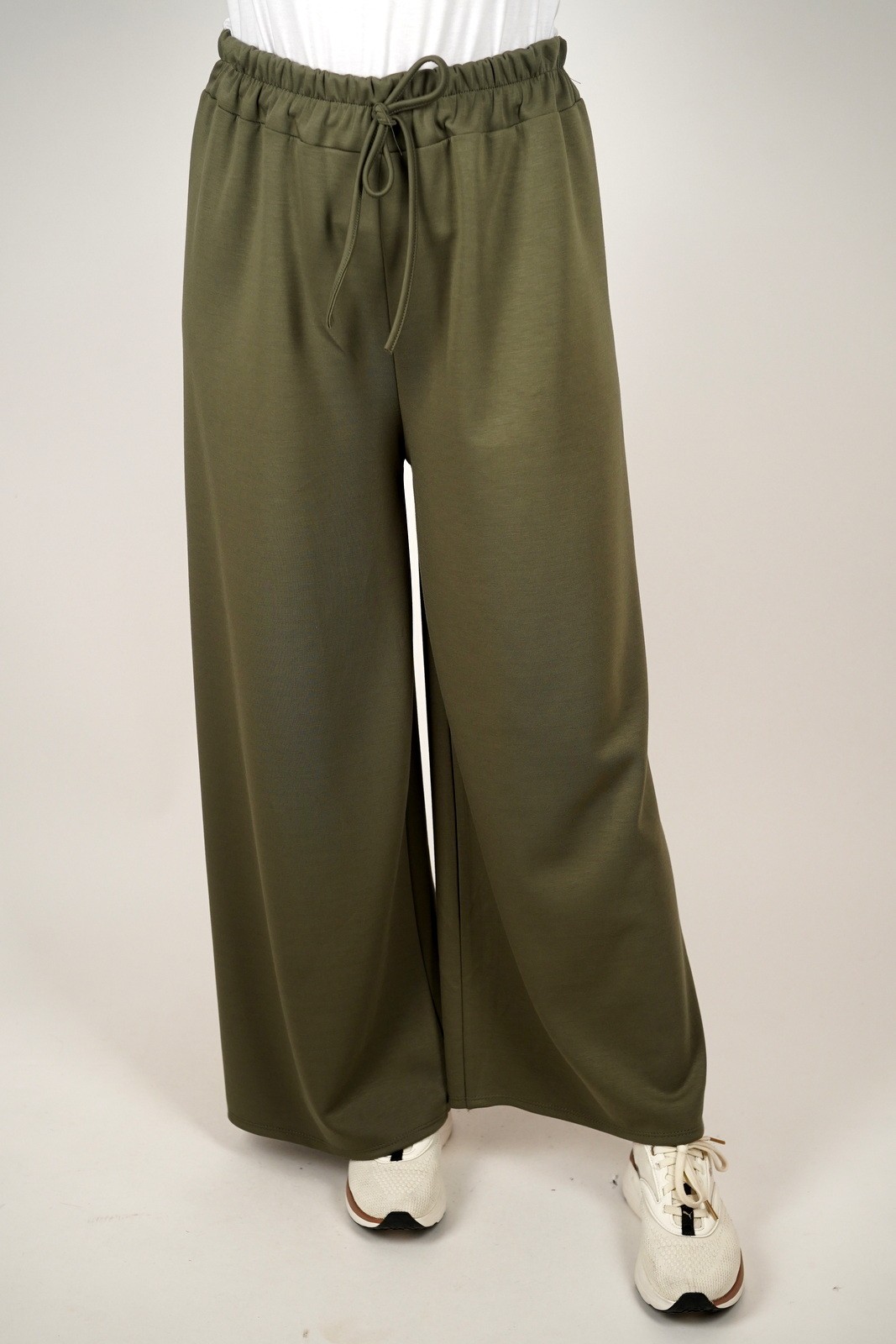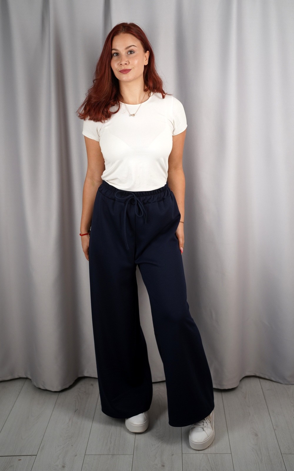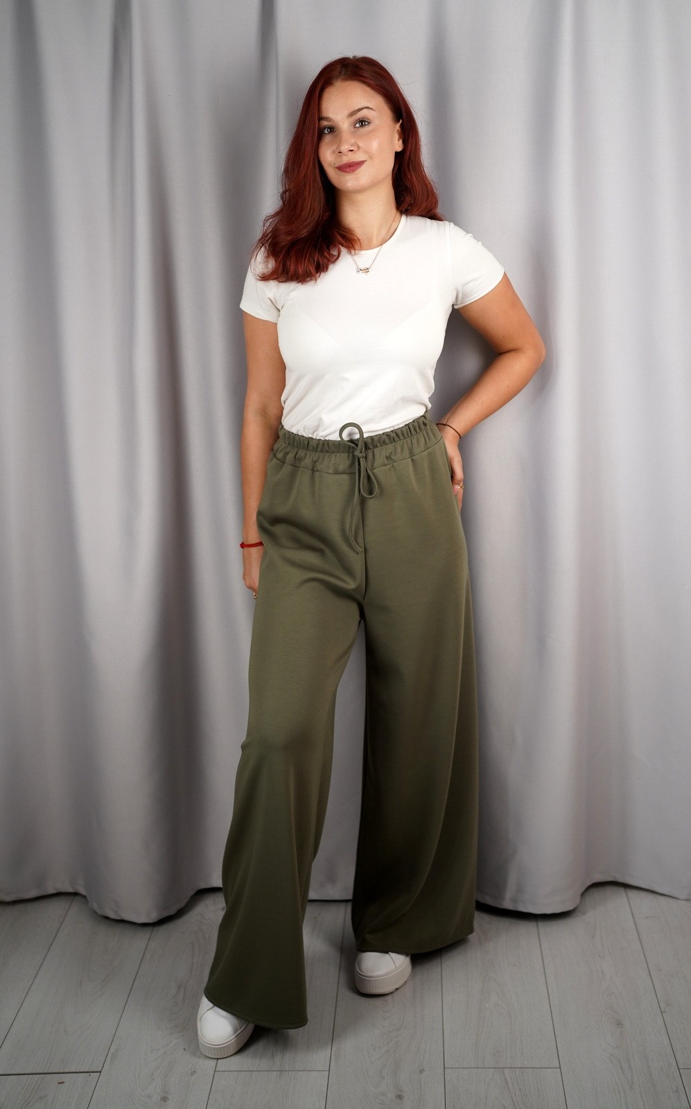 Ženske viskozne široke hlače s vezicom u struku – 240282