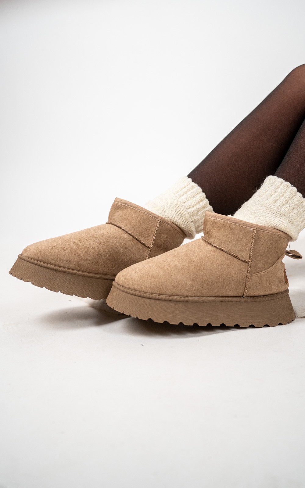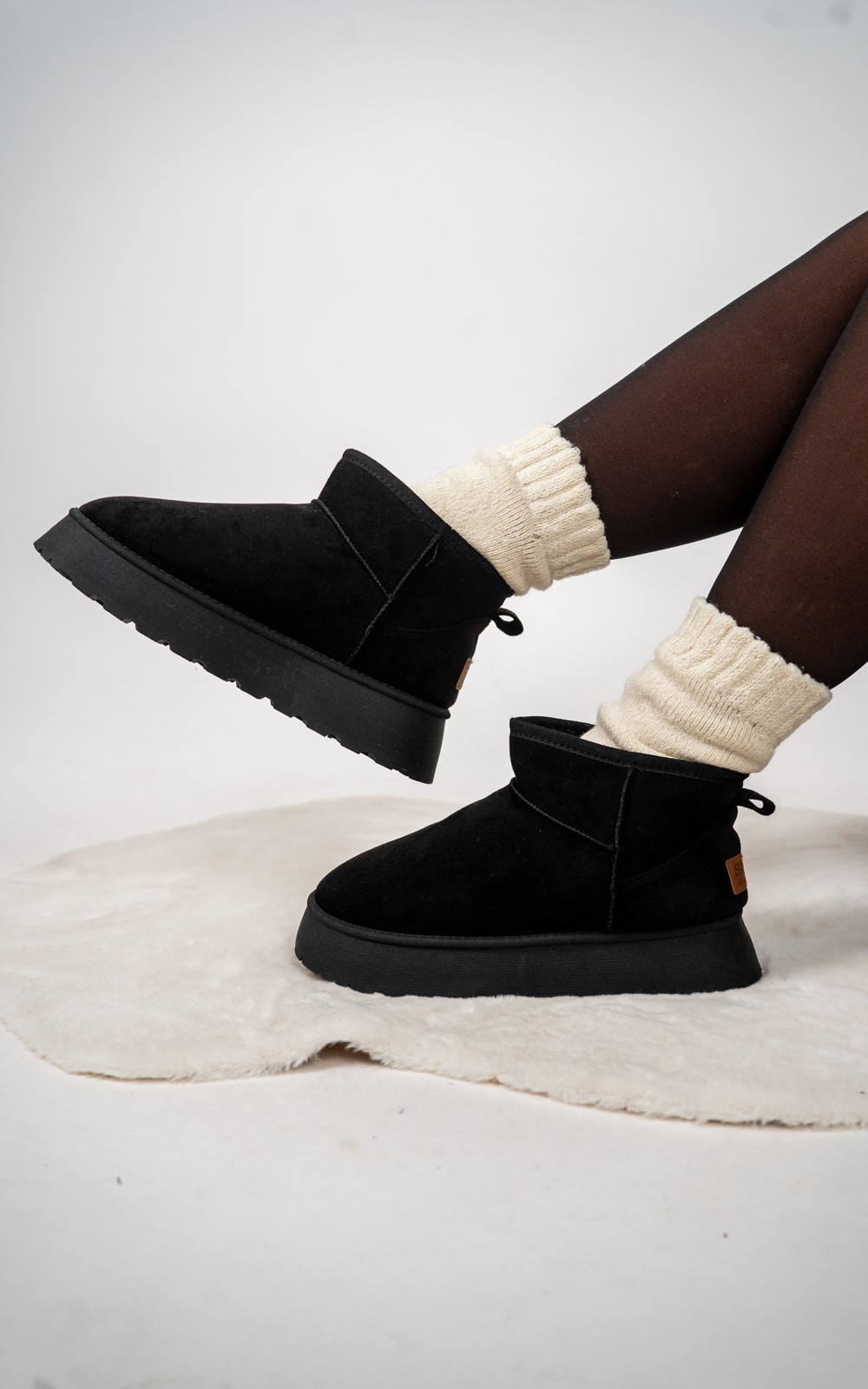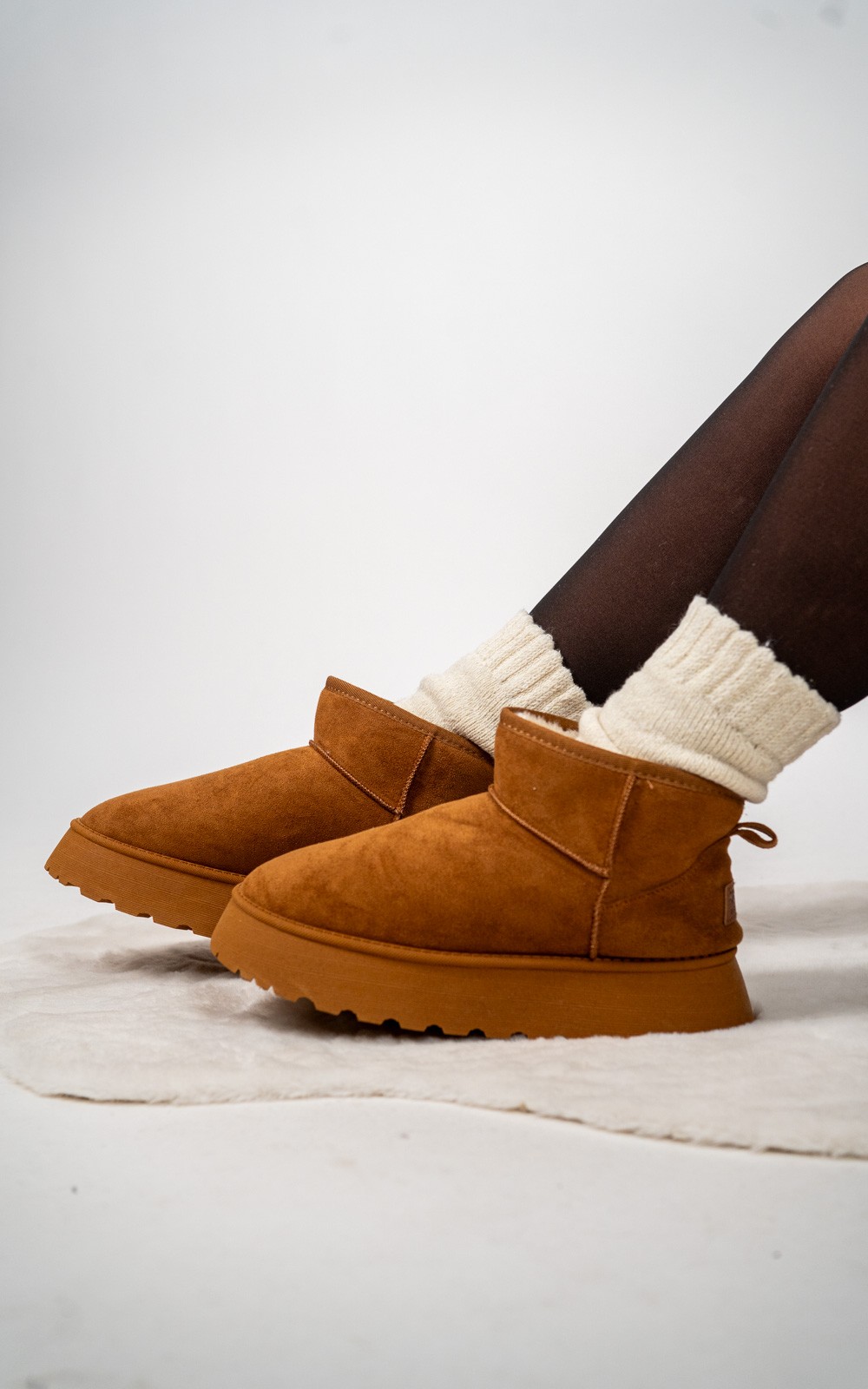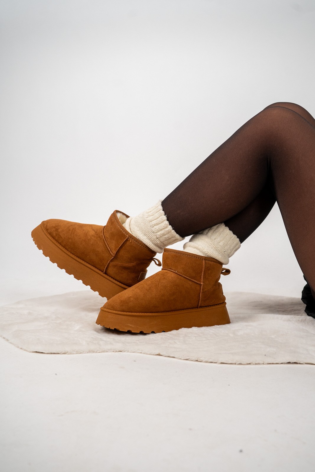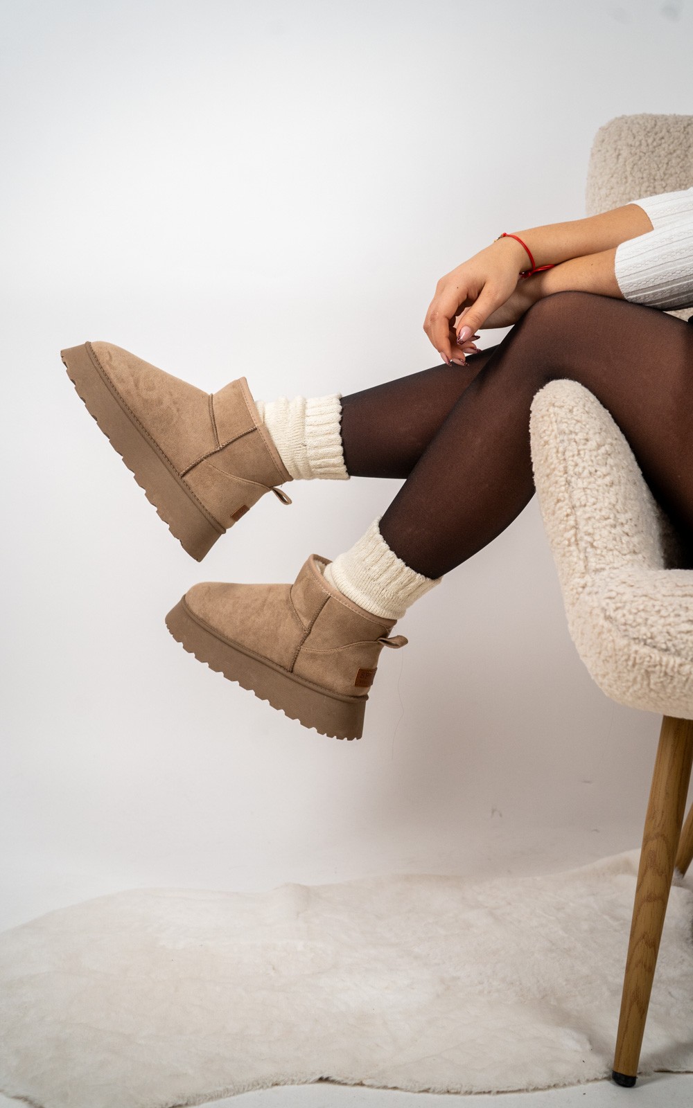 Ženske zimske čizmice s podstavom i ravnim potplatom – 7306