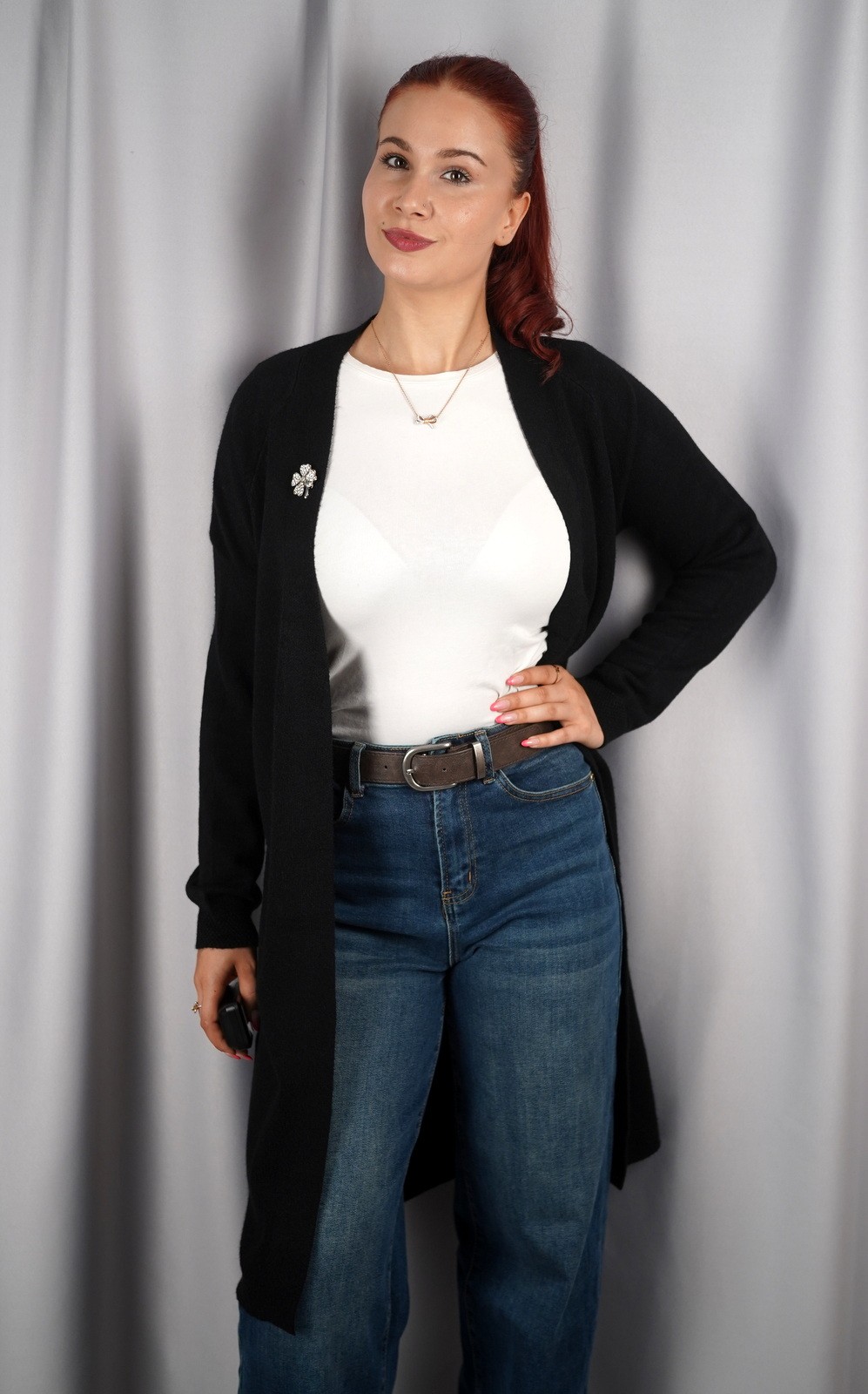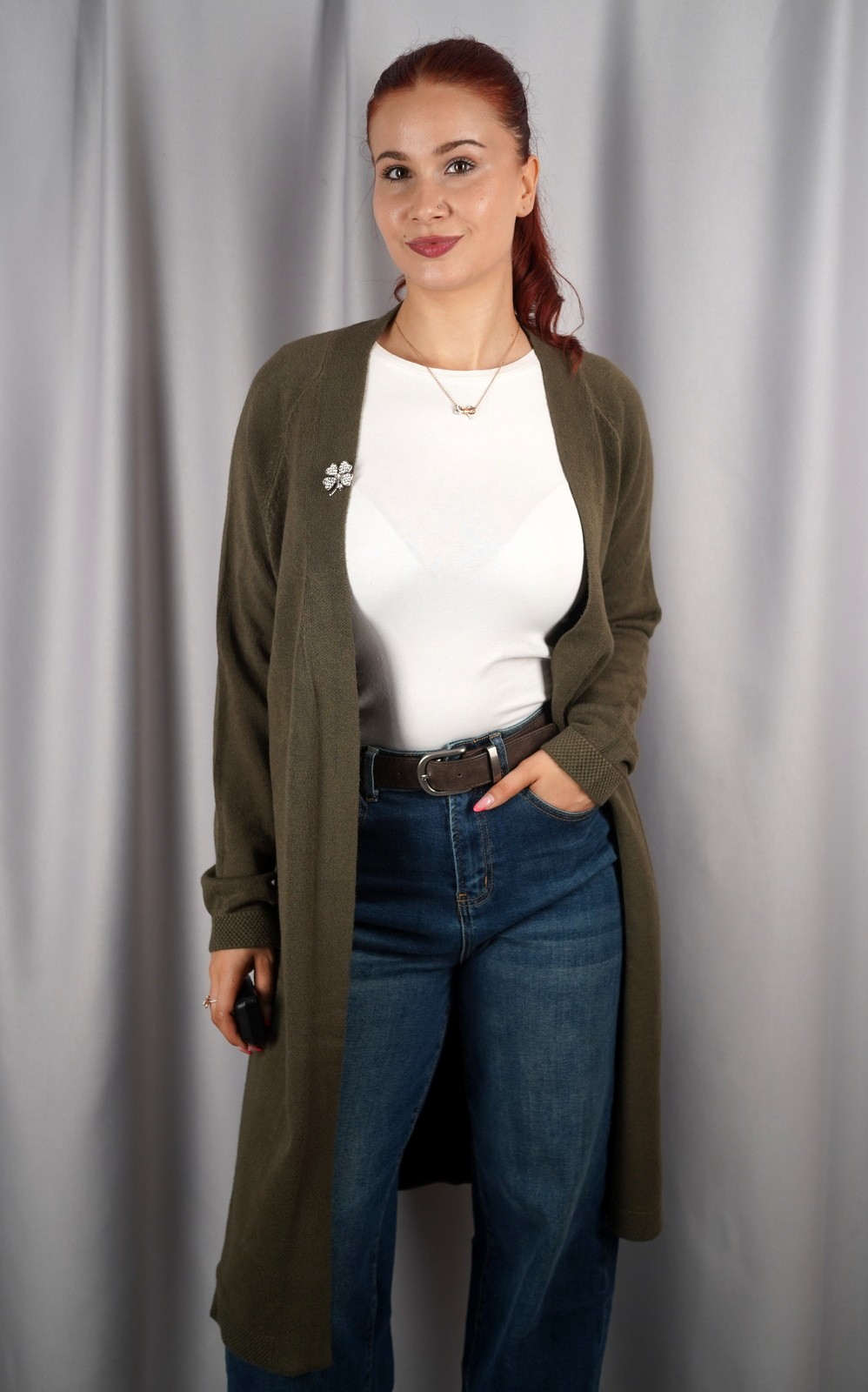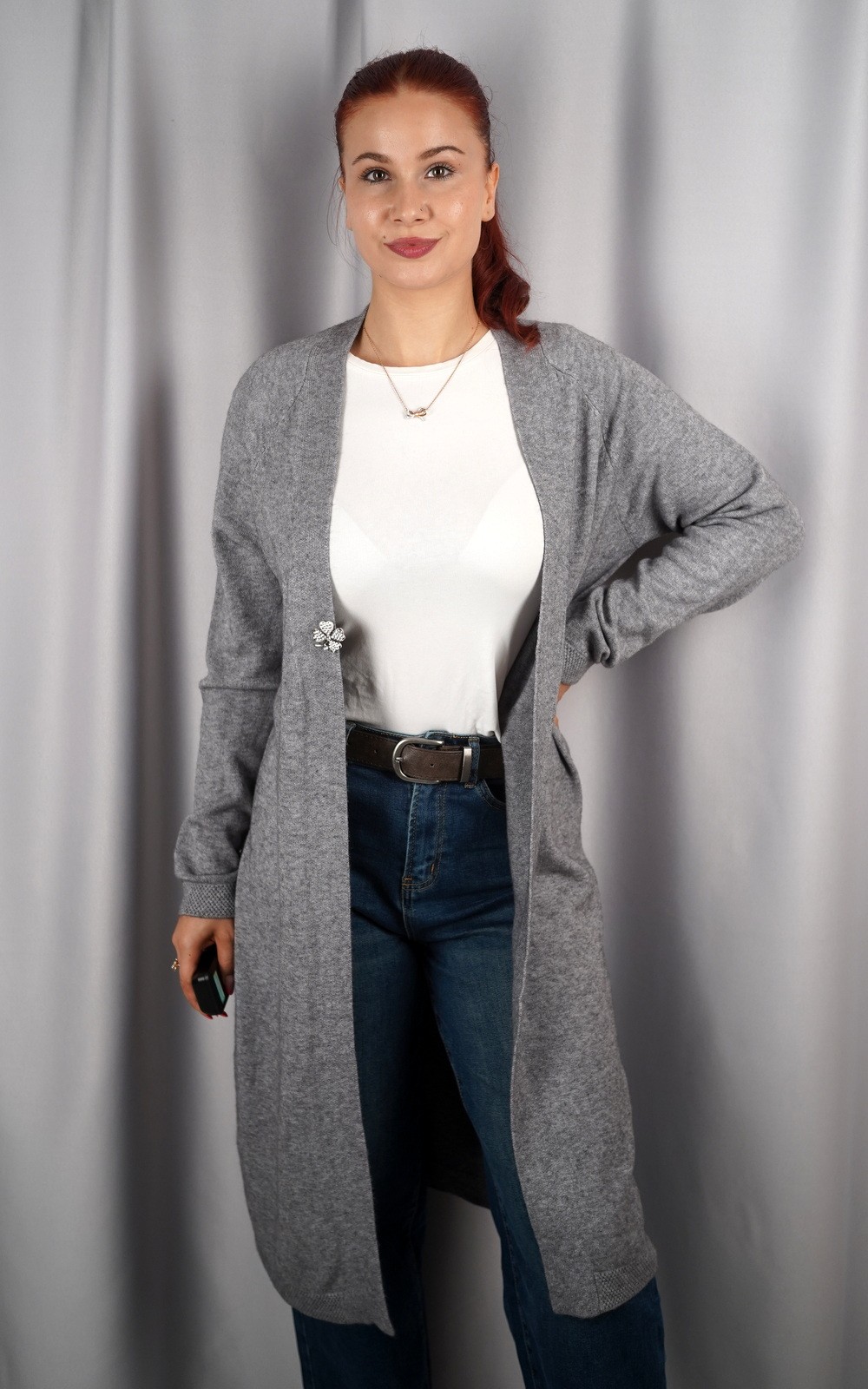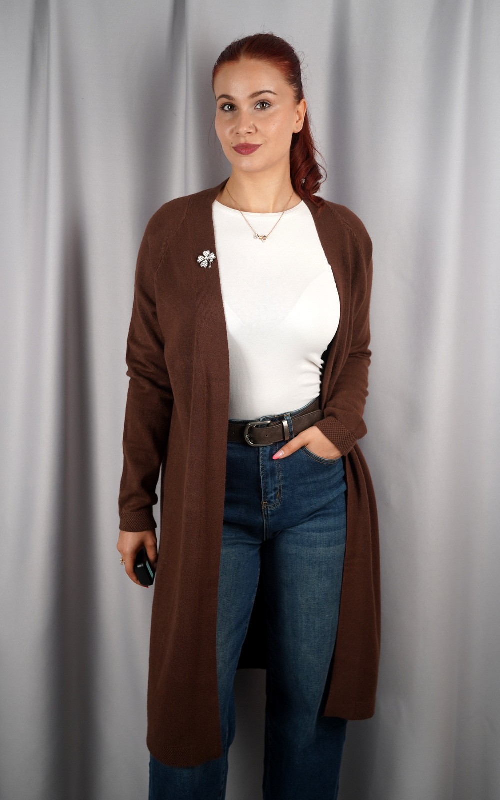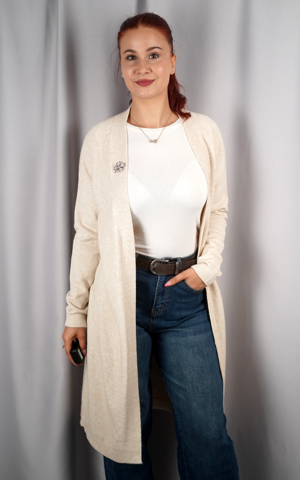 Ženski dugi kardigan fino meko pletivo – u veličinama – D7597