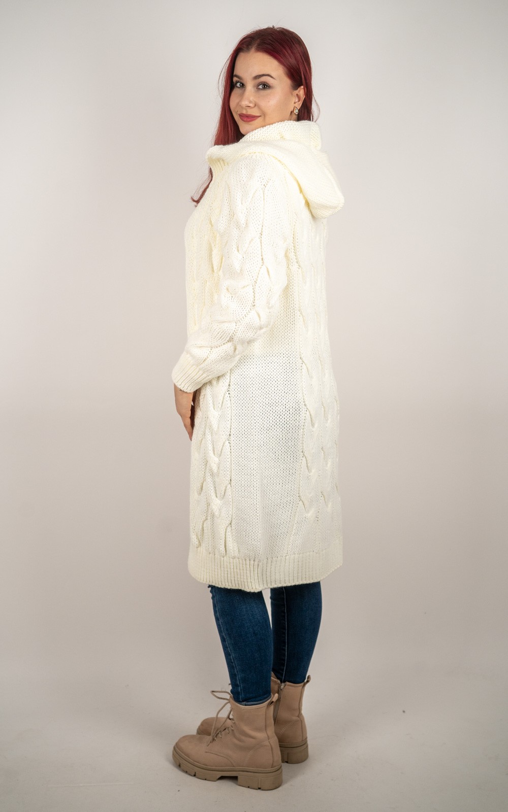 Ženski dugi pleteni kardigan s debelim upletenim uzorkom i kapuljačom – 45011622
