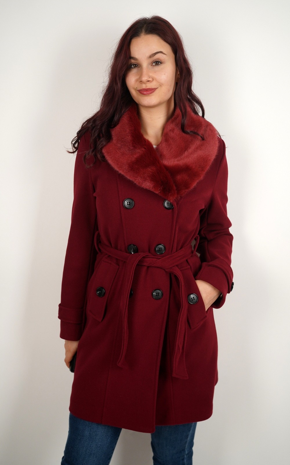 Ženski elegantni kaput s umjetnim krznom i dvostrukim kopčanjem – ART:12368