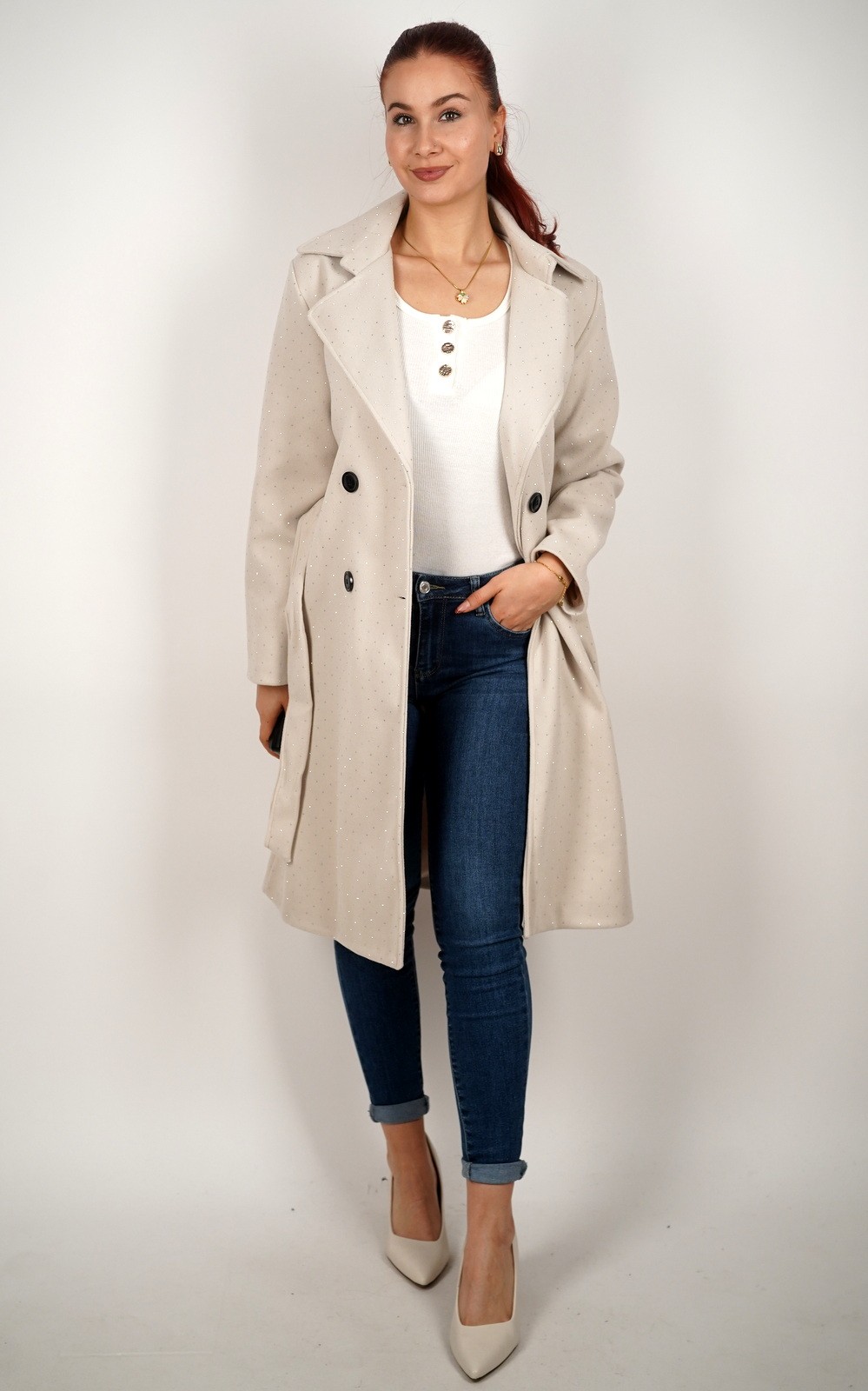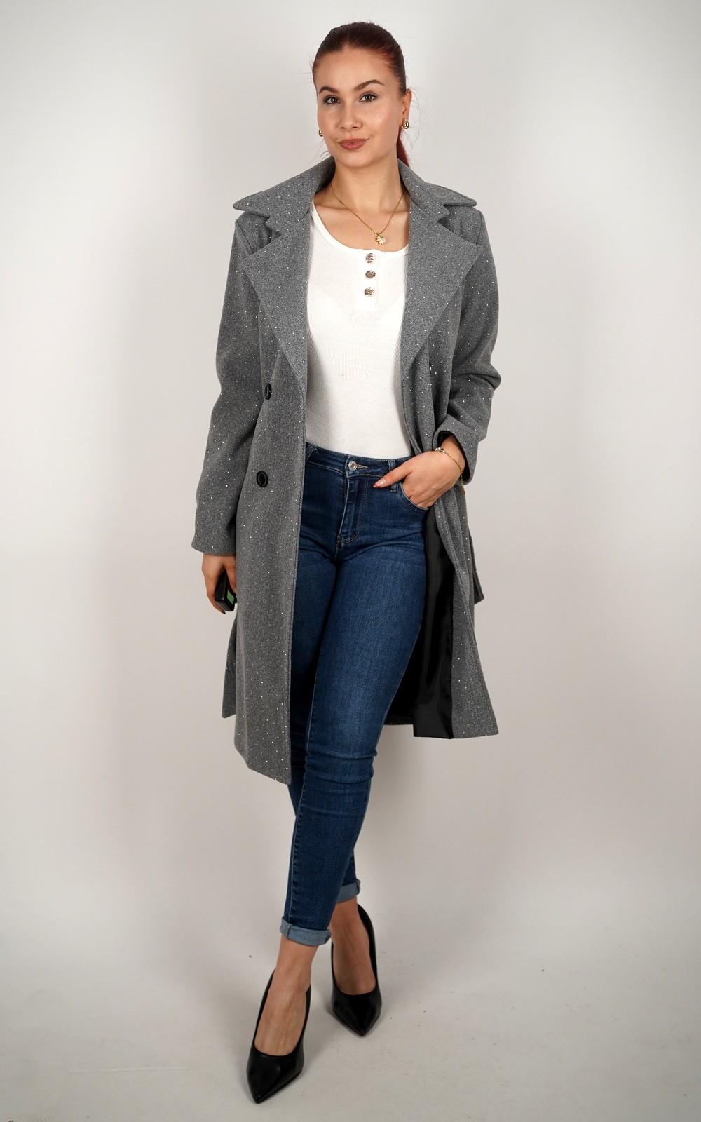 Ženski elegantni kaput s vezicom i šljokicama – u veličinama – 9999